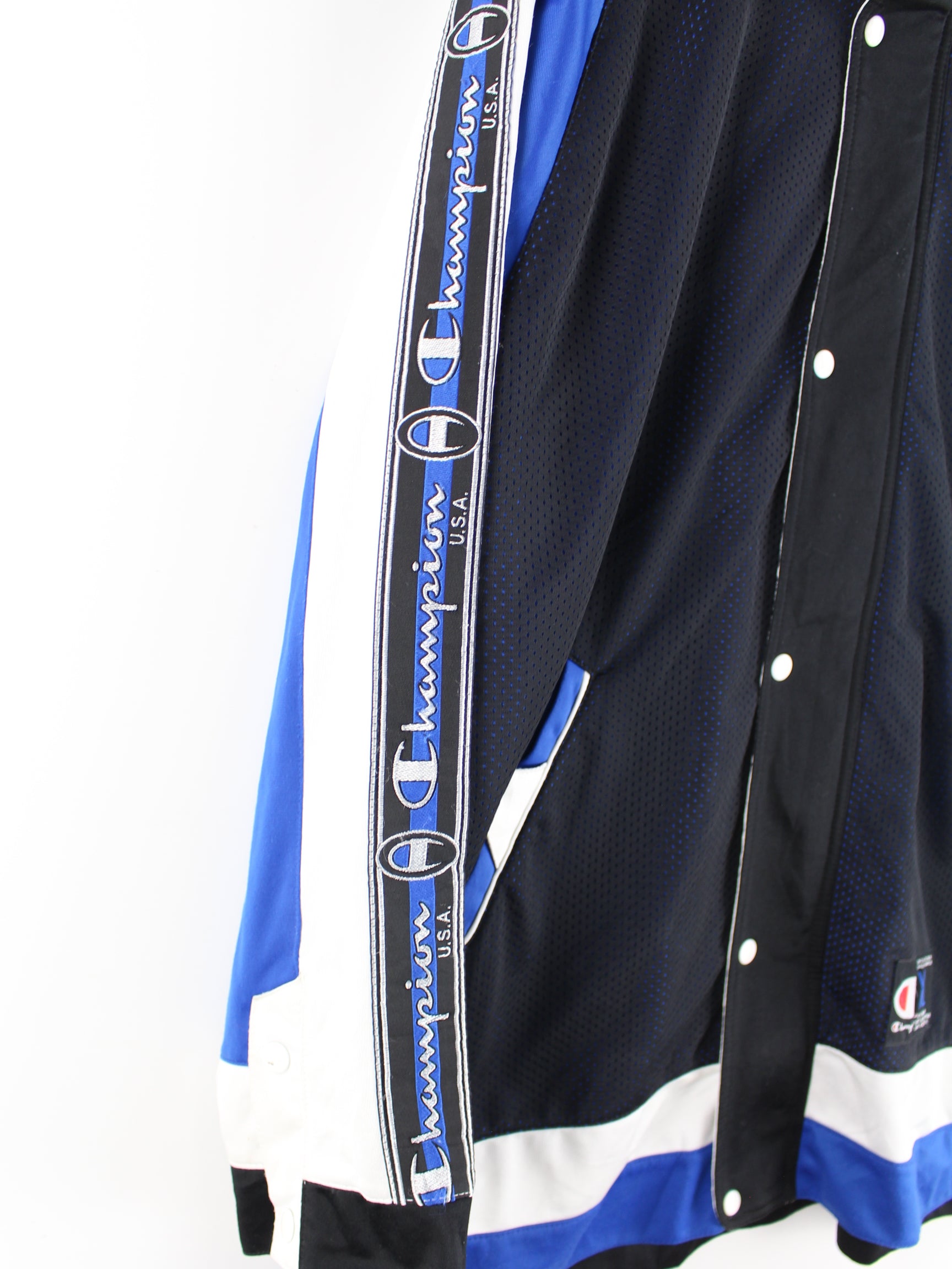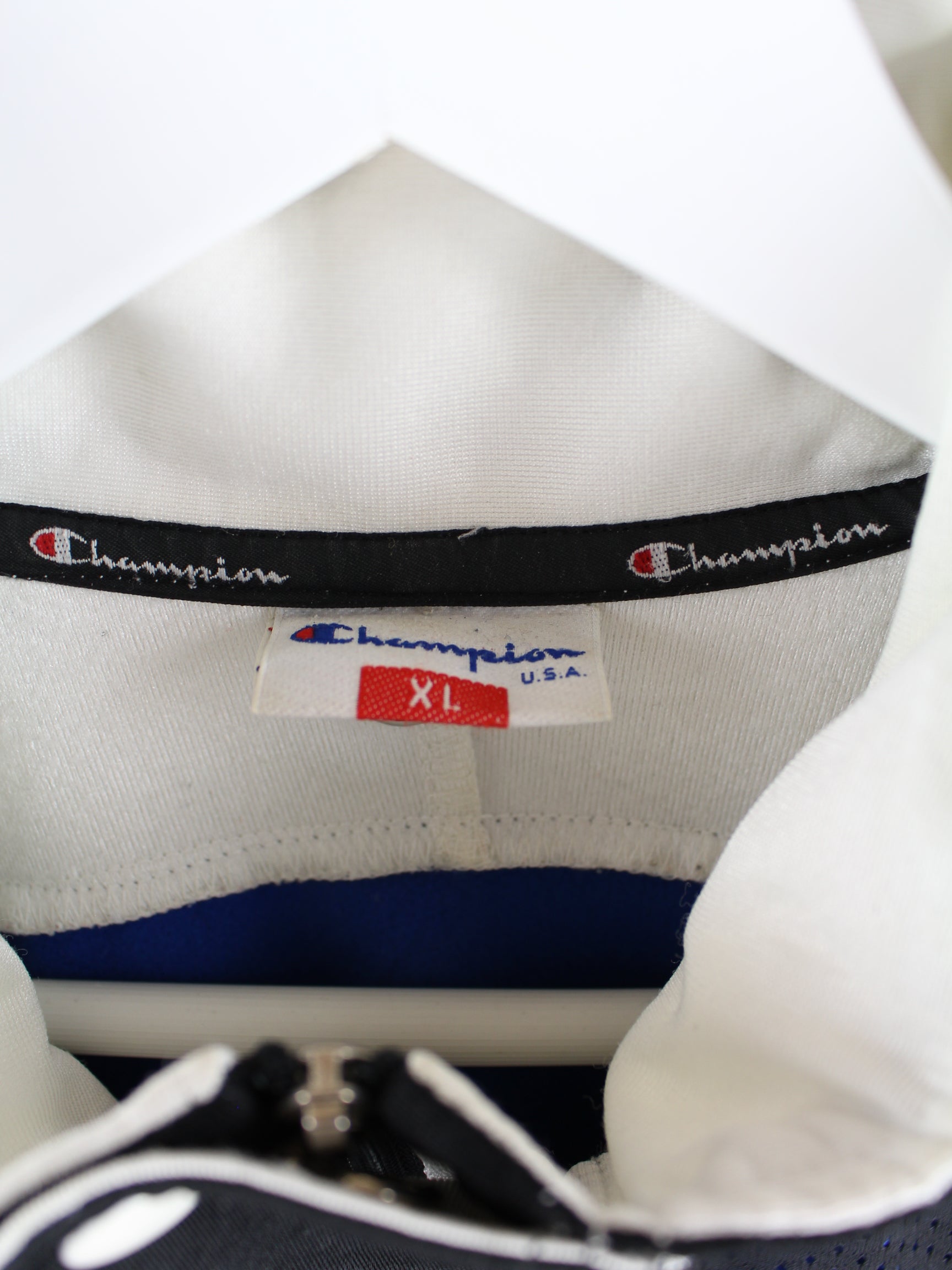 Tracksuit jacket from the Champion label in size XL from the early 2000s. It is made of synthetic material and is available in blue.