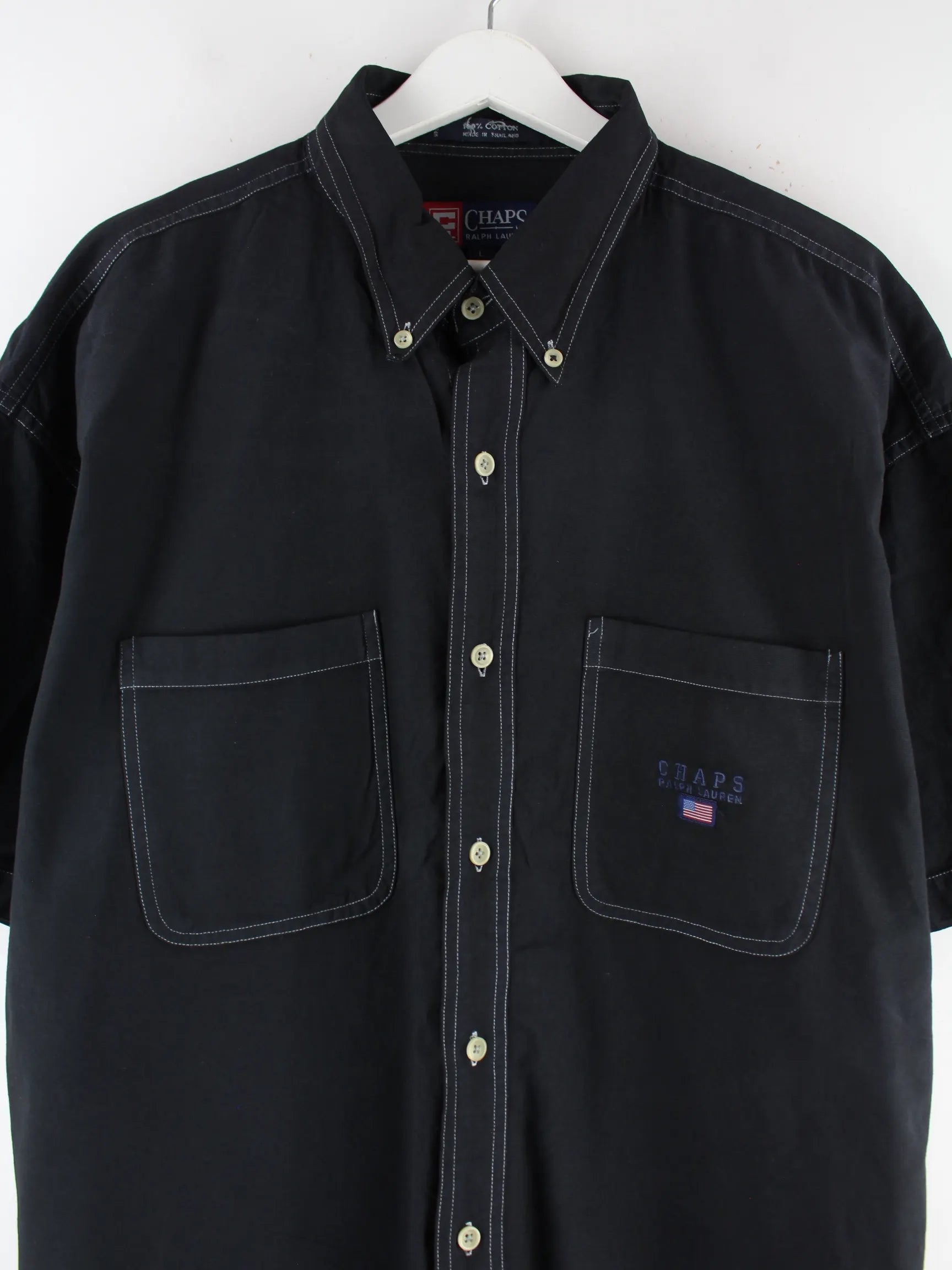 Chaps by Ralph Lauren 00s Kurzarm Hemd Schwarz L