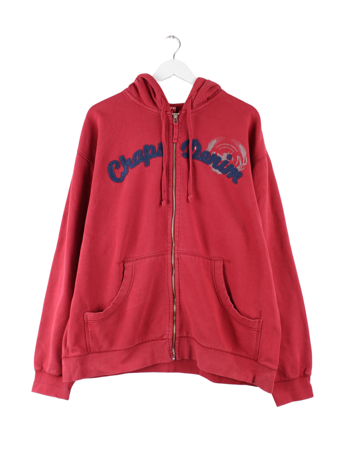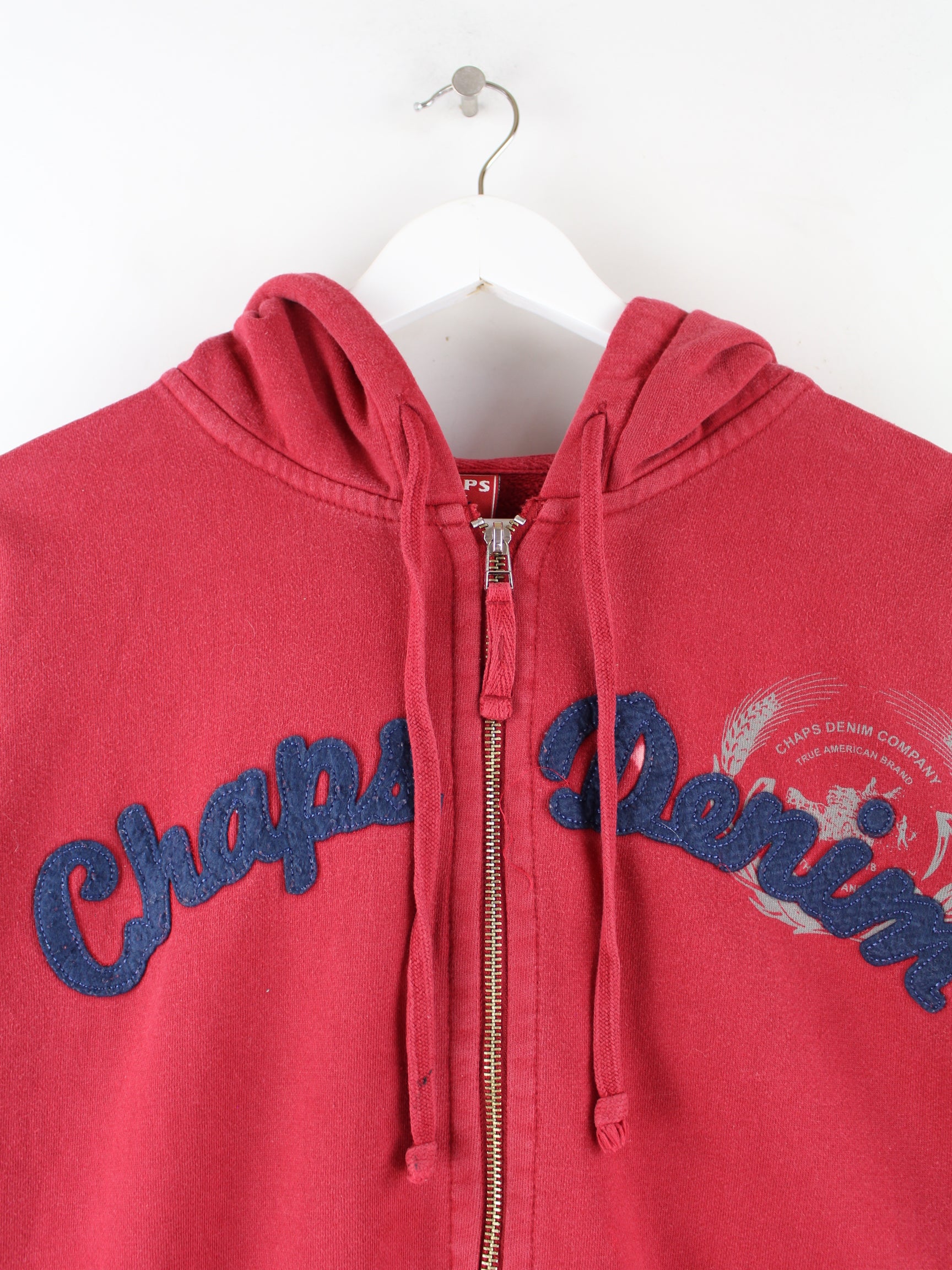 Red hoodie with embroidery and full-length zip from the brand Chaps by Ralph Lauren in size XL. It is made from a cotton blend and is in good condition.