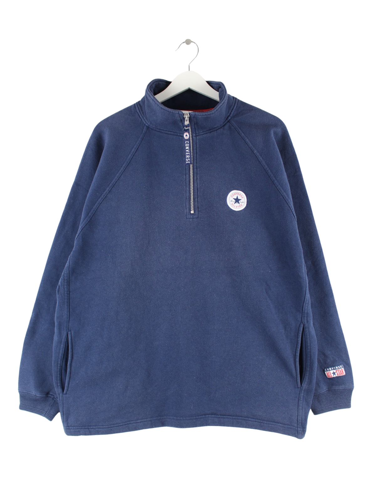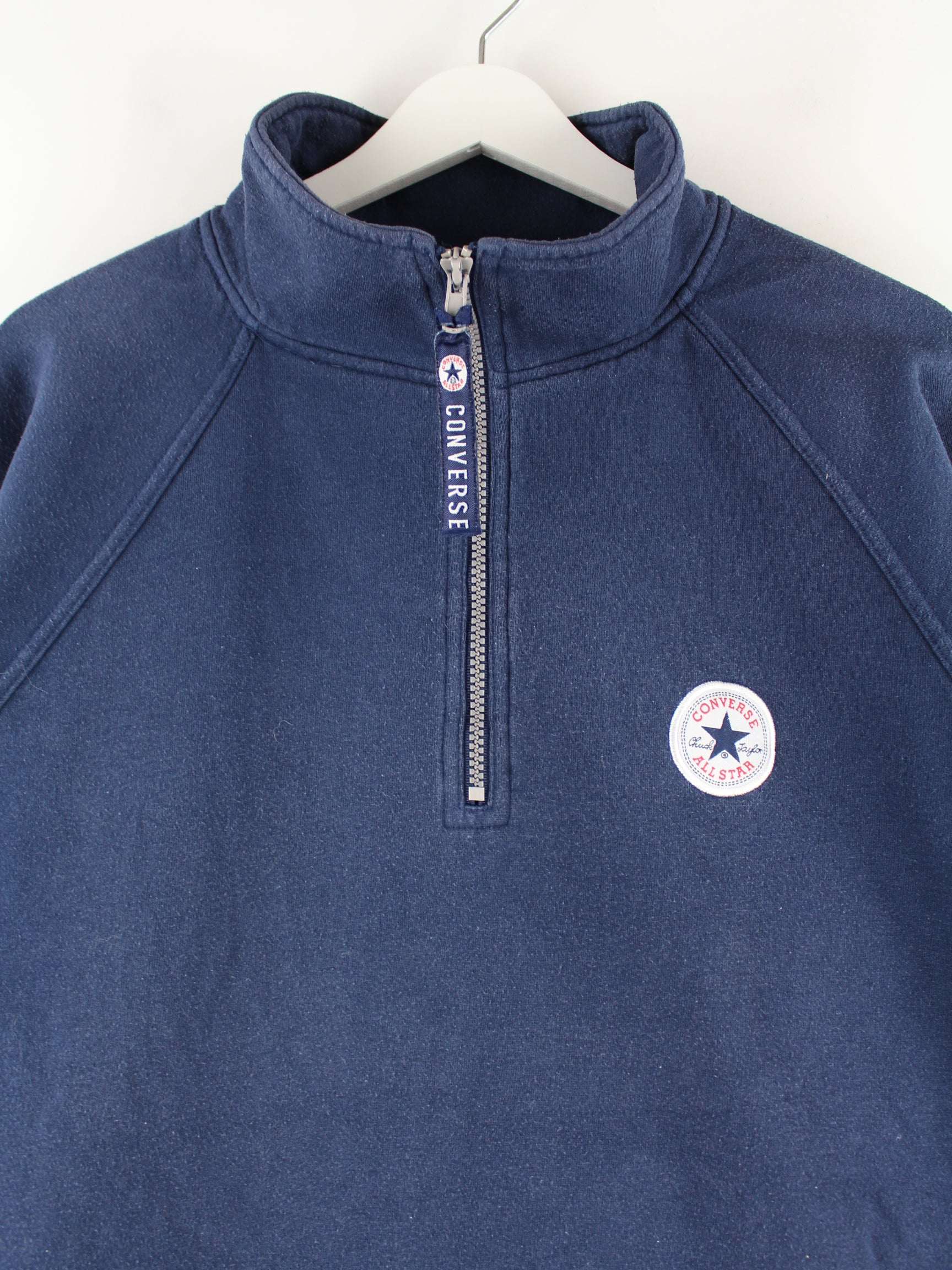 Sweater by Converse with half zip in size L. It is made from a cotton blend and is available in blue.