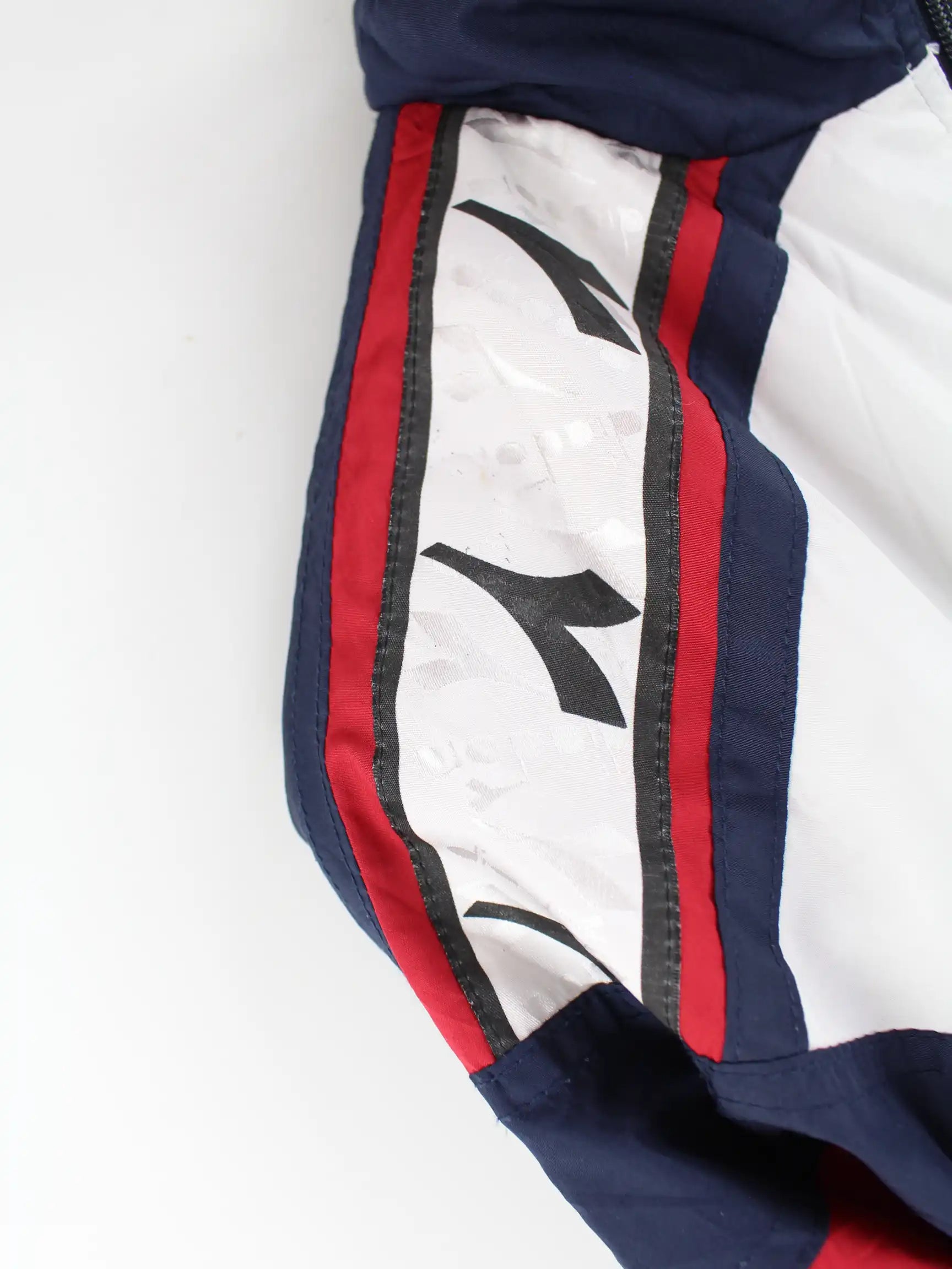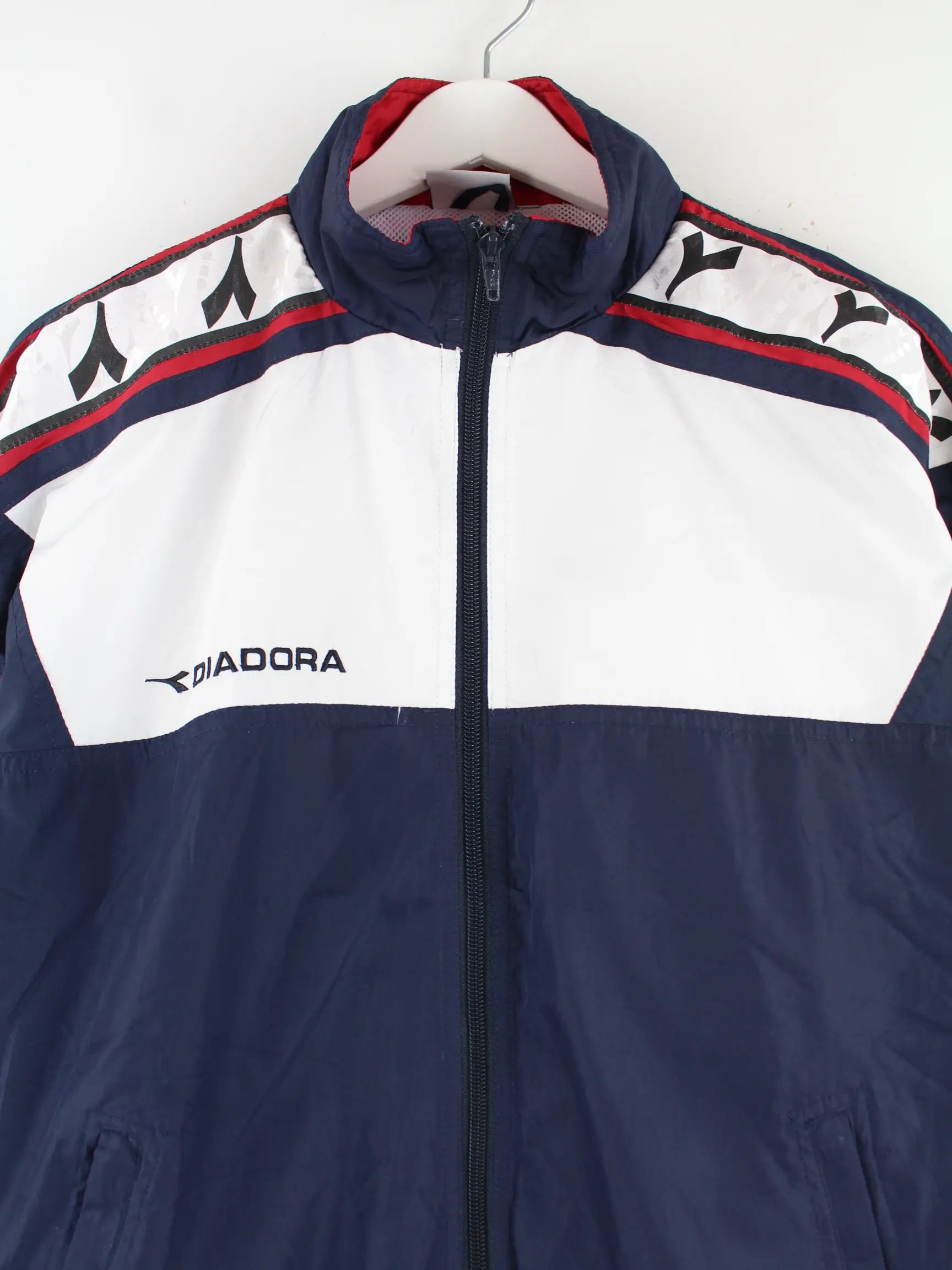 Trainingsjacke vom Label Diadora in Größe S. Sie ist aus Synthetik angefertigt und in Blau auf Lager.