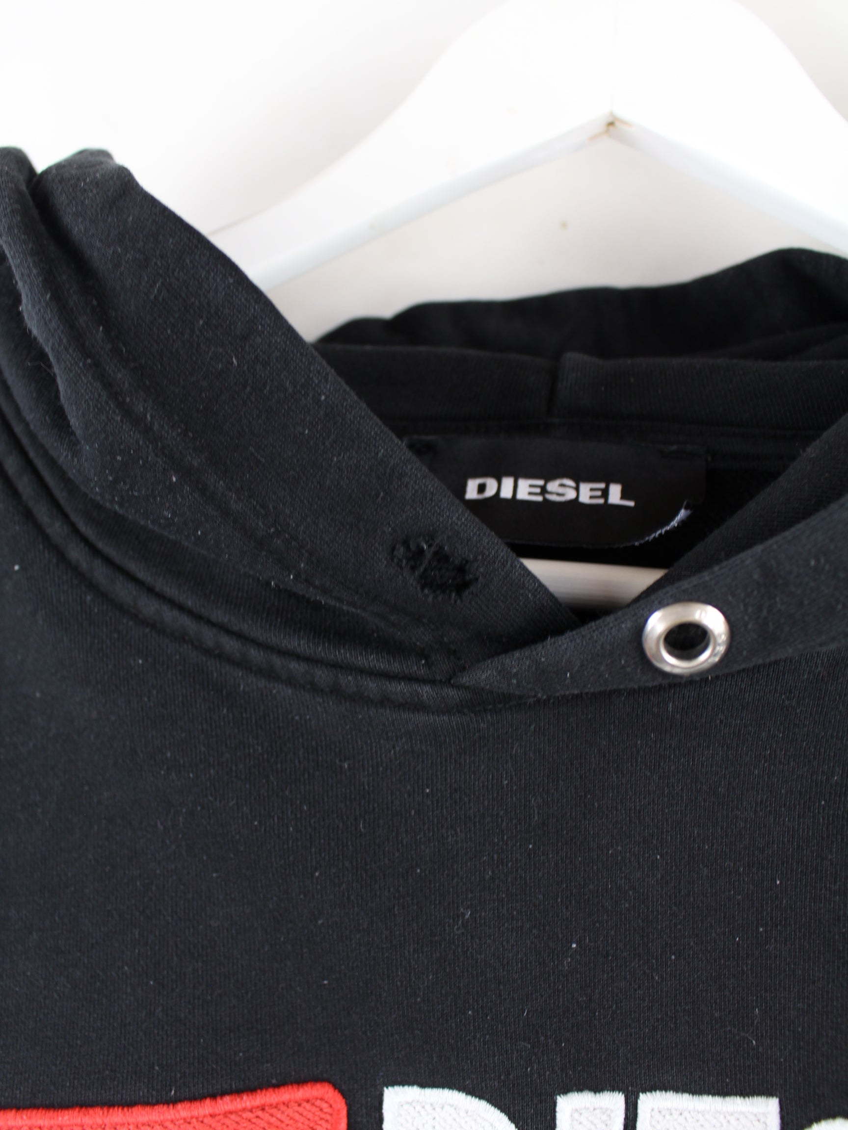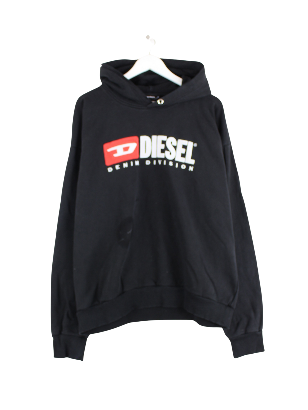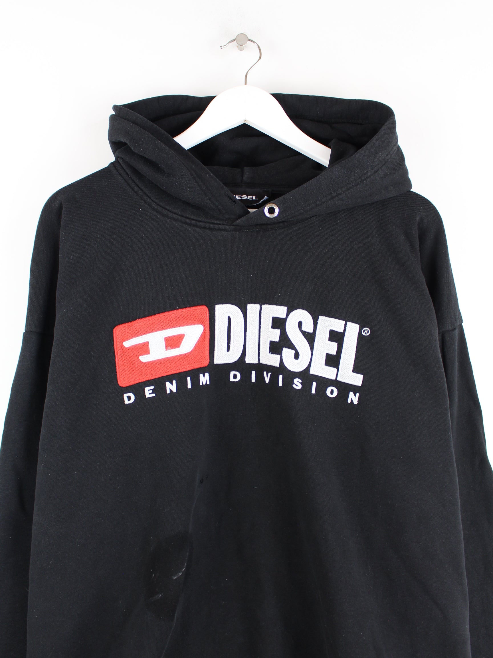 Black hoodie with embroidered logo from the brand Diesel in size XL. It is made of a cotton blend. We would describe the condition as 'fine' (see pictures).