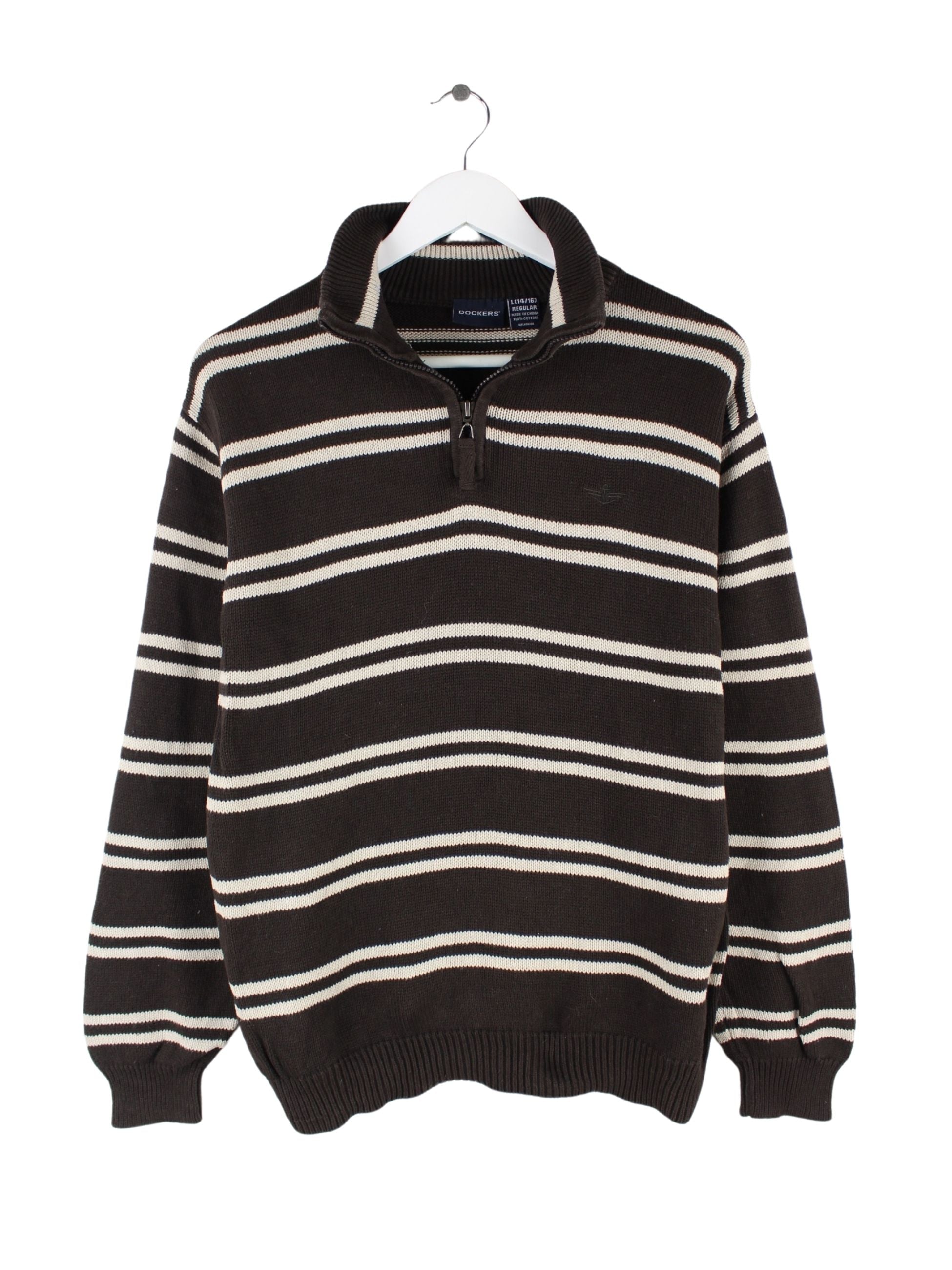 Brauner Pullover mit halbem Reißverschluß der Marke Dockers in Größe M. Er ist aus Baumwolle und in sehr gutem Zustand in Stock.