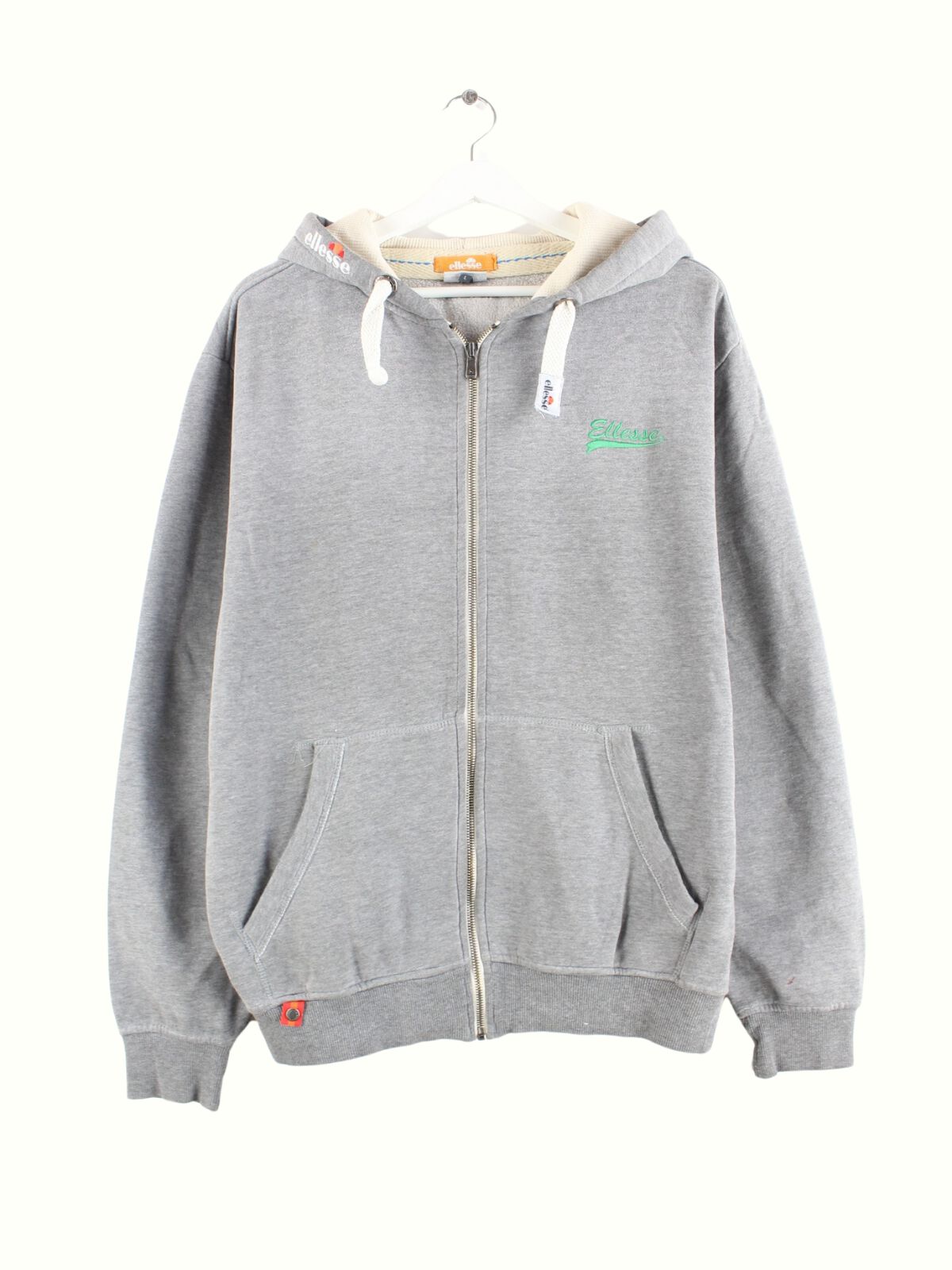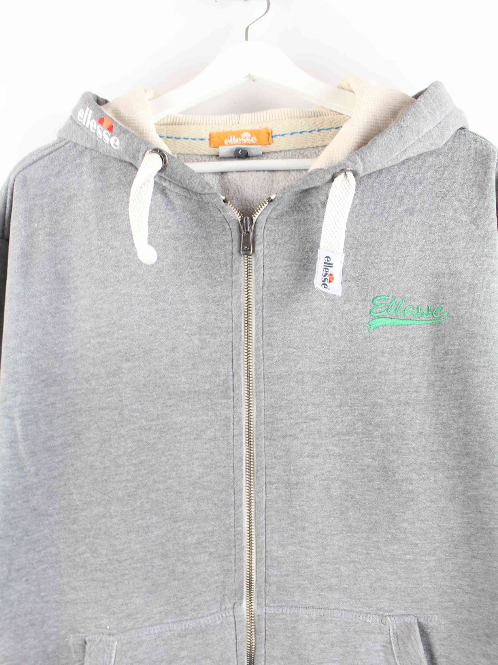 Hoodie from Ellesse with embroidery and full-length zipper in size L from the early 2000s. It is made from a cotton blend and is available in gray.