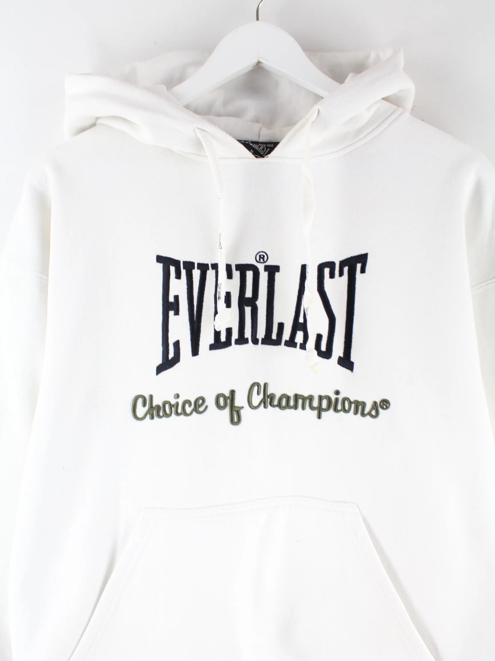 Hoodie von Everlast mit Stickereien in Größe M. Er ist aus einer Baumwollmischung gefertigt und in Weiß zu haben.