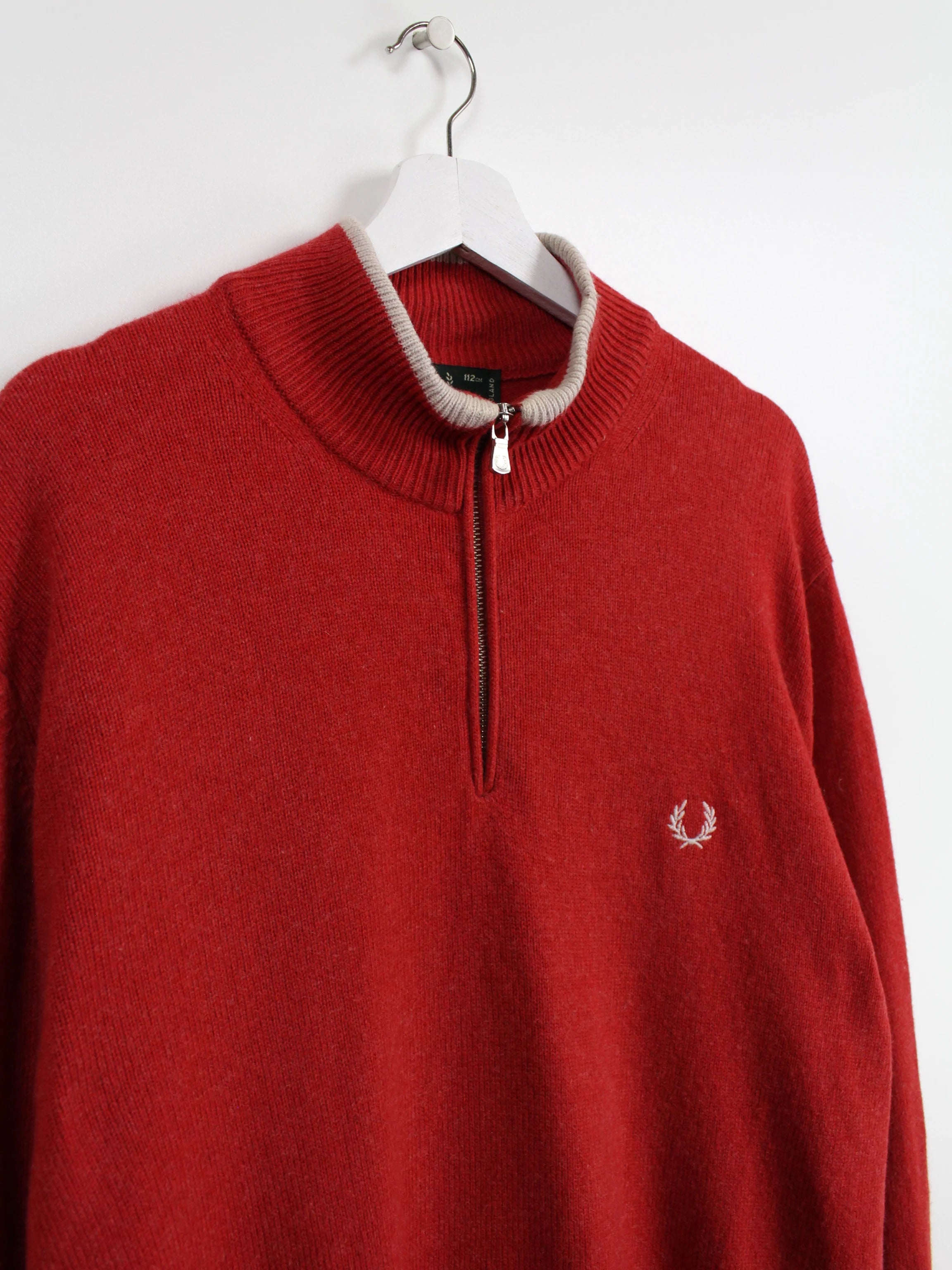 Red Fred Perry sweater made of wool.