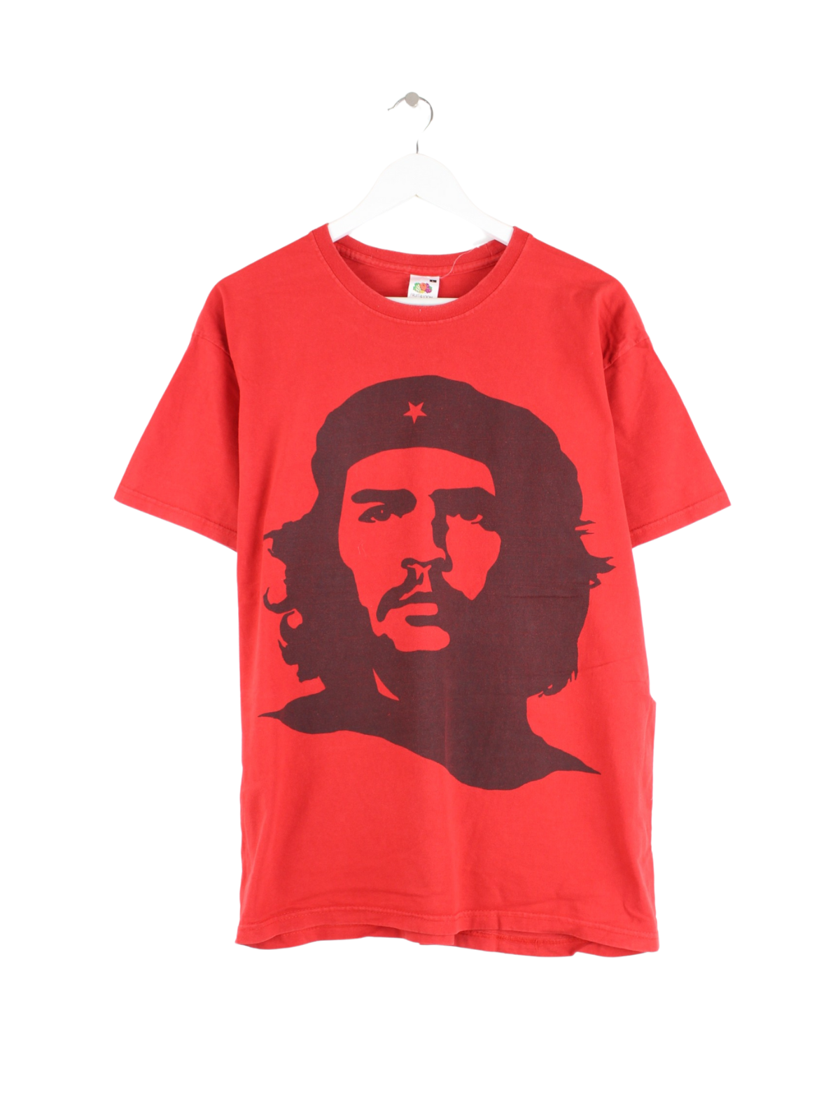 Red T-shirt from the Fruit of the Loom label in size L. It is made of cotton. We would describe the condition as 'fine' (see pictures). With a great Guevara print.
