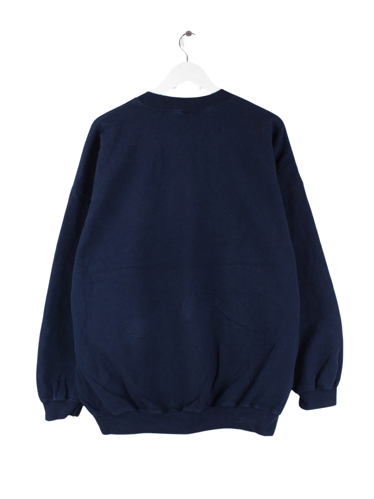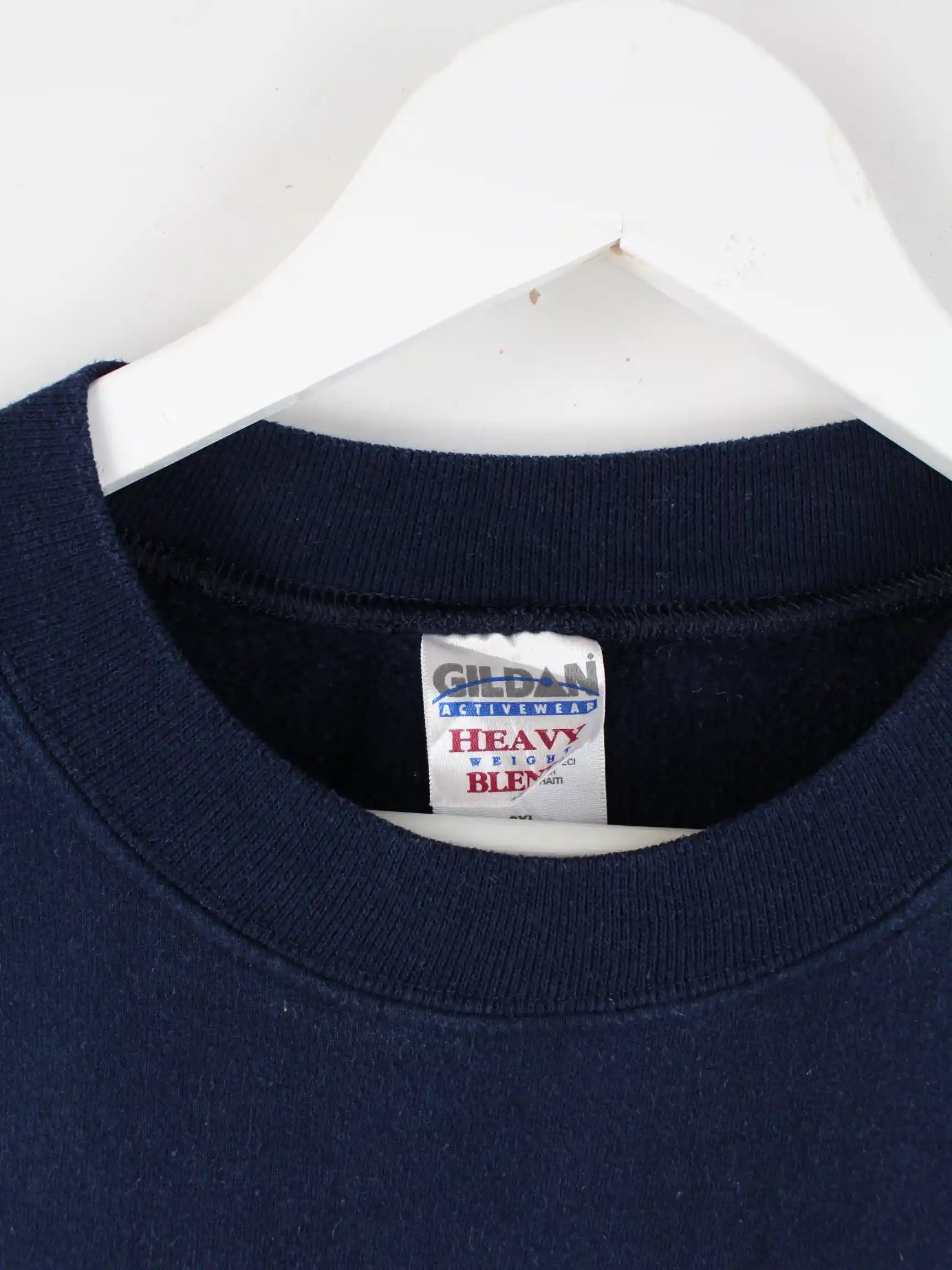 Blauer Sweater mit gesticktem Logo der Marke Gildan in Größe XXL. Er ist aus einer Baumwollmischung gemacht und in gutem Zustand lieferbar.
