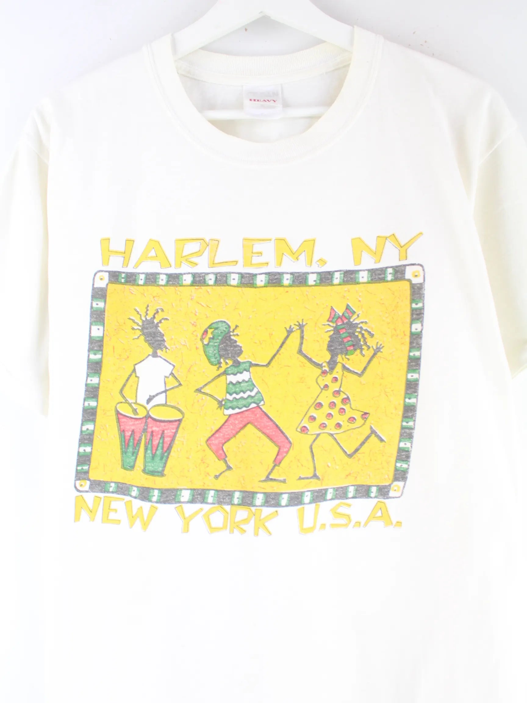 Gildan 00s Harlem New York Print T-Shirt Weiß M