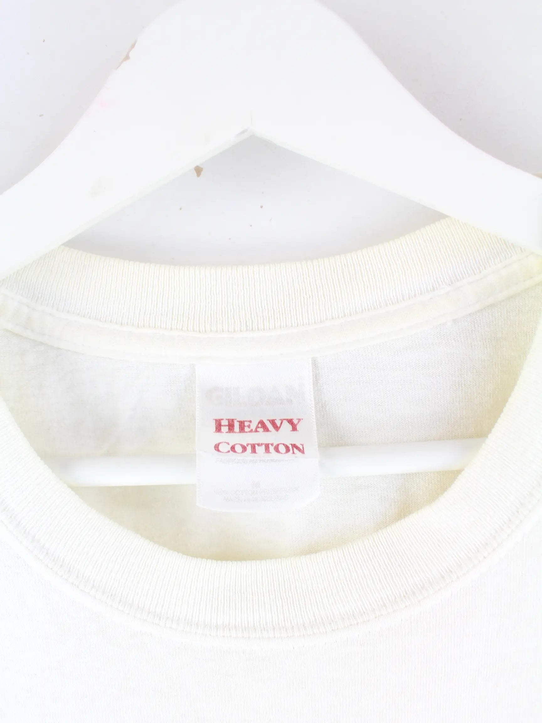 Weißes T-Shirt der Marke Gildan in Größe M. Es ist aus Baumwolle gemacht und in gutem Zustand zu bekommen. Mit schickem York Print.