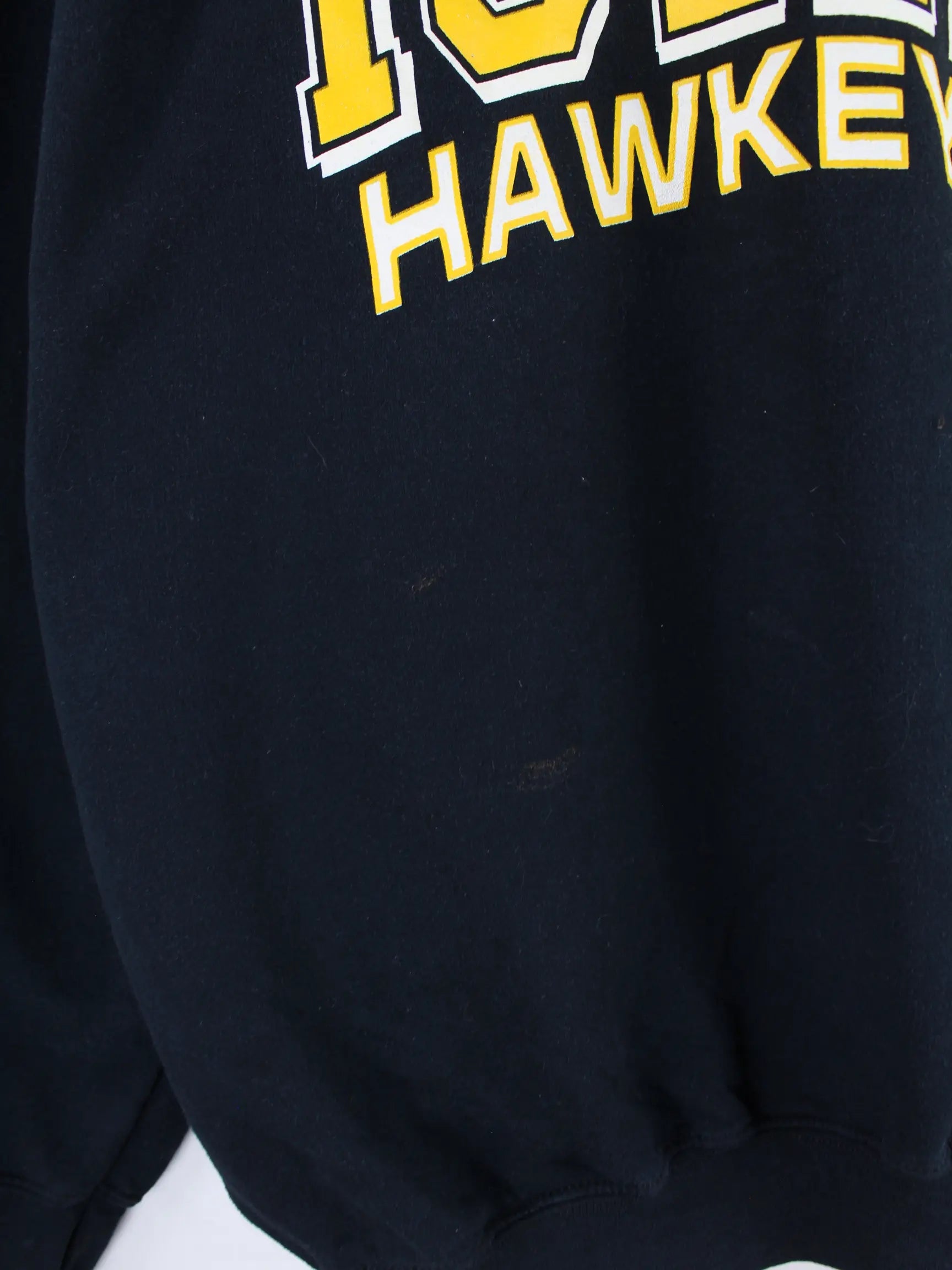 Schwarzer Sweater aus dem Hause Gildan in Größe XL. Er ist aus einer Baumwollmischung gemacht und in gutem Zustand in Stock. Mit schönem Hawkeyes Print.