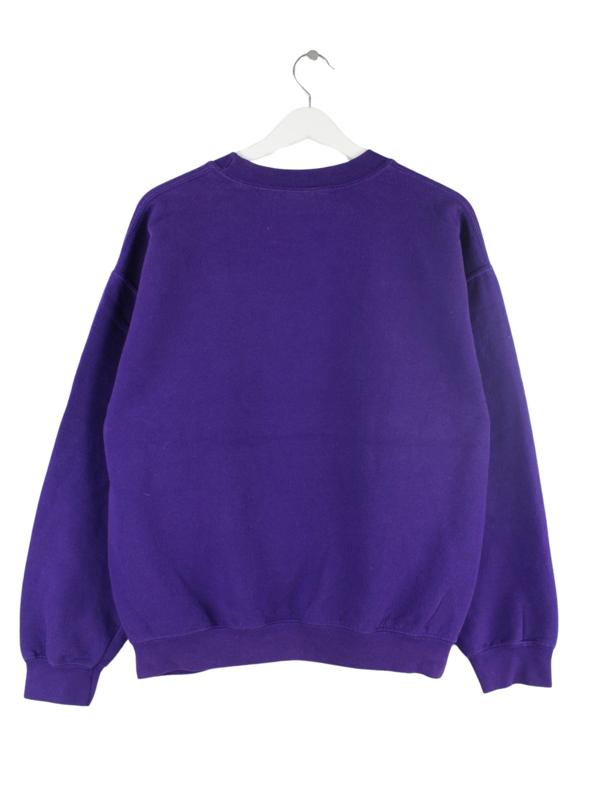 Sweater der Marke Gildan in Größe M. Er ist aus einer Baumwollmischung gefertigt und in Lila zu haben. Mit chiquem Lynx Print.