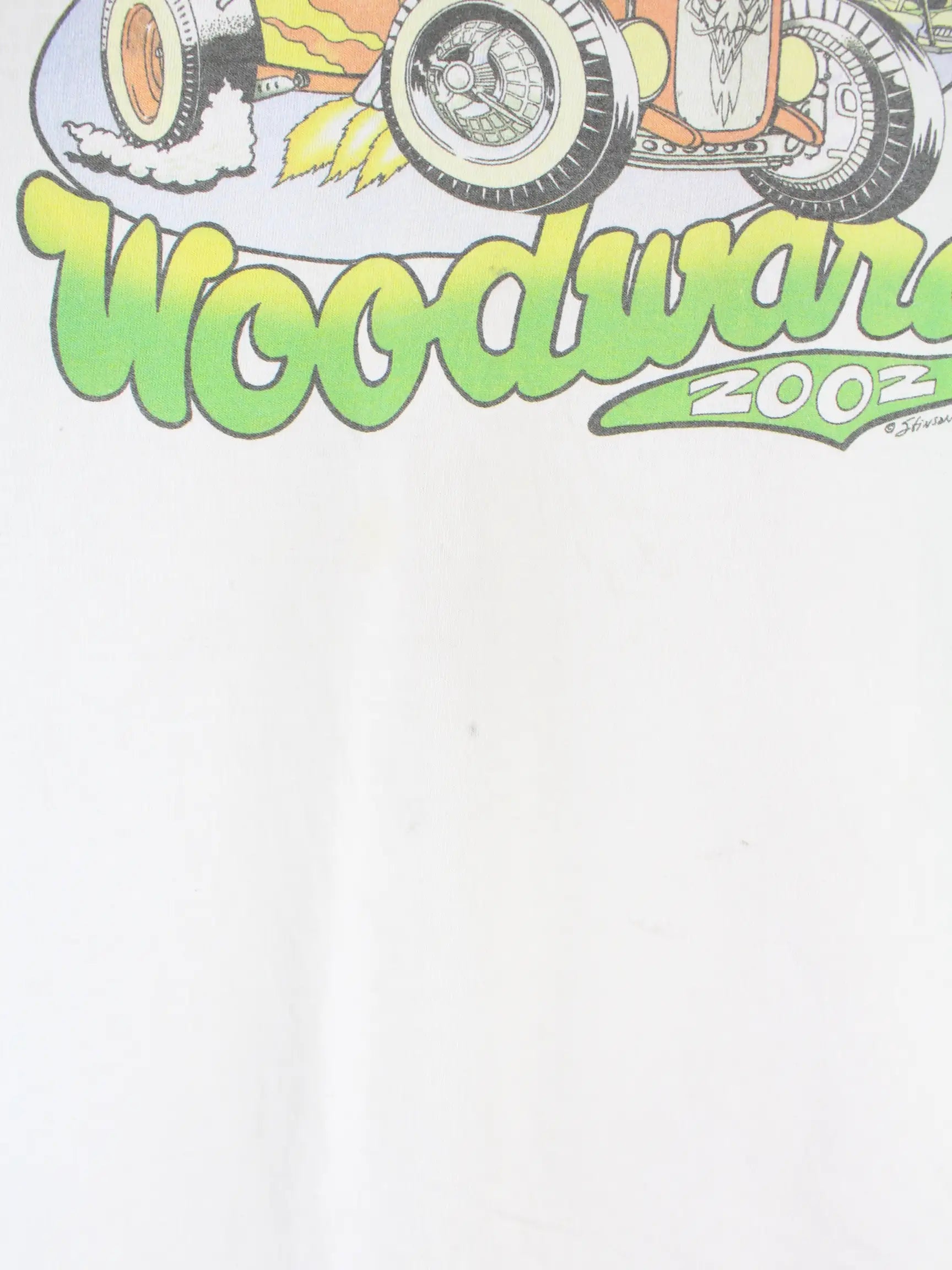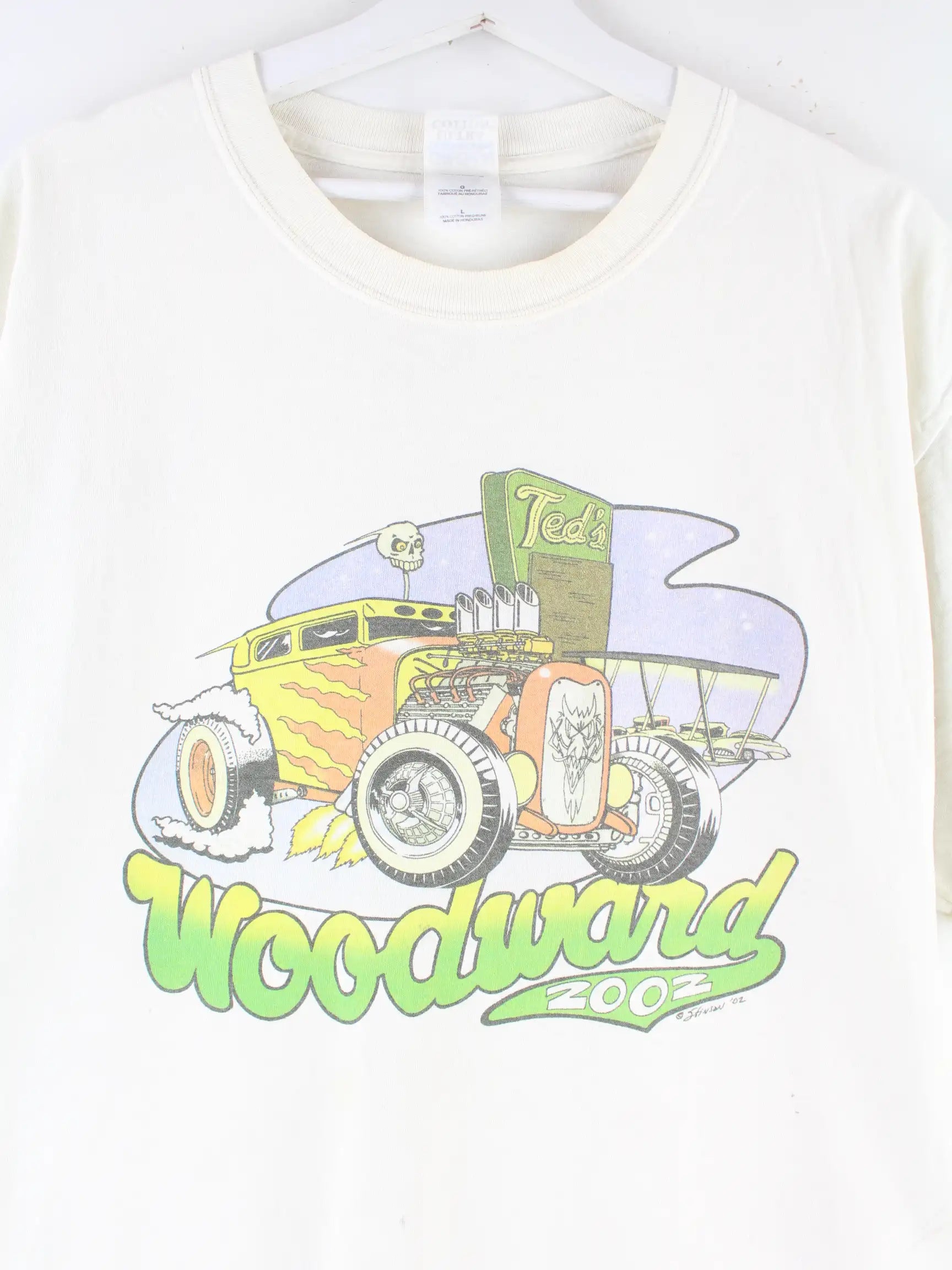 Gildan 2002 Woodward Car Print T-Shirt Weiß L