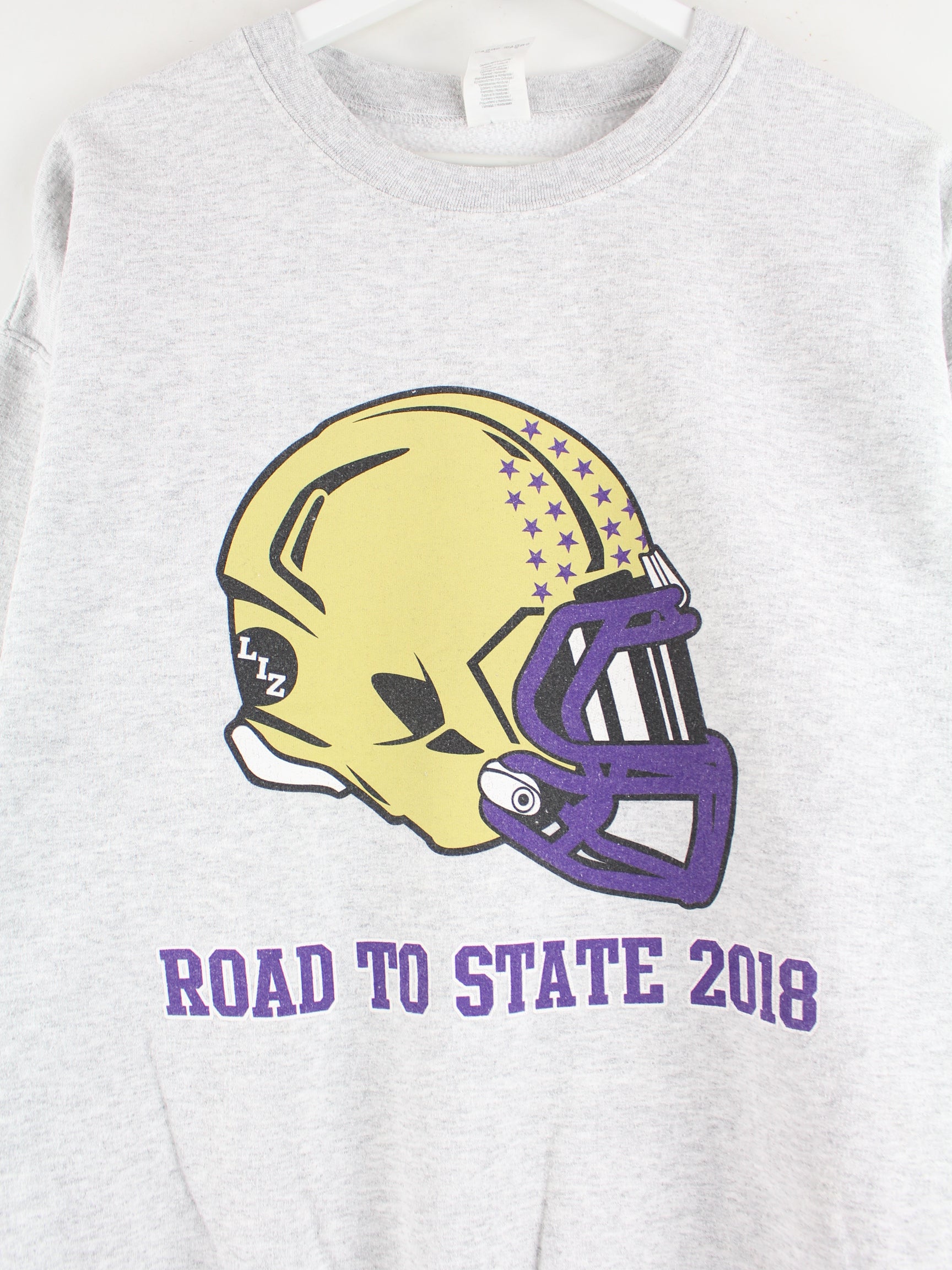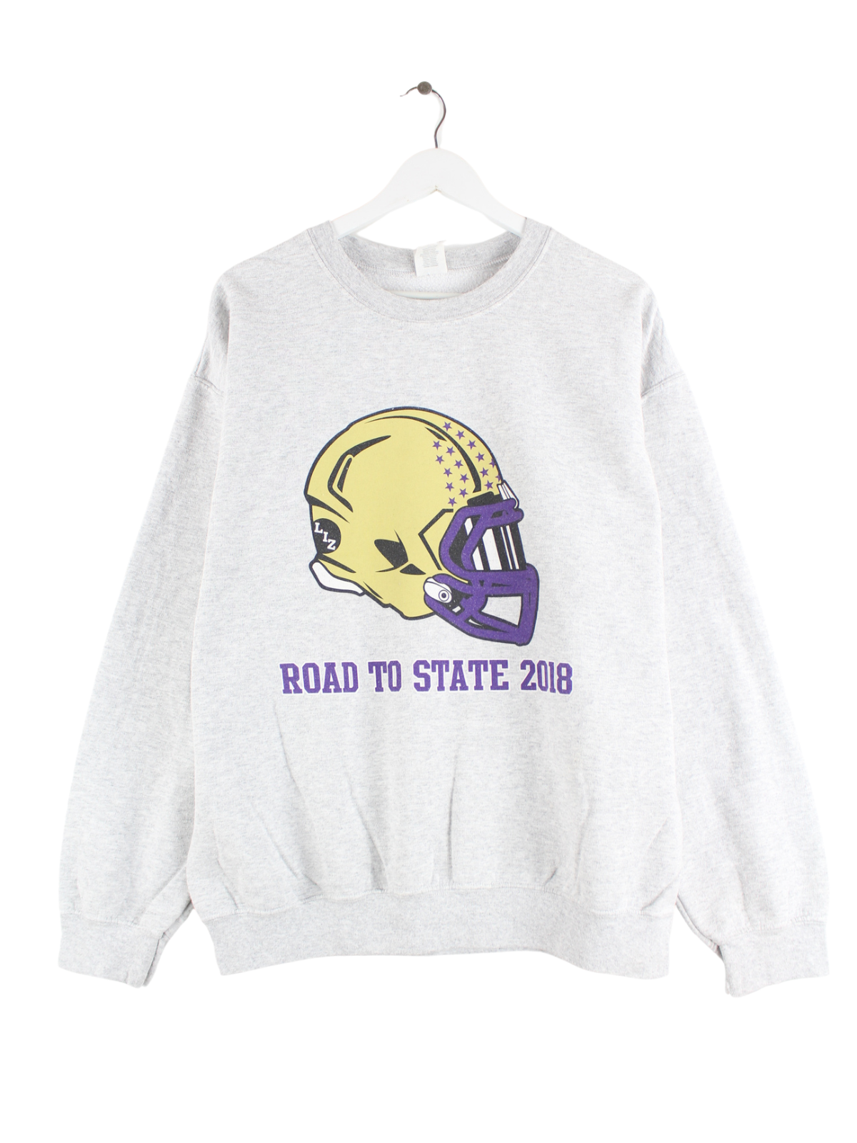 Grey sweater from the Gildan label in size L. It is made from a cotton blend and is in very good condition. With a great football print.