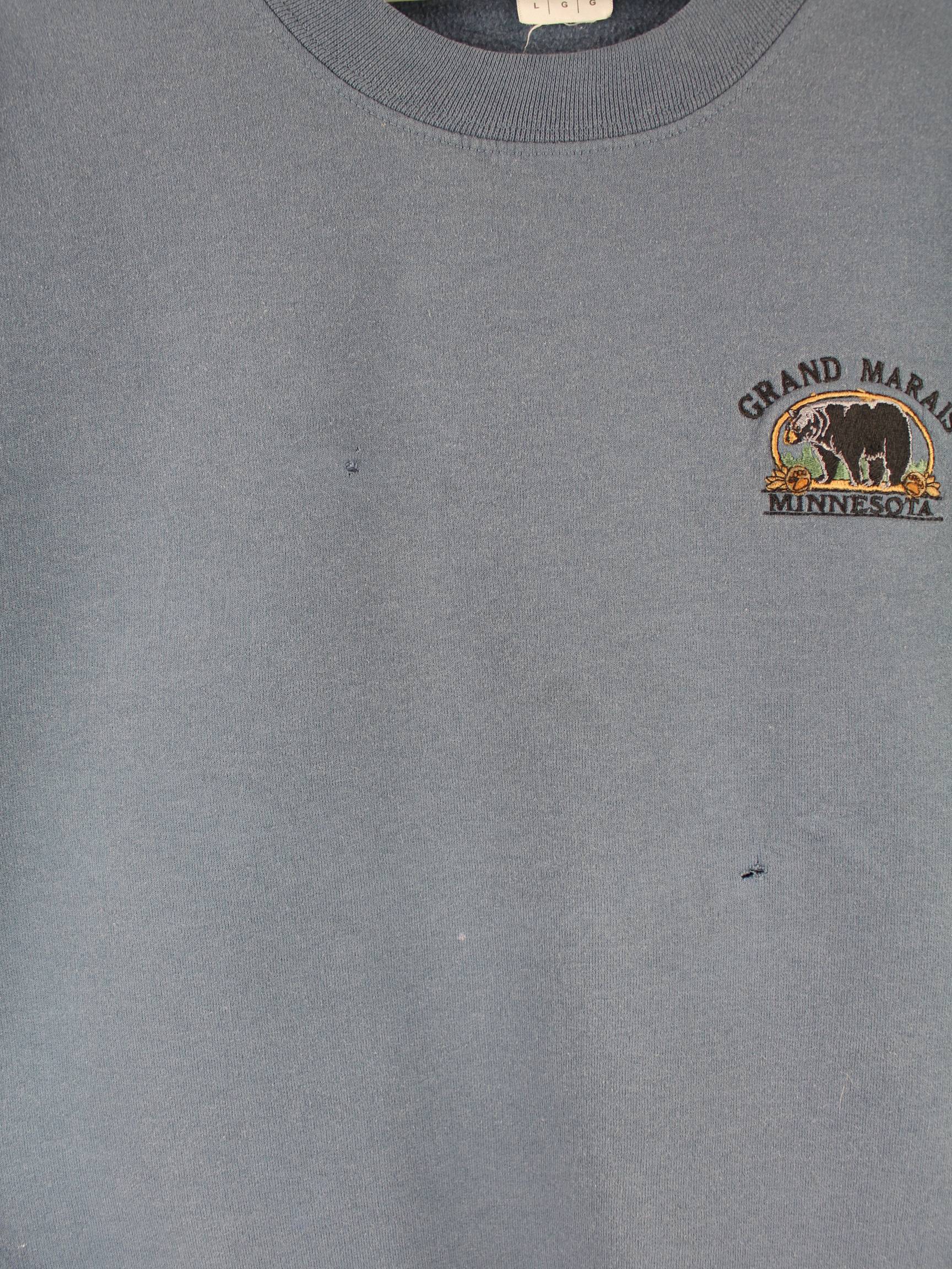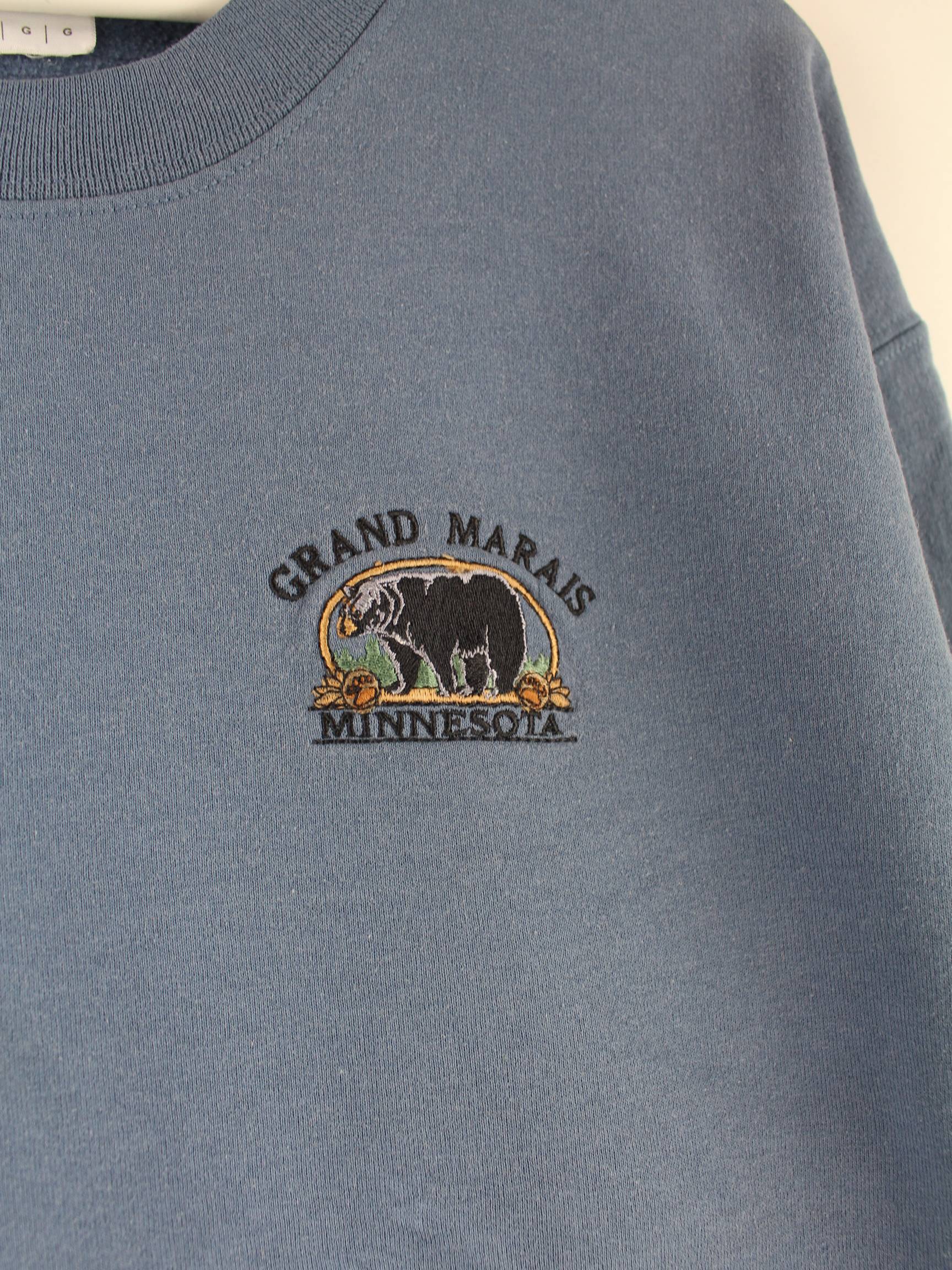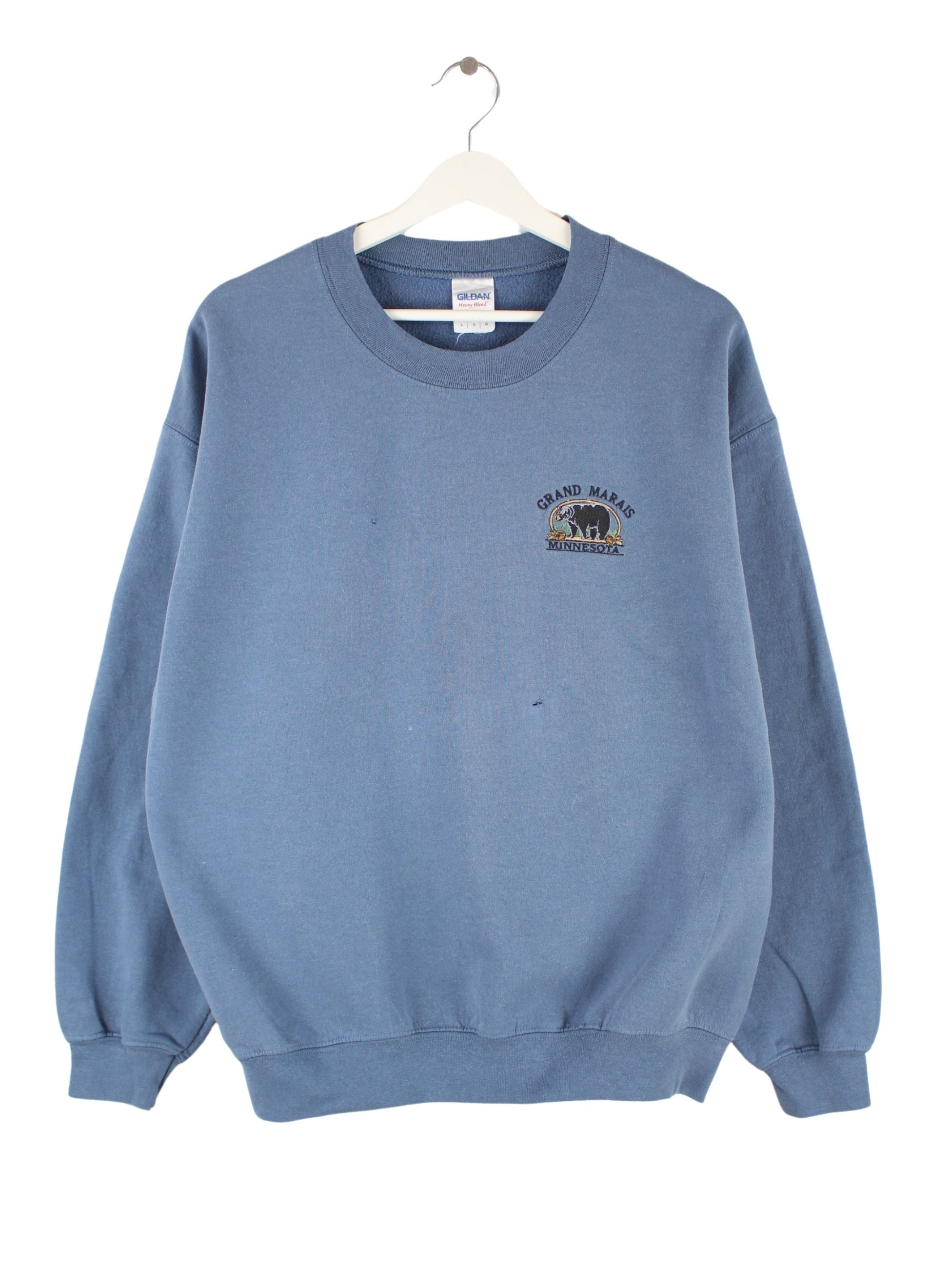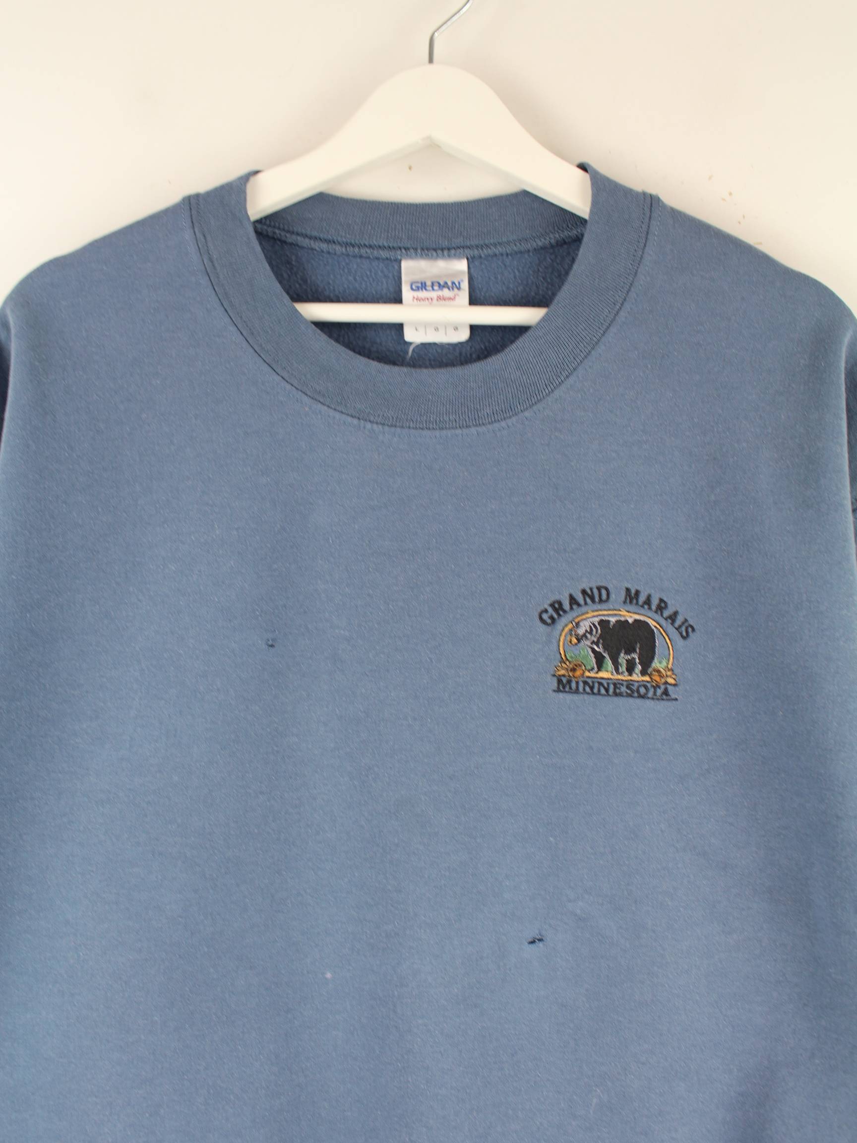 Sweater von Gildan mit Stickereien in Größe L. Er ist aus einer Baumwollmischung produziert und in Blau in Stock.
