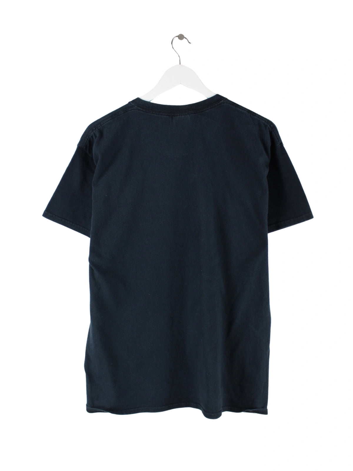 Schwarzes T-Shirt des Labels Gildan in Größe L. Es ist aus Baumwolle und in sehr gutem Zustand lieferbar. Mit tollem Shooter Print.