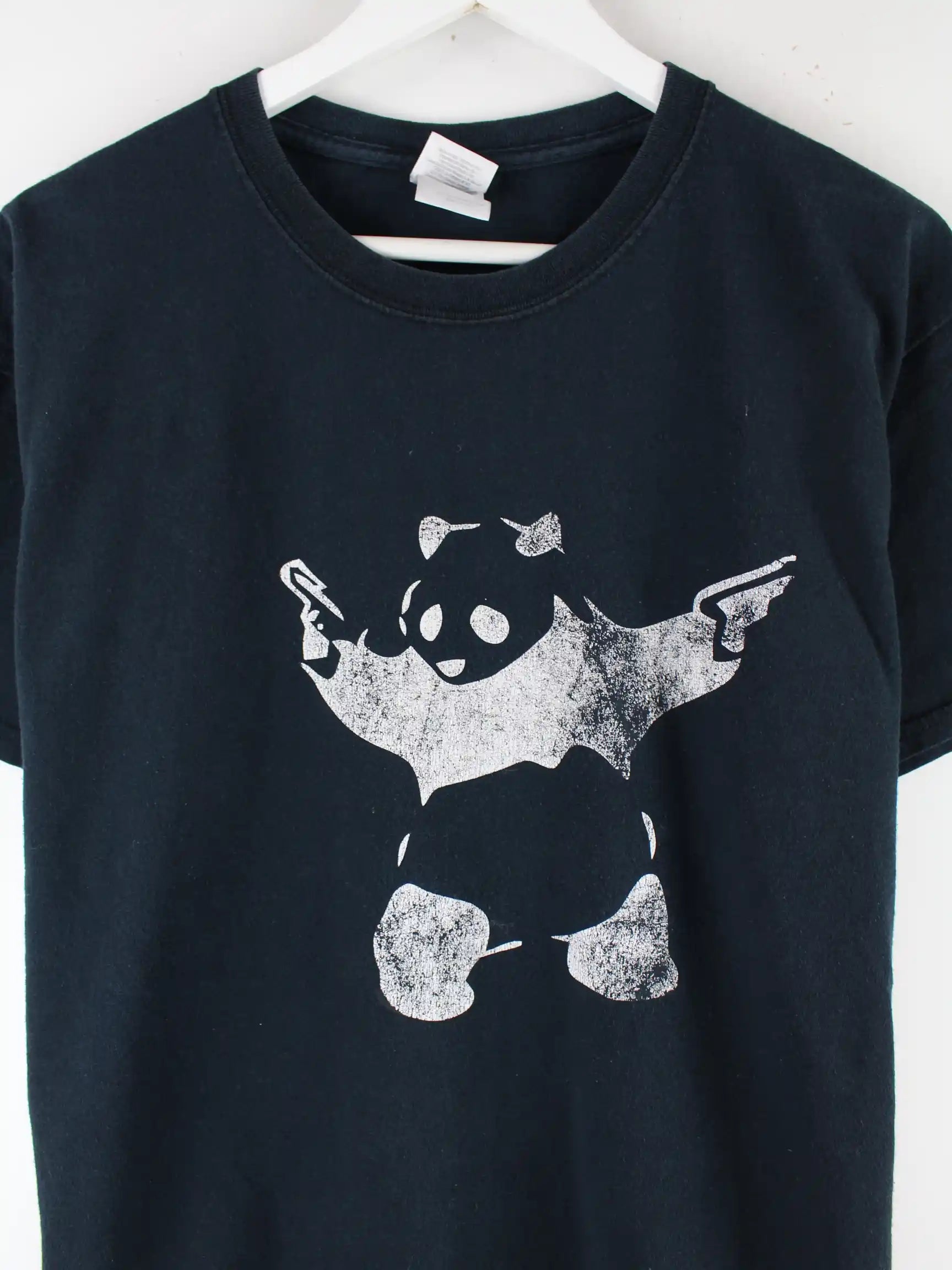 Gildan Panda Shooter Print T-Shirt Schwarz L