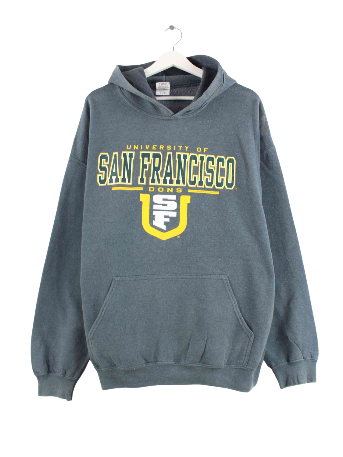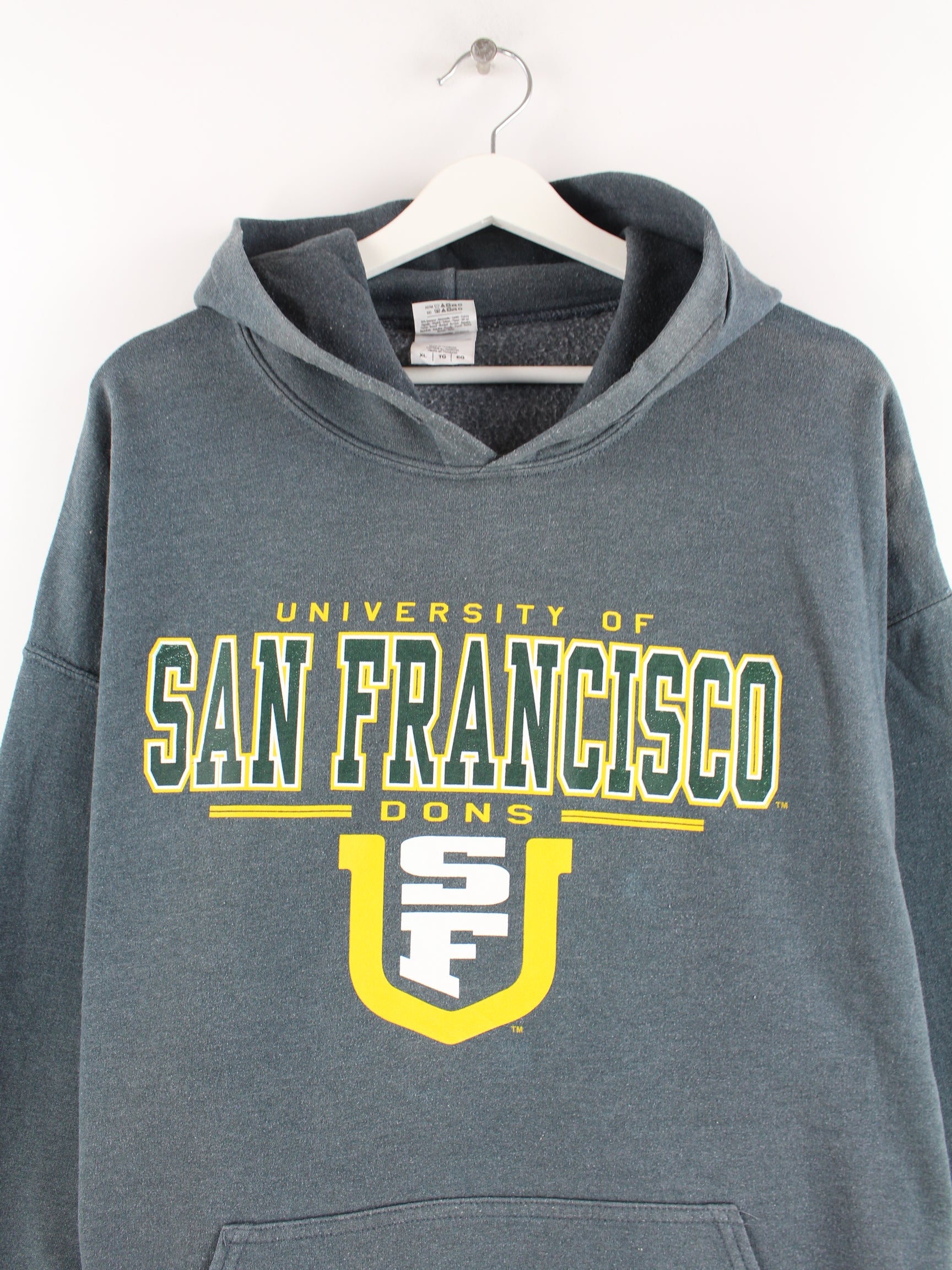 Nice blue hoodie from Gildan in size XL. It is made from a cotton blend and is in good condition in stock. With rare Francisco print.