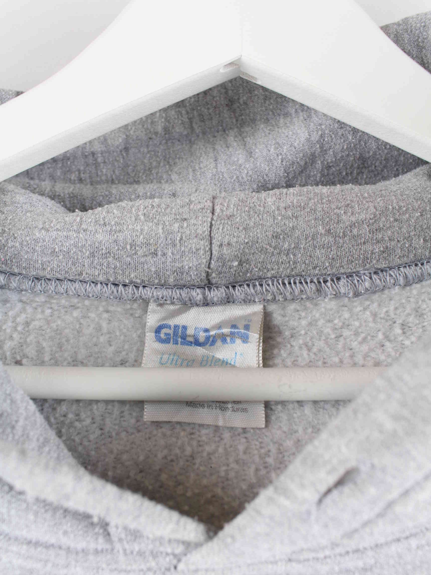 Hoodie from Gildan in size XL. It is made from a cotton blend and is available in gray.