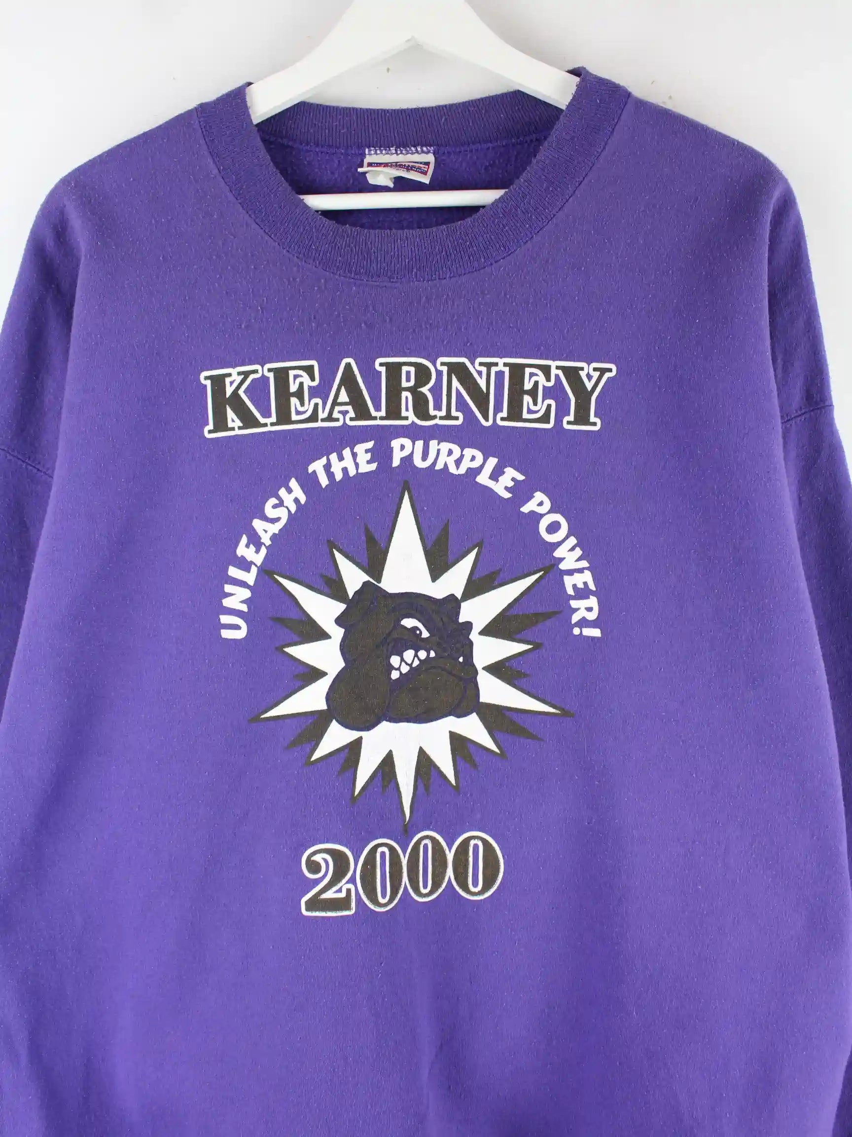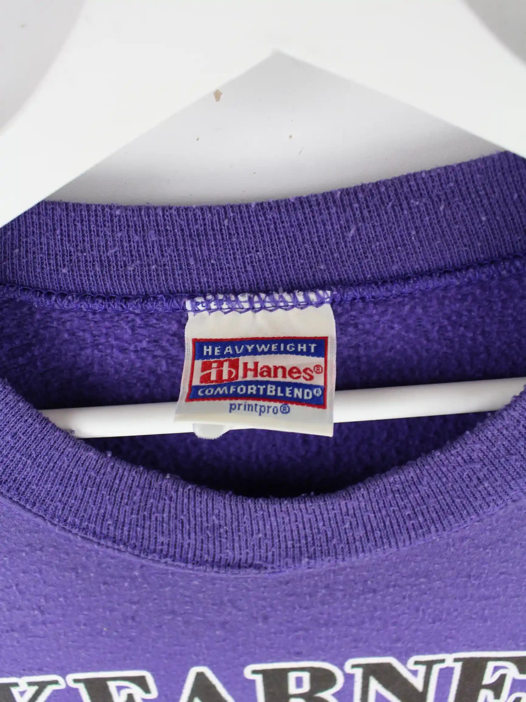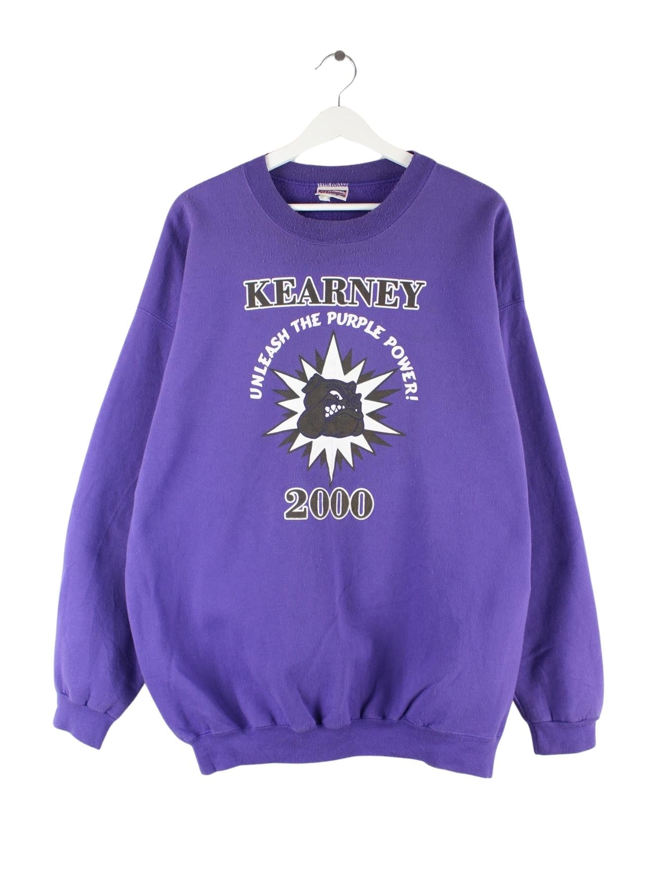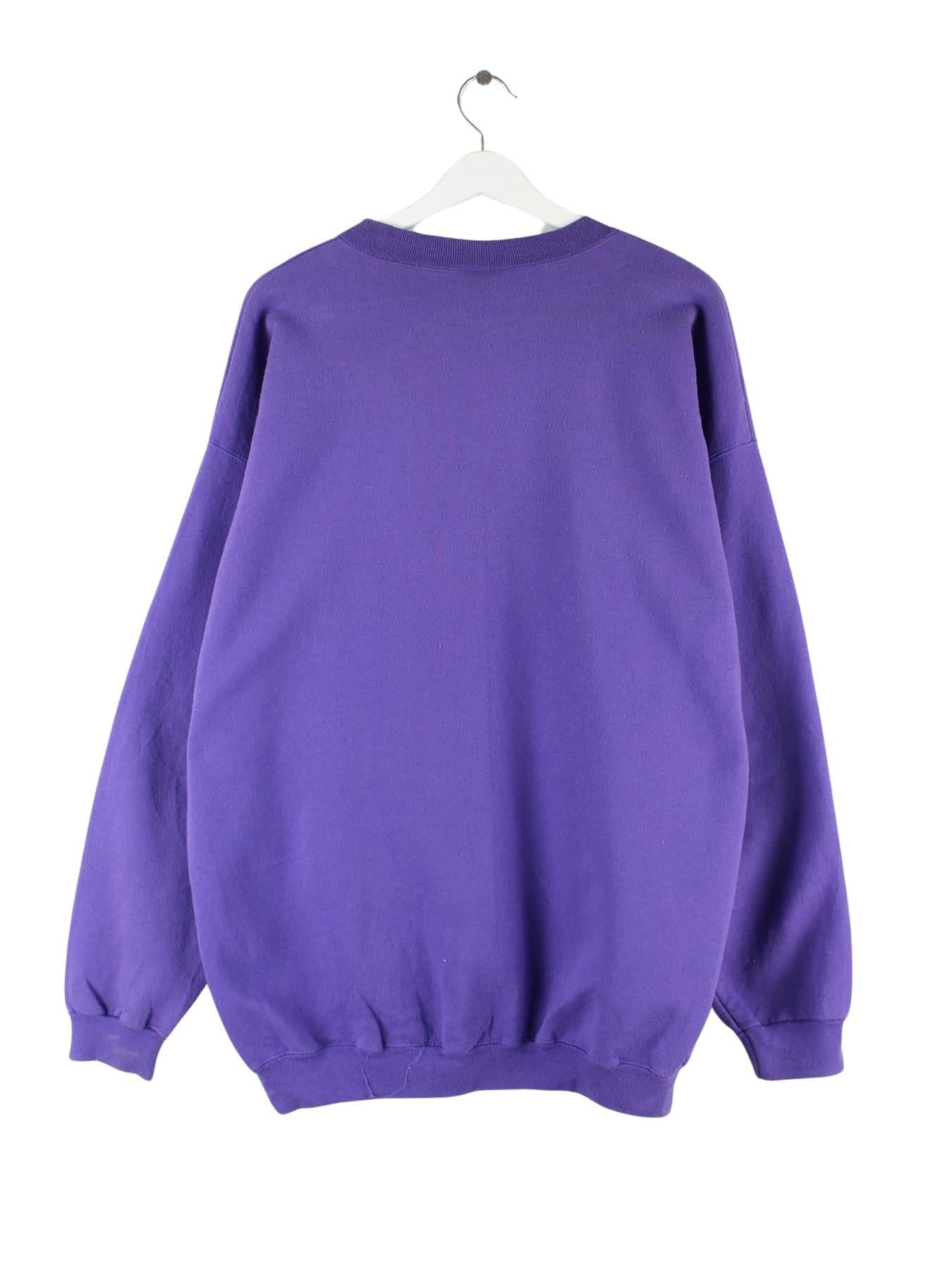 Sweater vom Label Hanes in Größe XXL. Er ist aus einer Baumwollmischung gefertigt und in Lila zu haben. Mit chiquem Kearney Print.