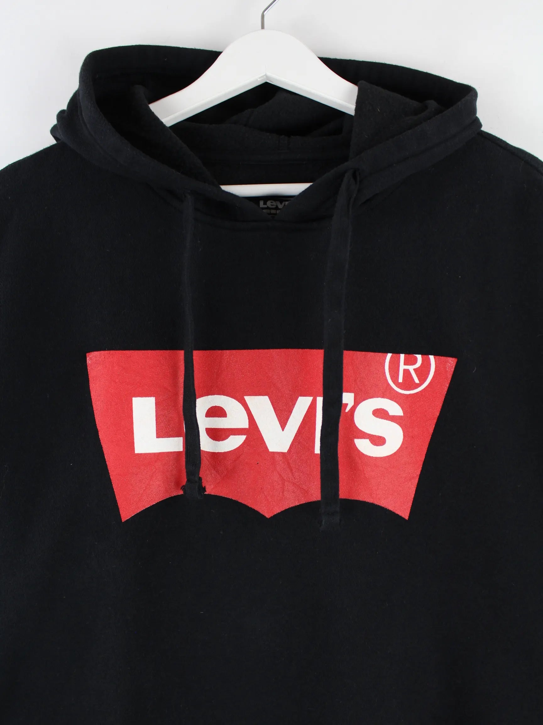 Schwarzer Hoodie der Brand Levi's in Größe XL. Er ist aus einer Baumwollmischung gemacht und in sehr gutem Zustand im Bestand. Mit tollem Logo Print.