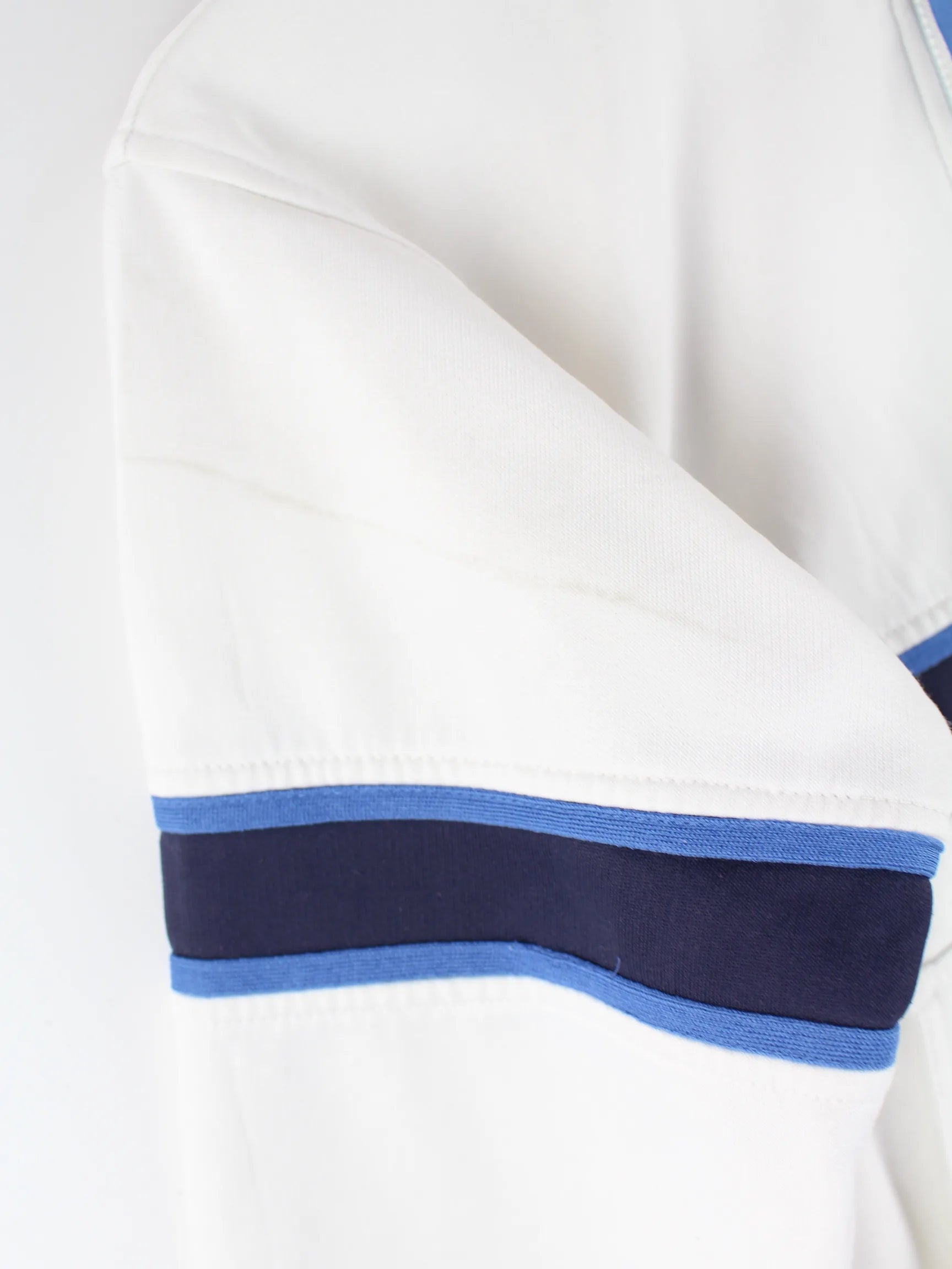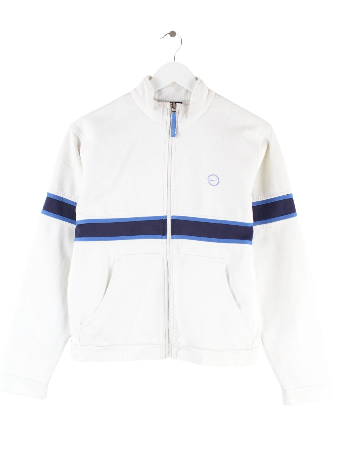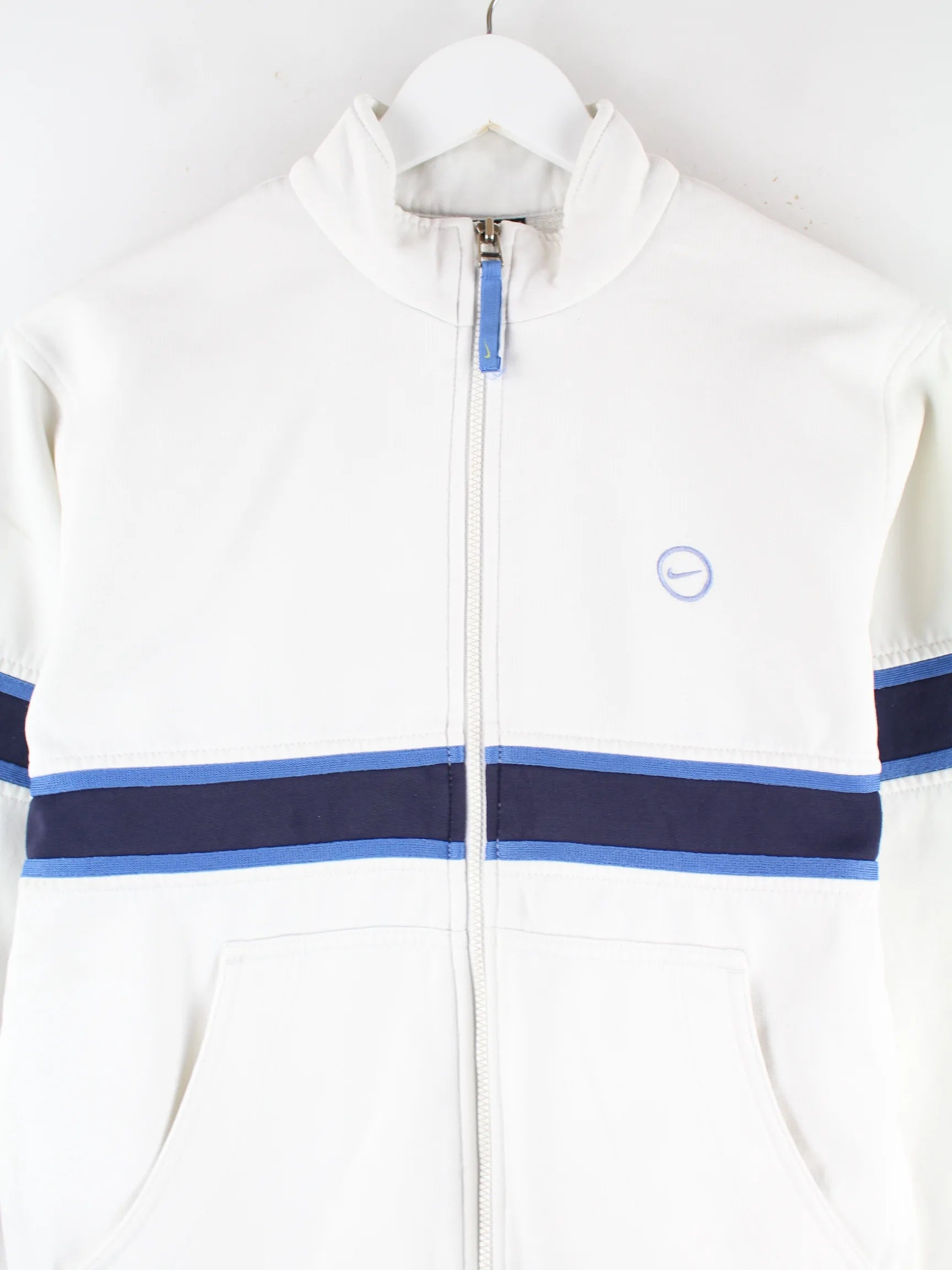 Weiße Sweatjacke der Brand Nike in Größe S. Sie ist aus einer Baumwollmischung angefertigt. Den Zustand würden wir als 'In Ordnung' bezeichnen (vergl. Bilder).