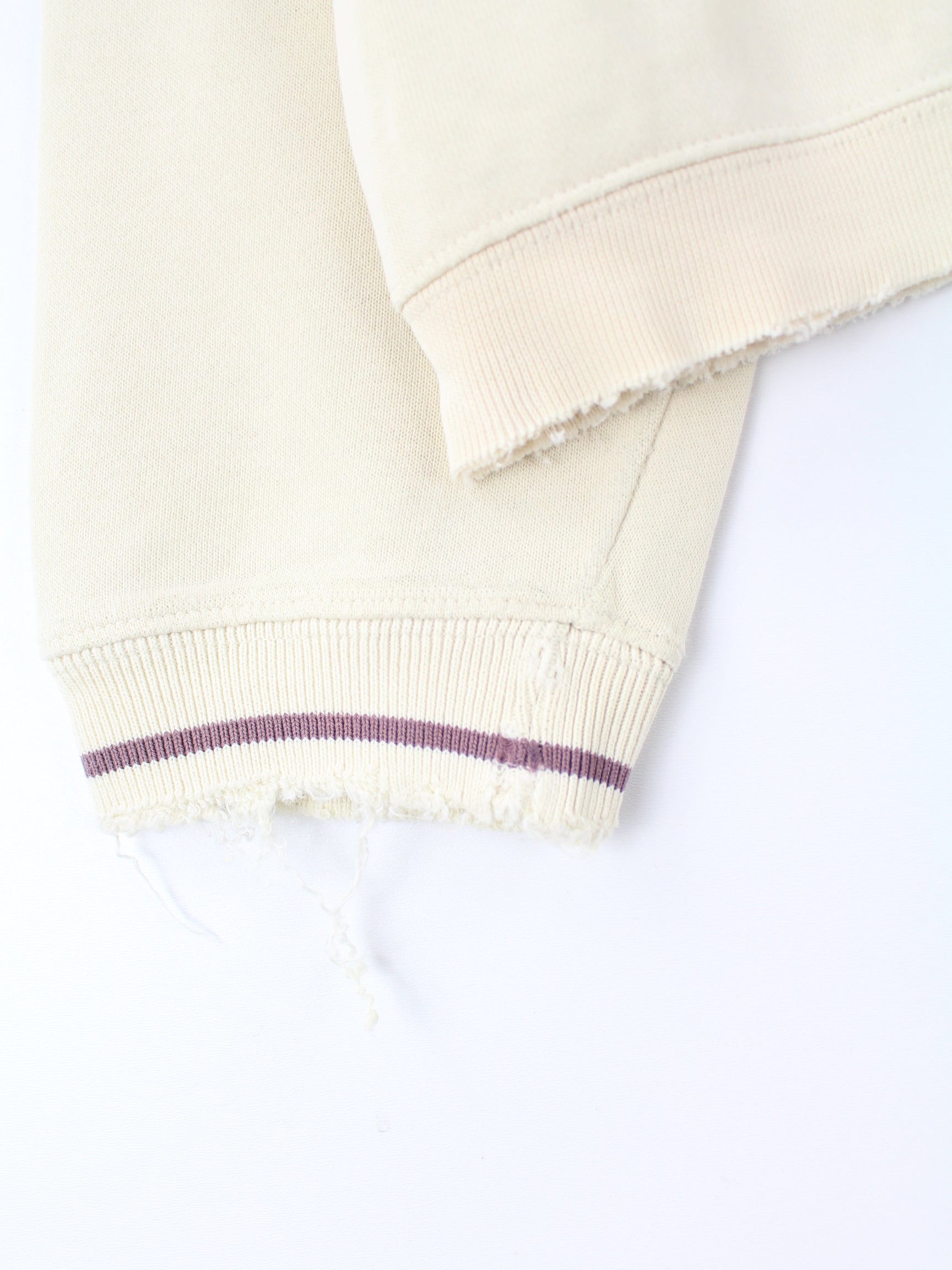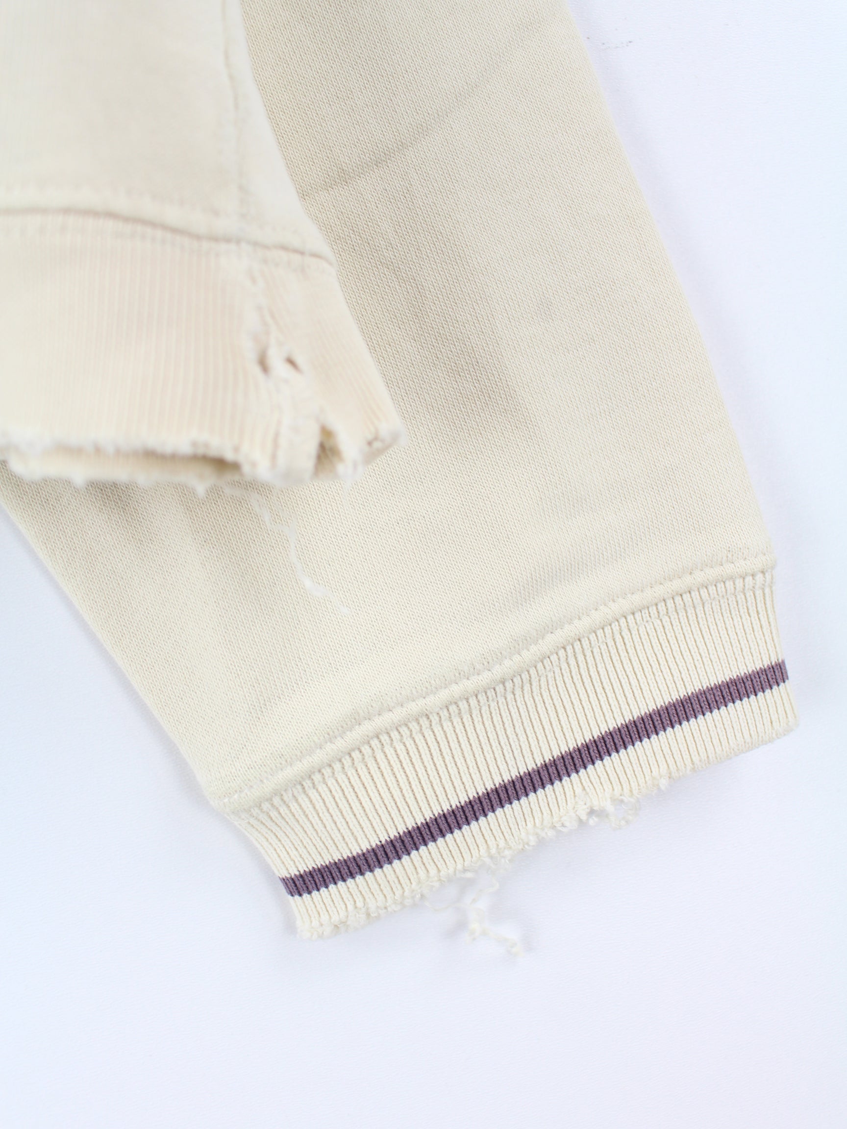 Defects: Frayed collar and cuffs as well as torn sides. Also stains/abrasion on elbows (see pictures)