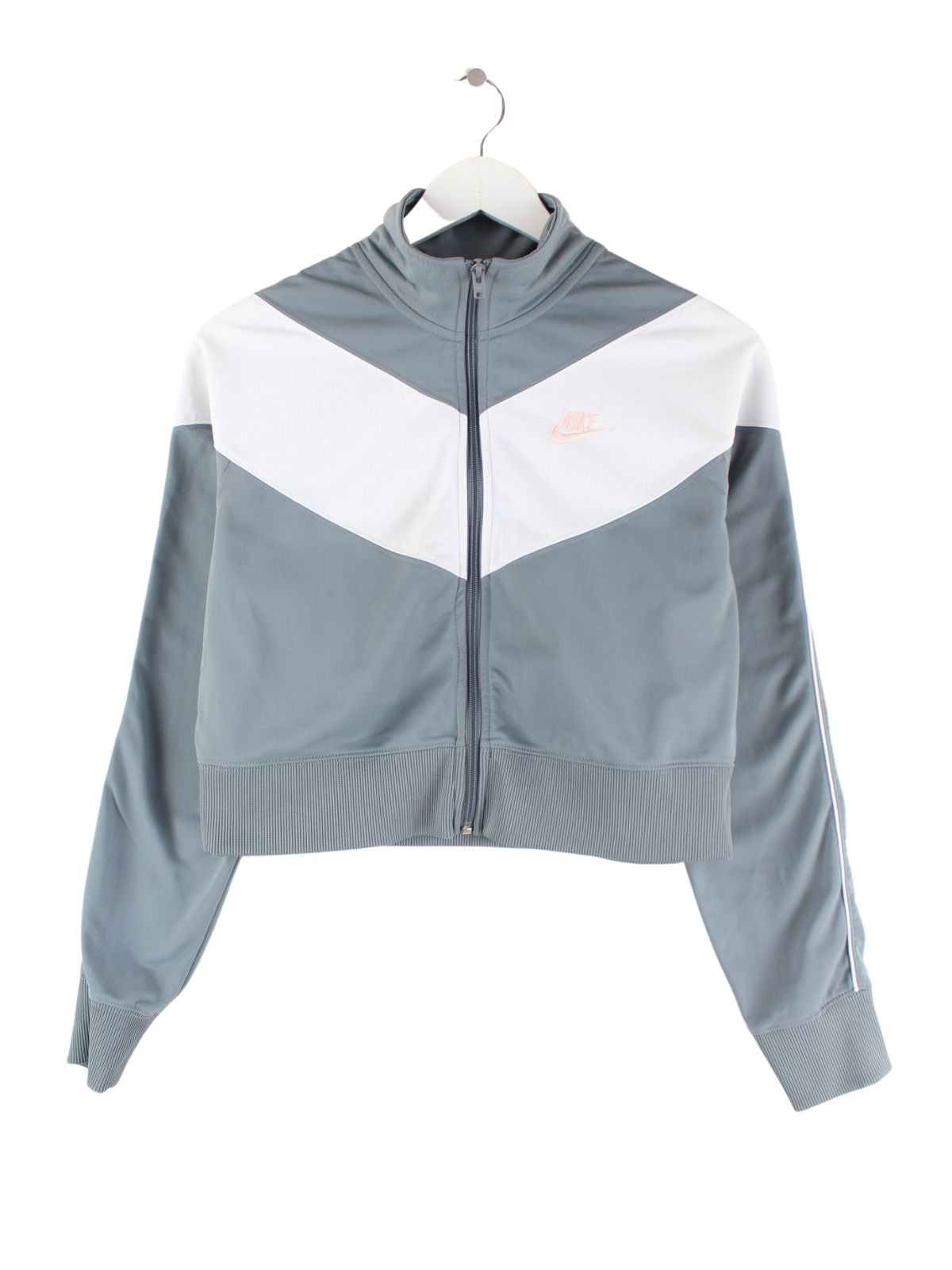 Graue Trainingsjacke vom Label Nike in Größe M. Sie ist aus Synthetik und in sehr gutem Zustand bei uns zu bekommen.