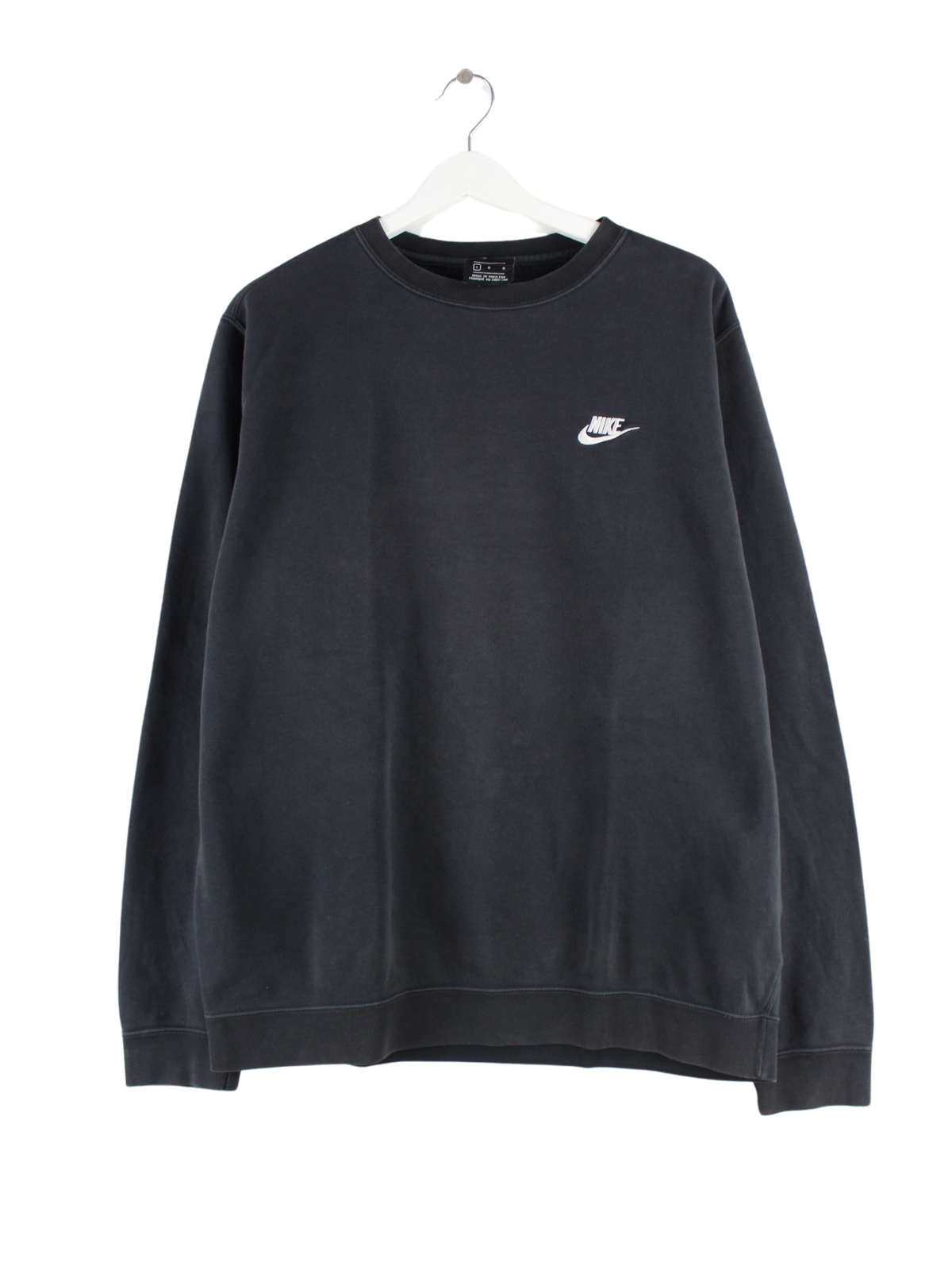 Sweater from the label Nike with embroidered logo in size L. It is made of a cotton blend and comes in black.