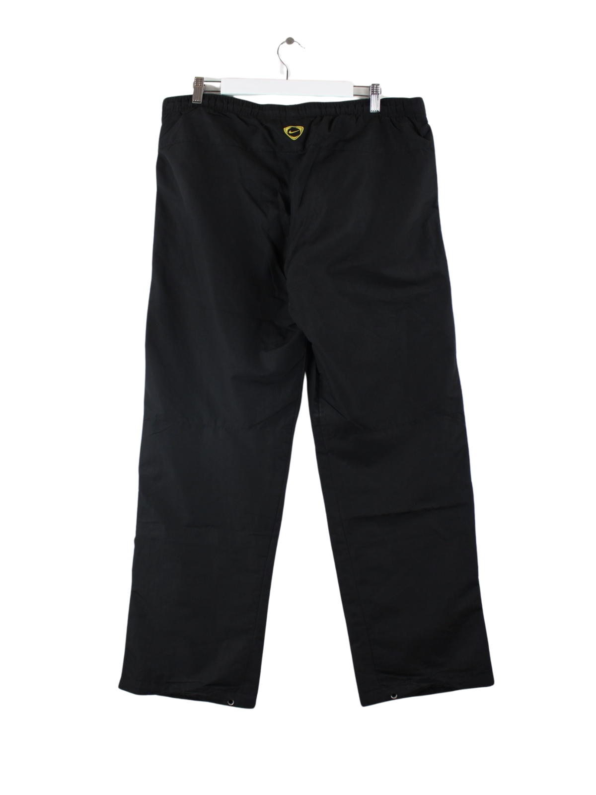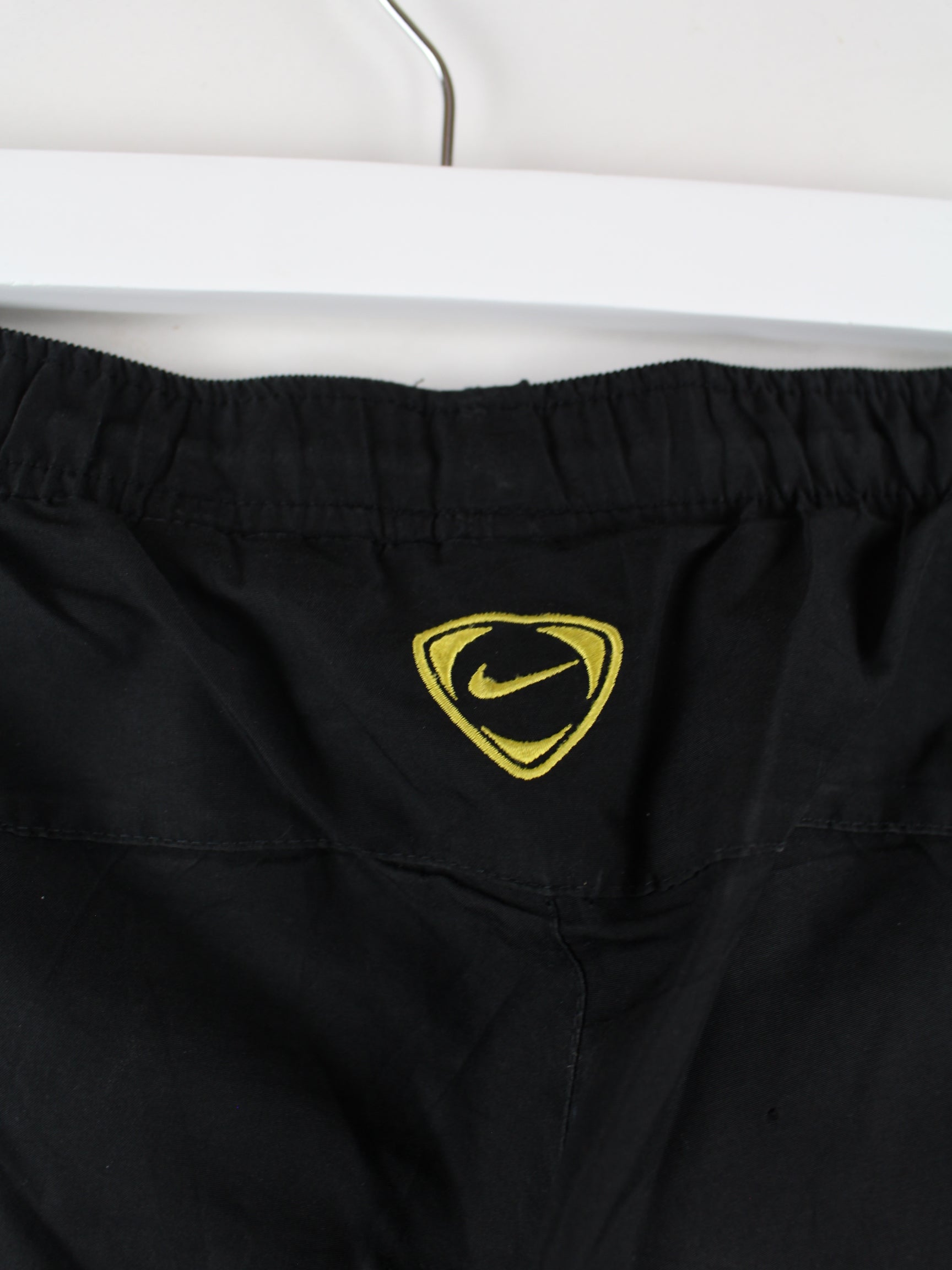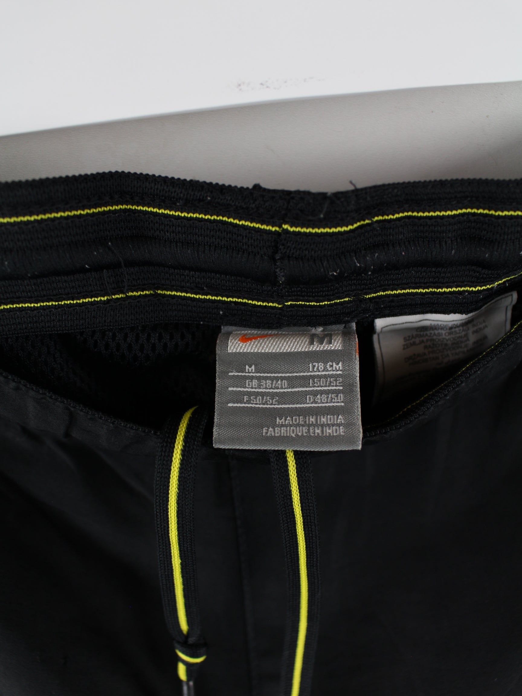 Black track pants from Nike in size M. They are made of synthetic material and are in good condition.