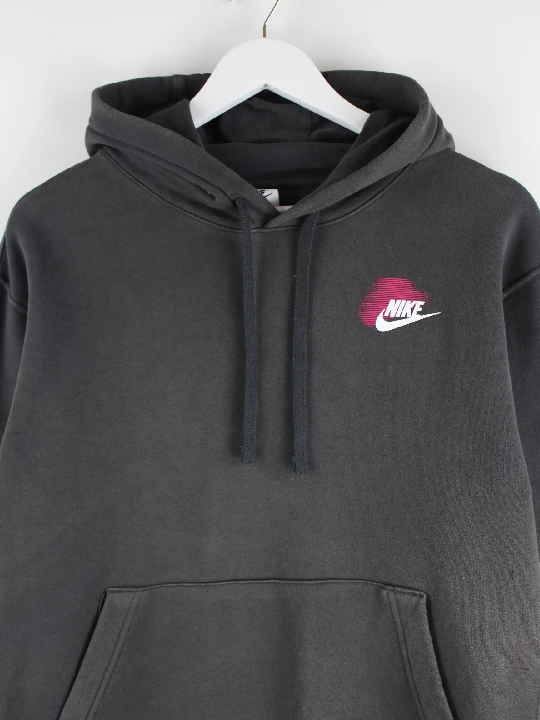 Hoodie des Labels Nike in Größe S. Er ist aus einer Baumwollmischung und in Grau auf Lager. Mit tollem Print.