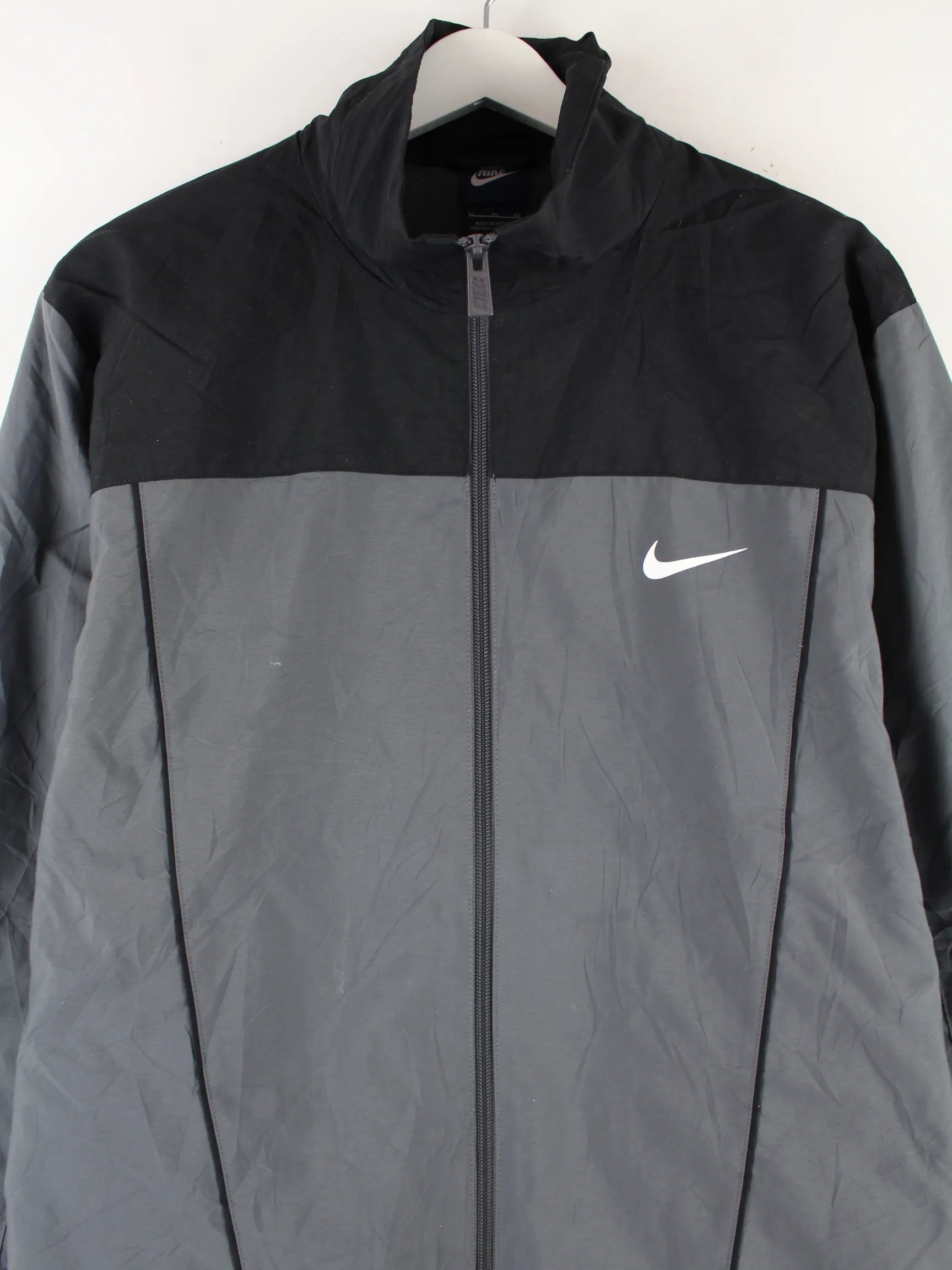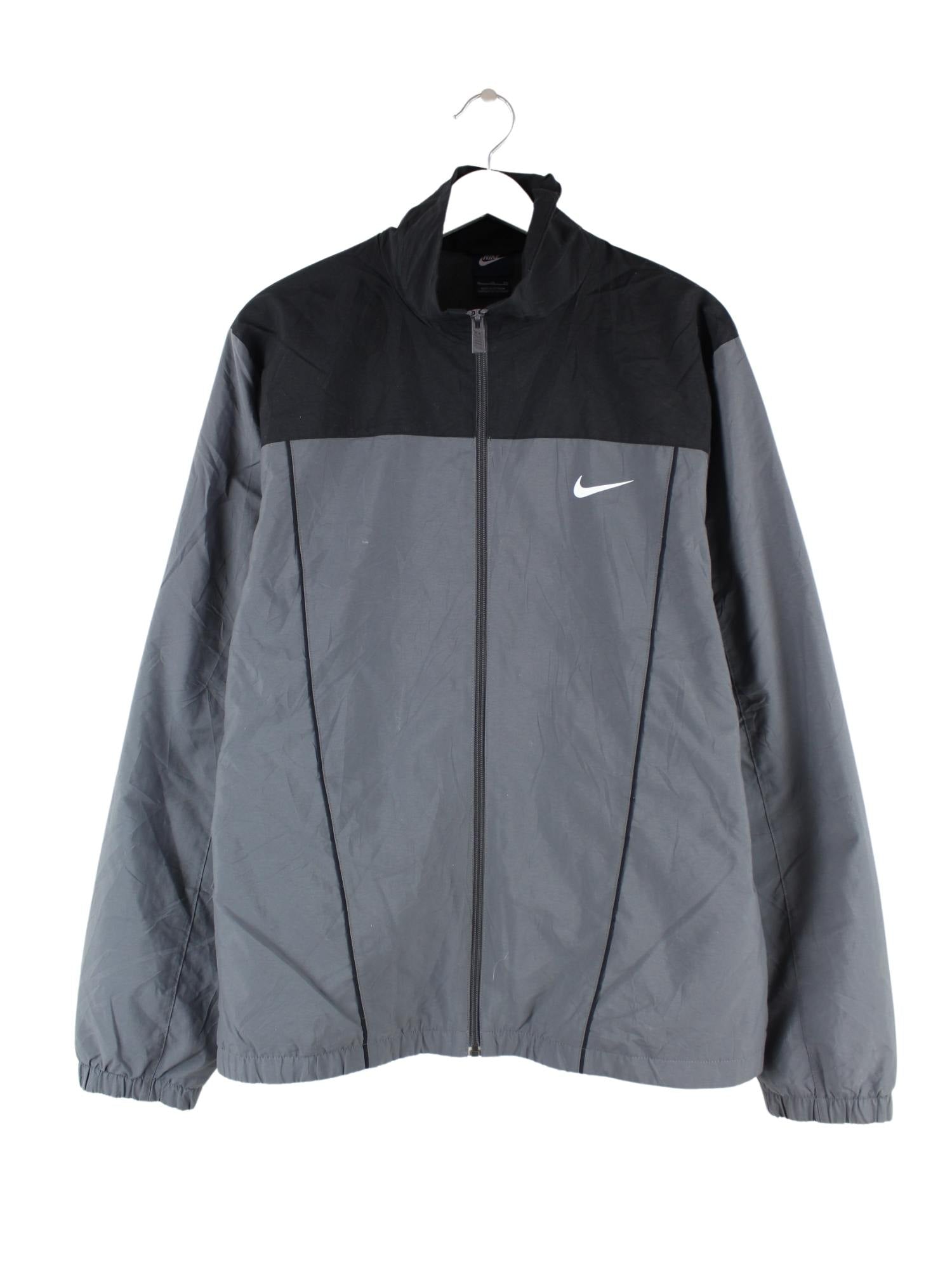 Graue Trainingsjacke des Labels Nike in Größe XL. Sie ist aus Synthetik gefertigt und in sehr gutem Zustand zu haben. Mit chiquem Swoosh Print.