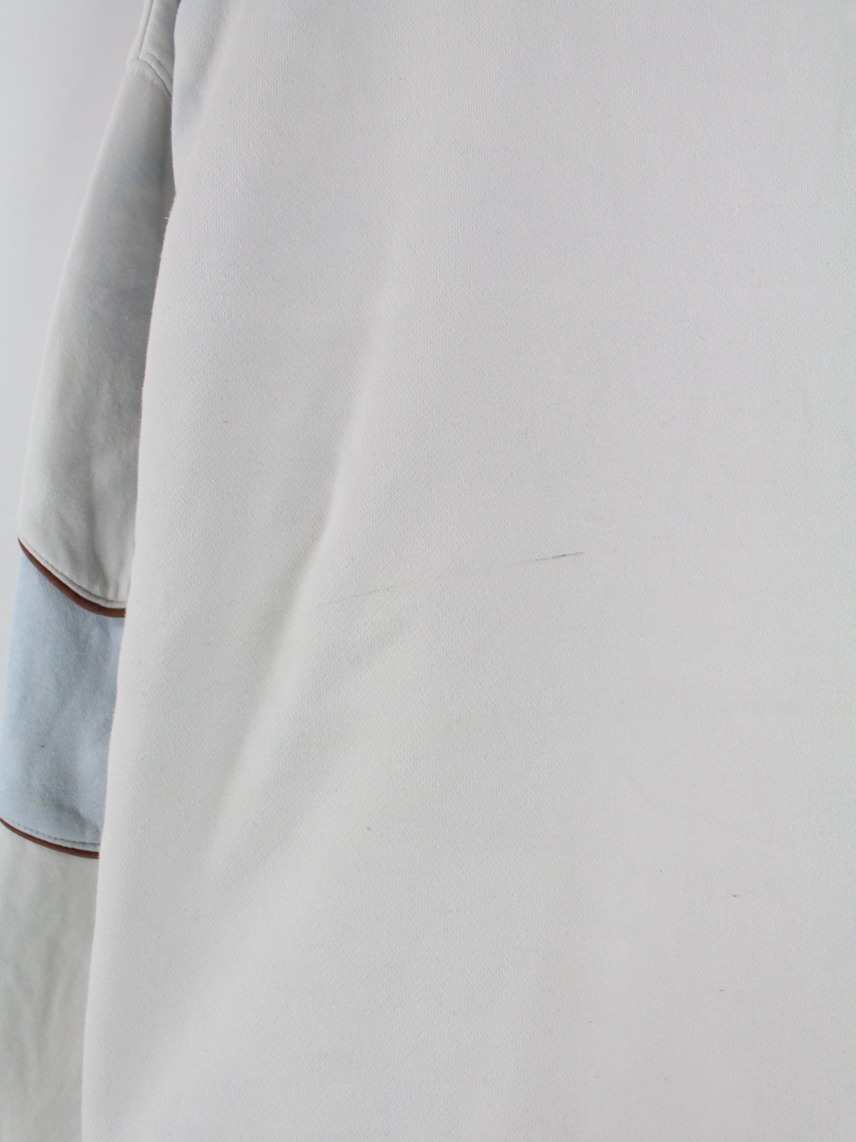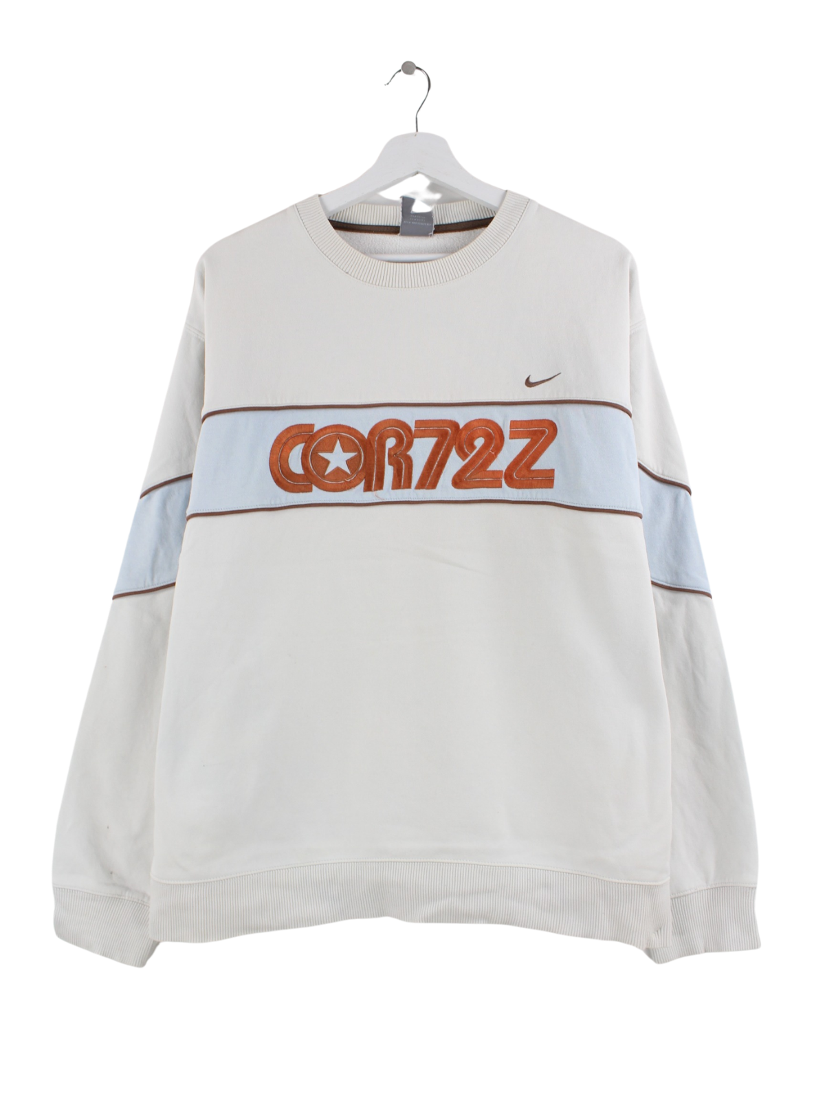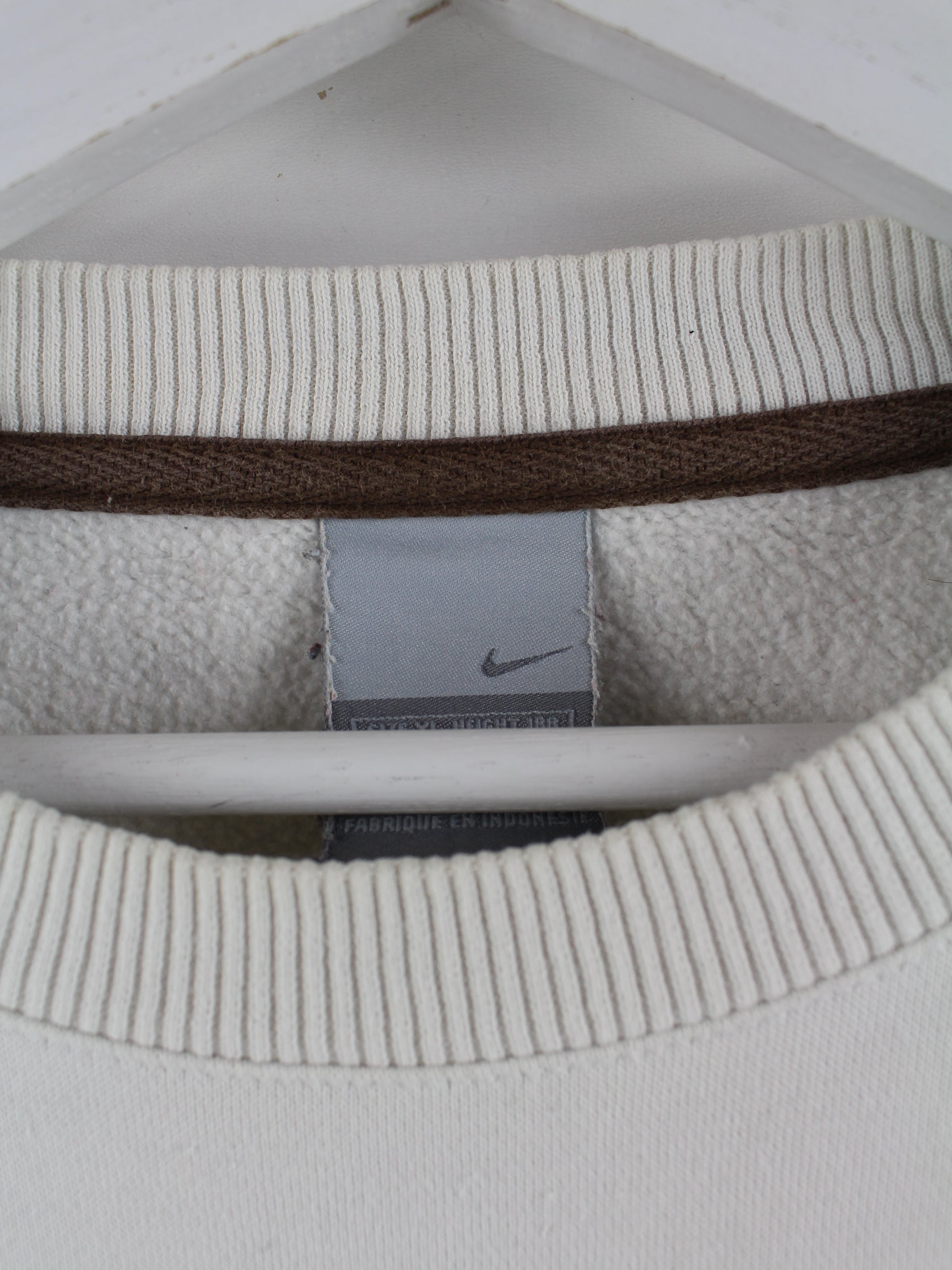 White sweater with embroidery from the Nike label from the early 2000s in size L. It is made from a cotton blend. We would describe the condition as 'OK' (see pictures).