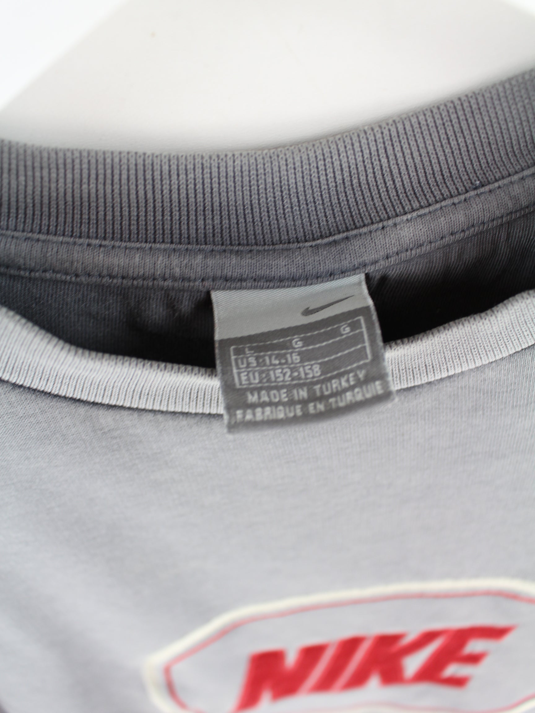 Sweater from the Nike label with embroidered logo in size S from the early 2000s. It is made from a cotton blend and is available in grey.