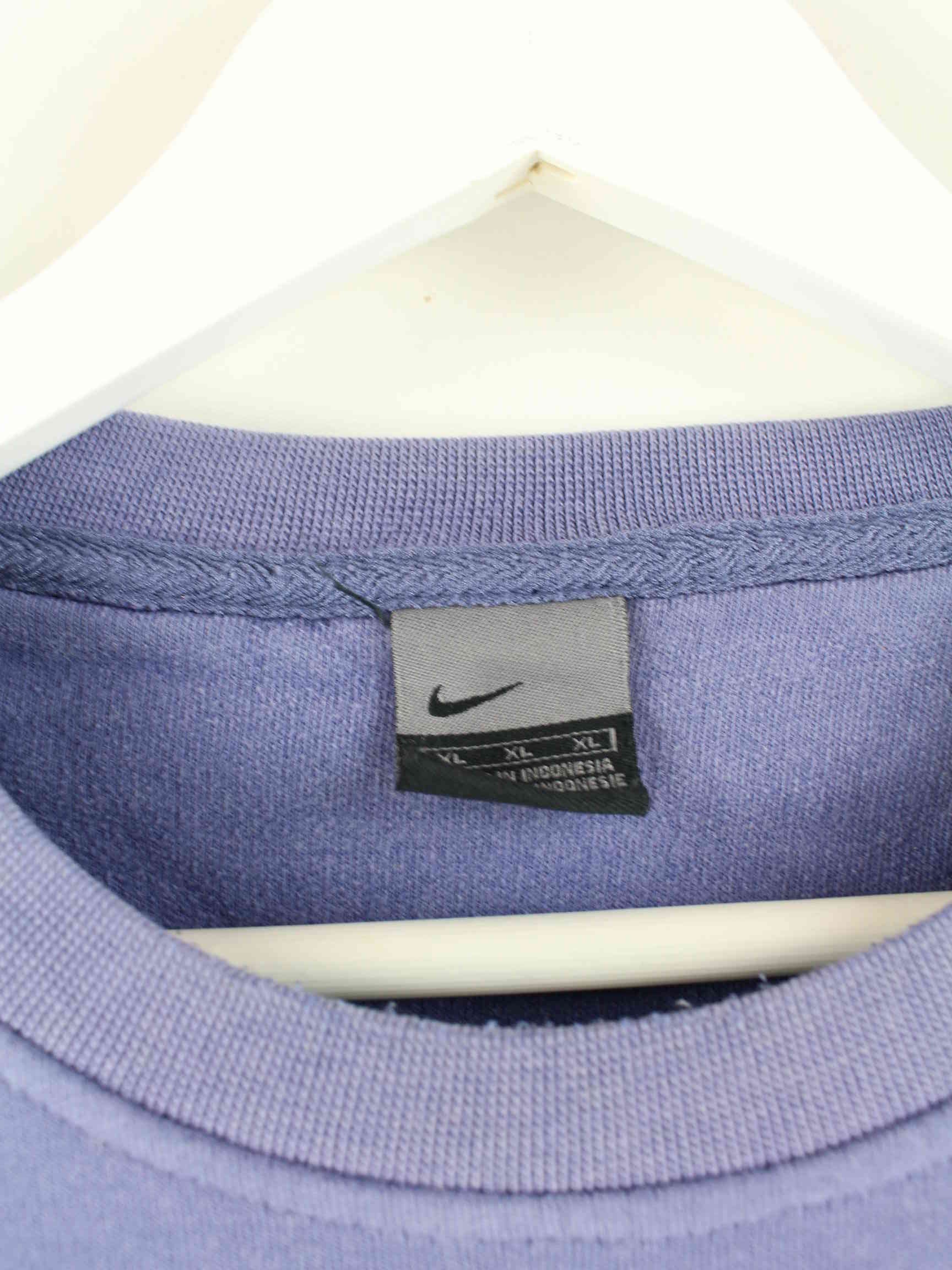 Nike sweater with embroidery in size XL from the early 2000s. It's made from a cotton blend and is stocked in blue.