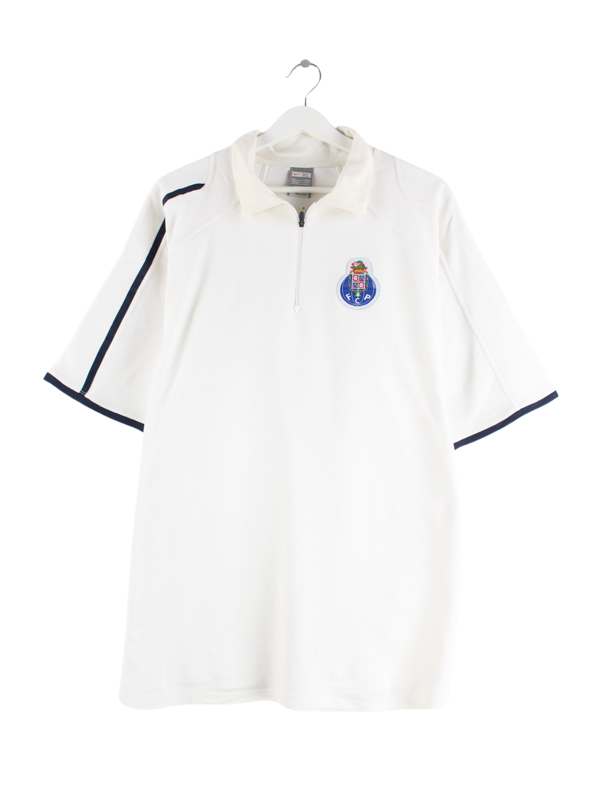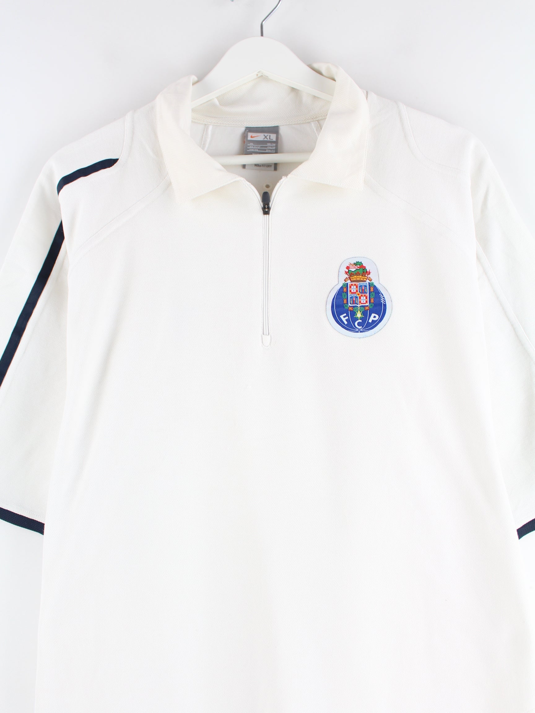 Polo shirt from the Nike brand in size XL from the early 2000s. It is made of cotton and is available from us in white.