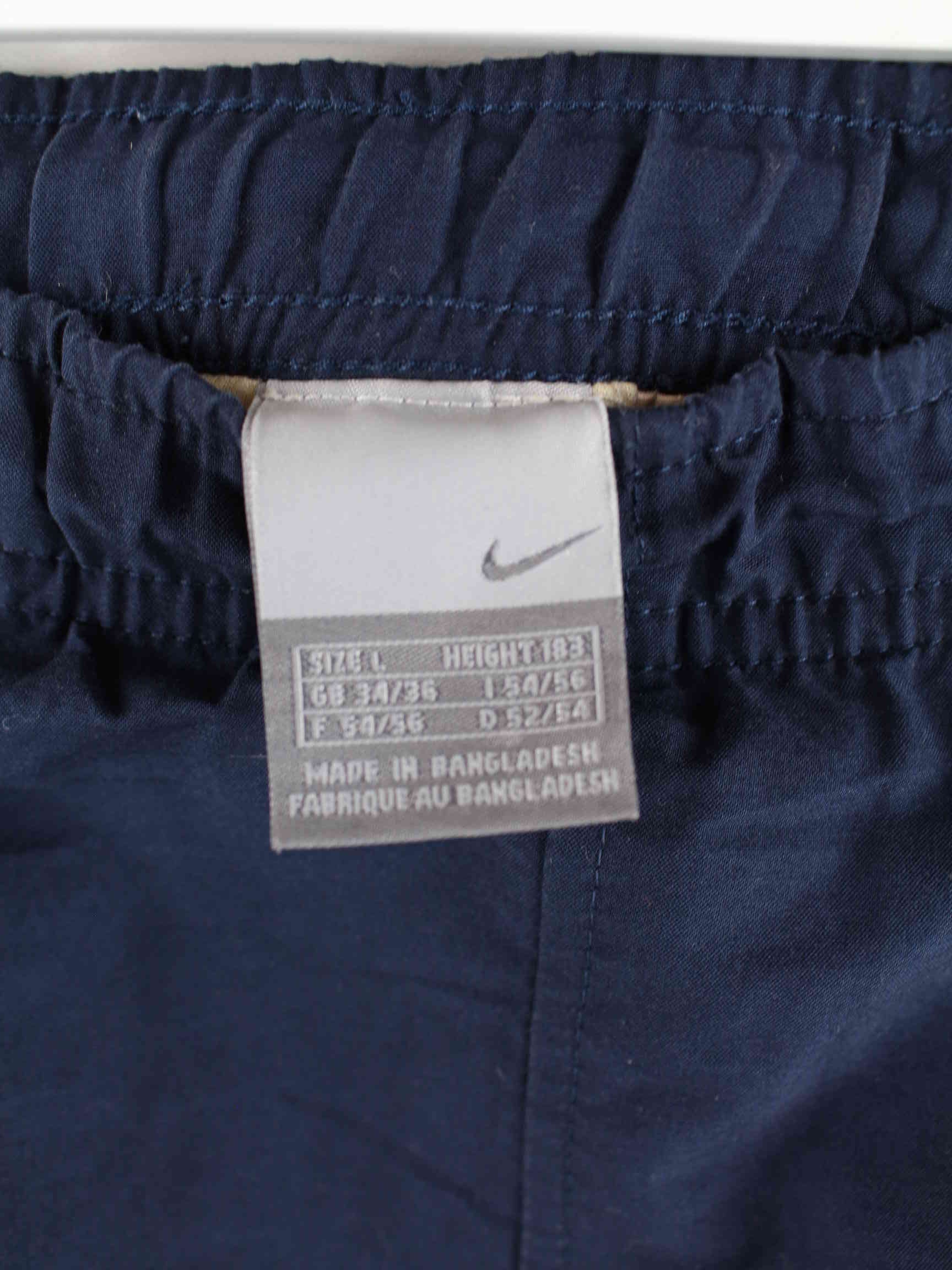 Track pants from the Nike label in size L from the early 2000s. They are made of synthetic material and come in blue.
