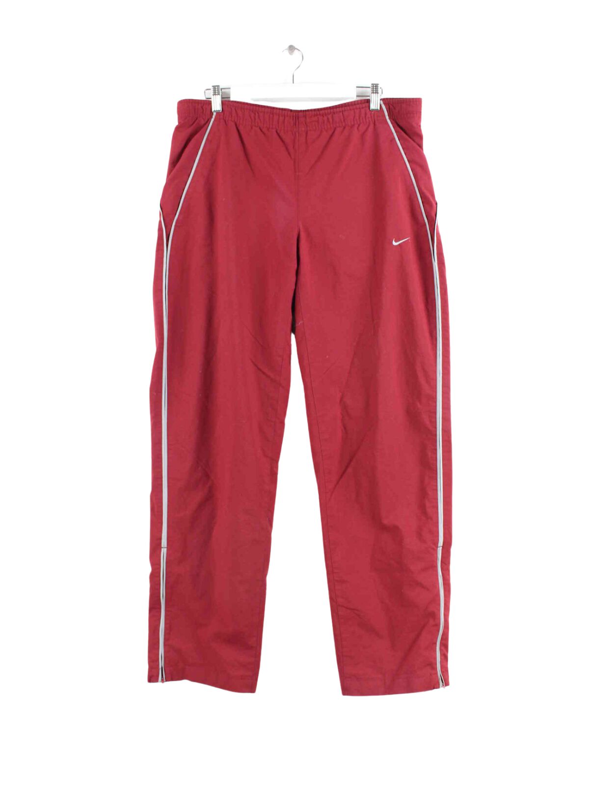 Track pants from the Nike label in size L from the early 2000s. They are made of synthetic material and are available in red.