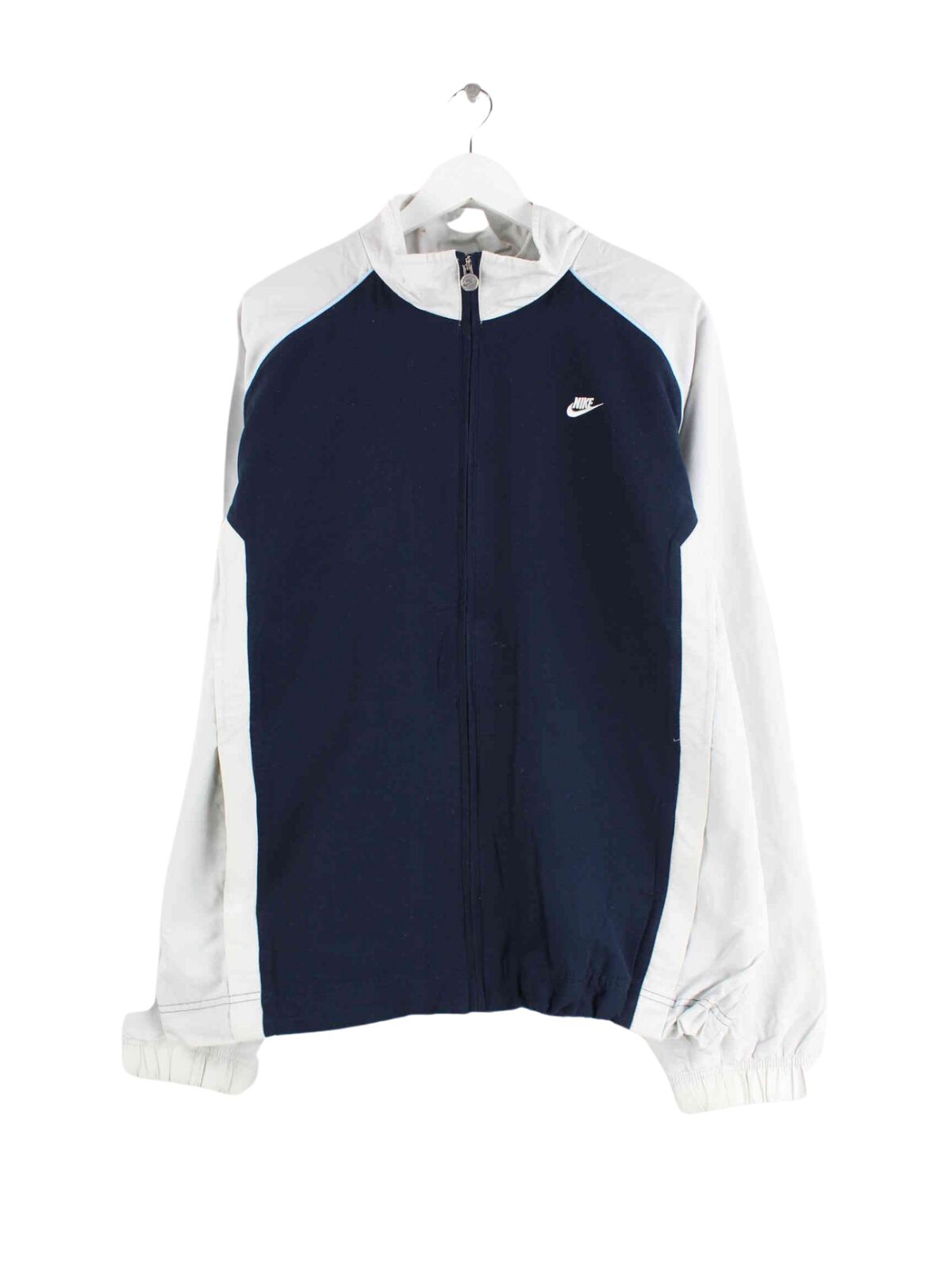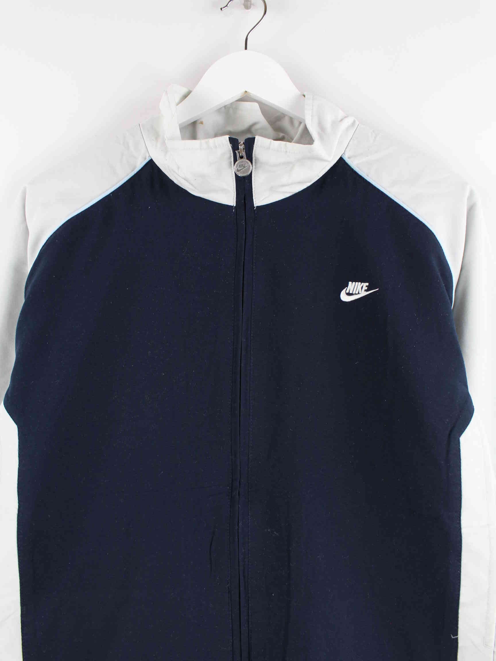 Blue training jacket from the Nike label from the early 2000s in size XL. It is made of synthetic material and is available from us in good condition.