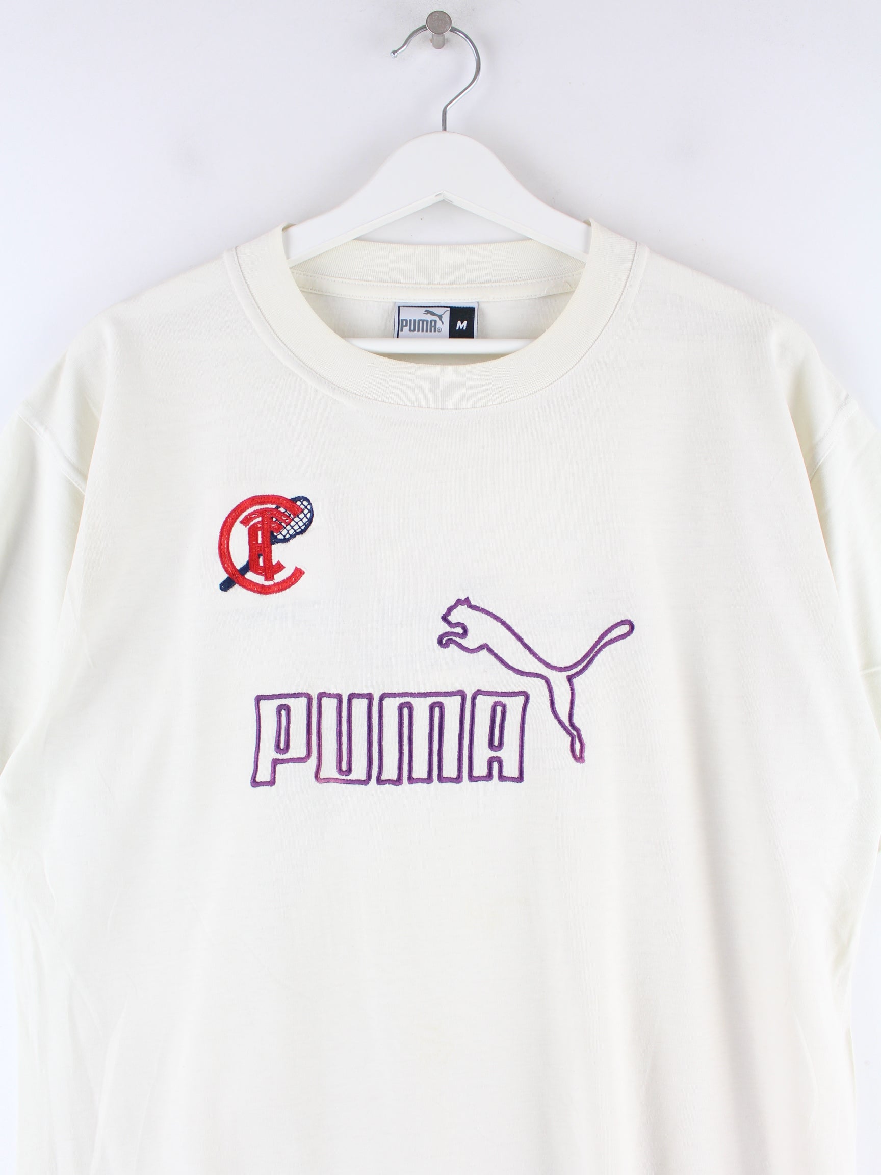 T-shirt from the Puma label with embroidered logo in size M. It is made of cotton and available in beige.