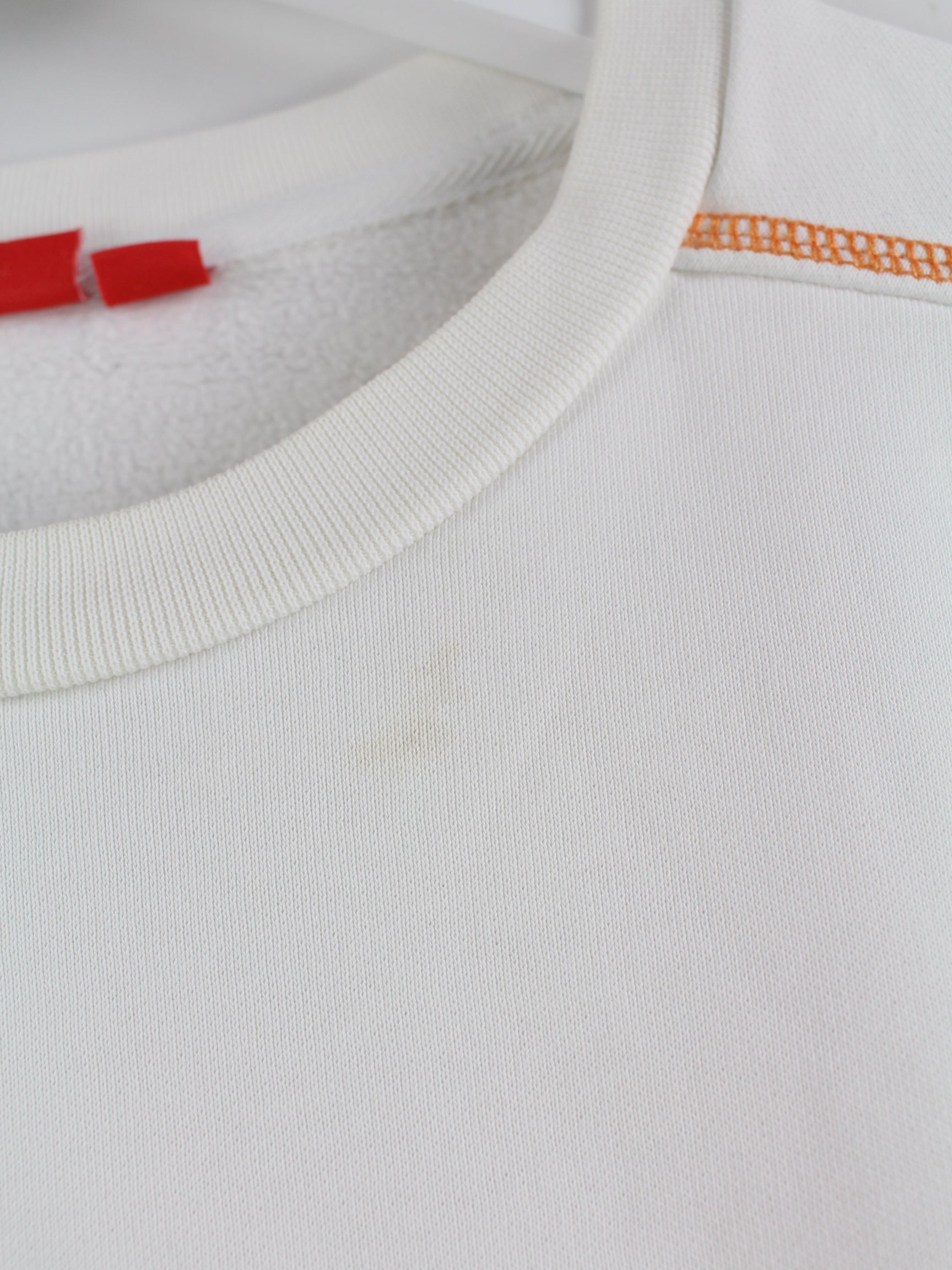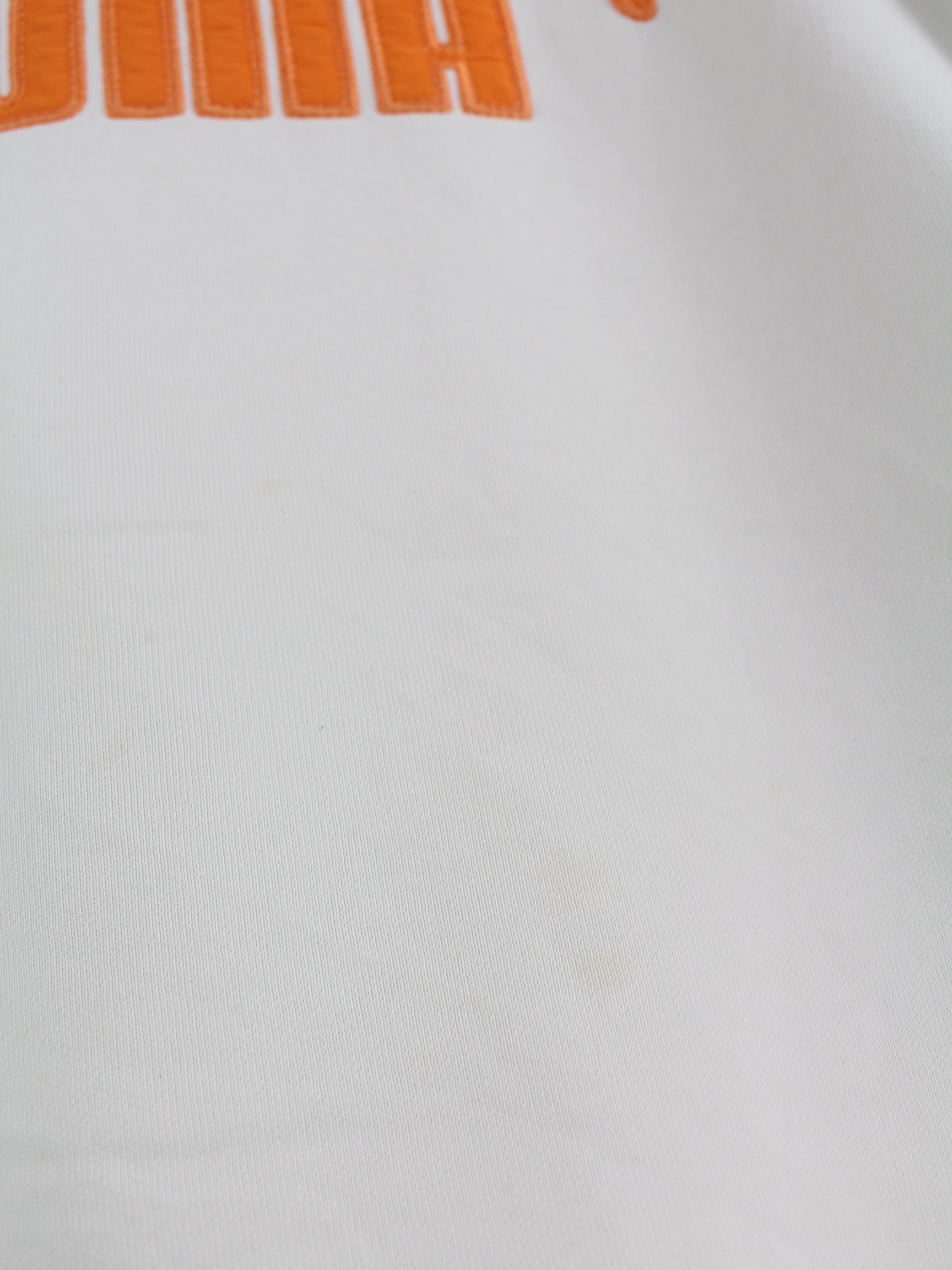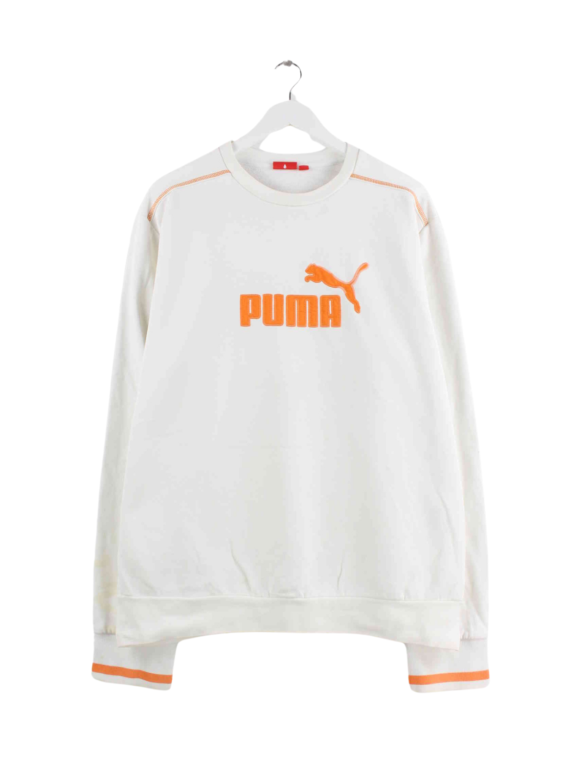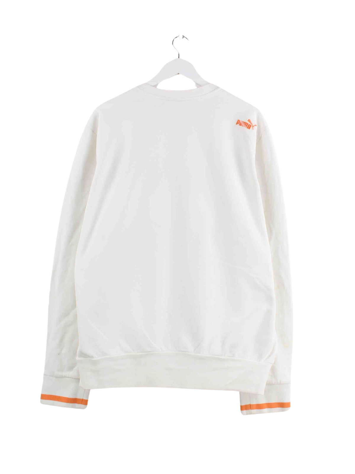White sweater with embroidered patterns from Puma in size XL. It is made from a cotton blend. We would describe the condition as 'OK' (see pictures).