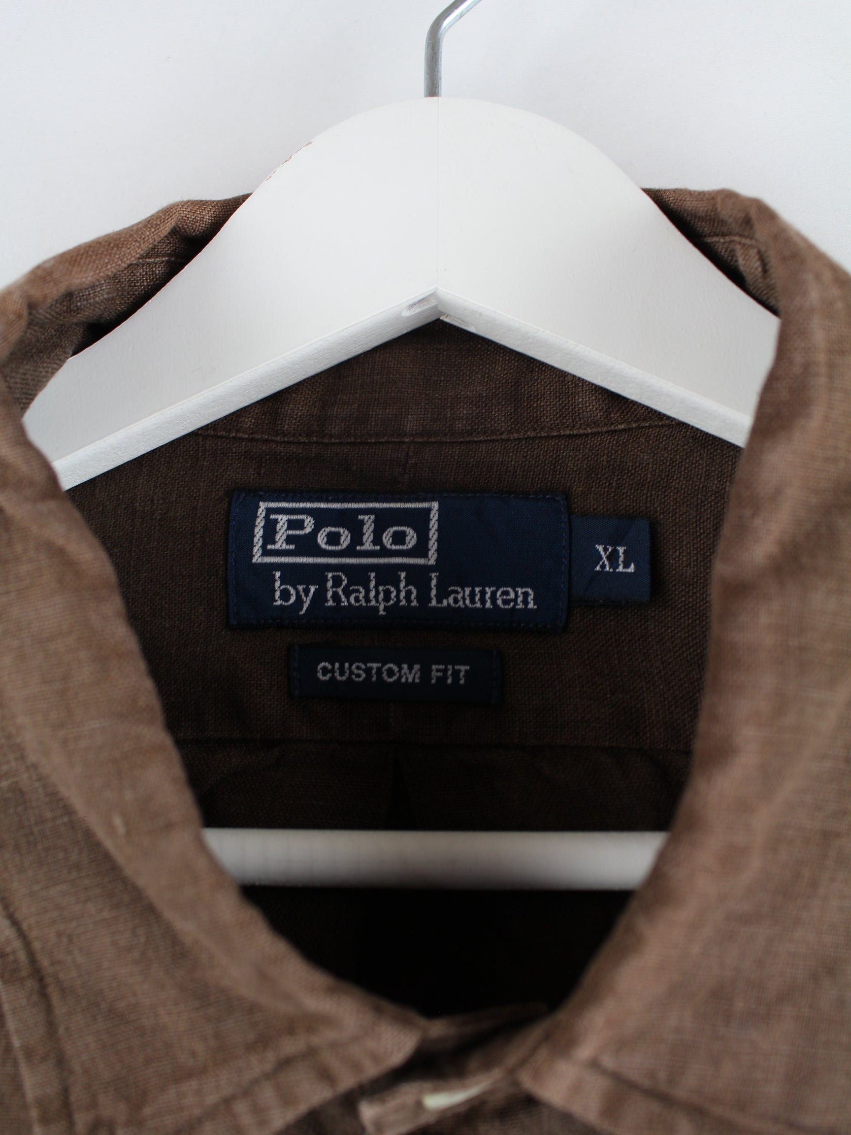 Ralph Lauren Custom Fit Leinen Hemd Braun XL