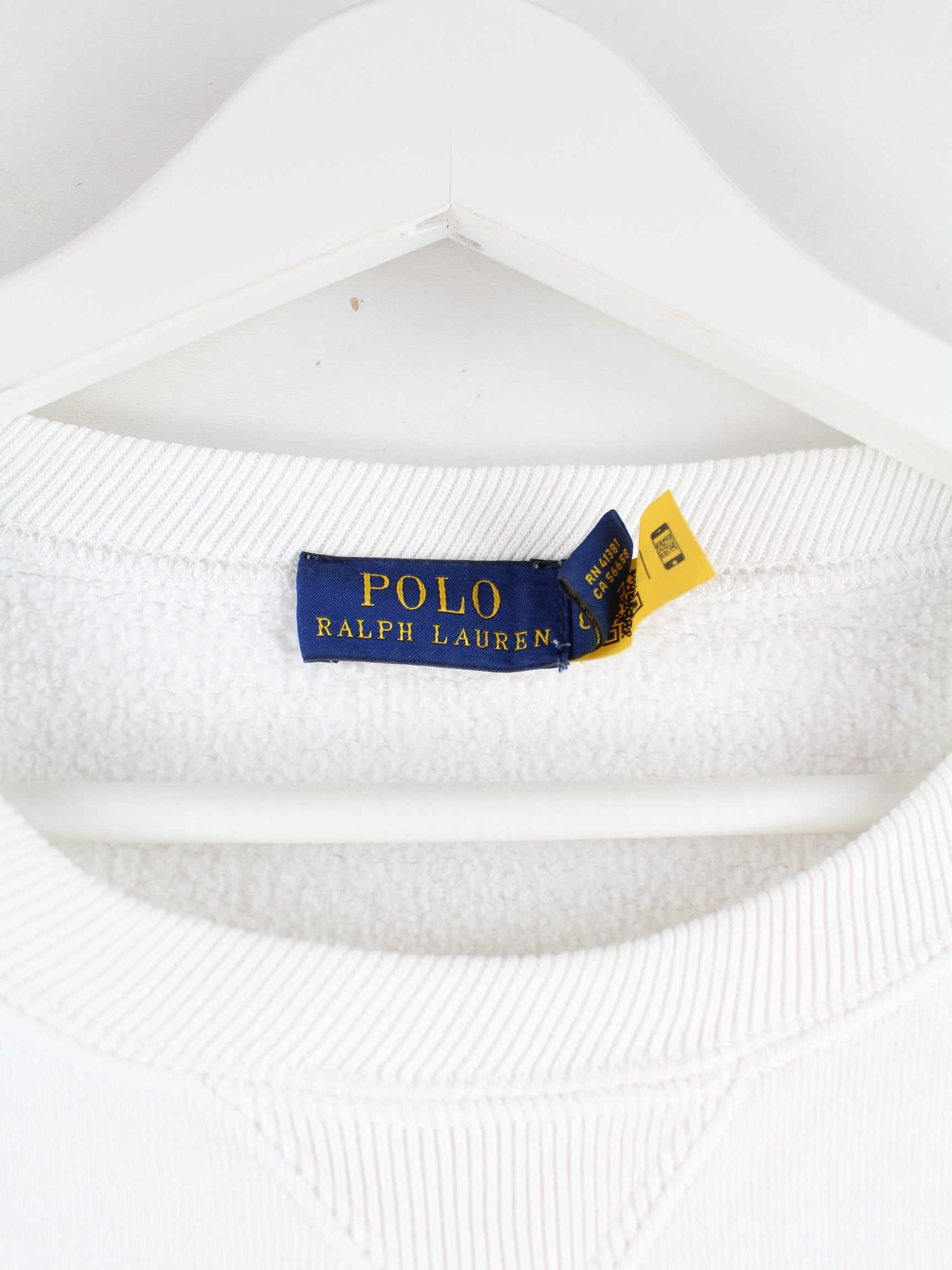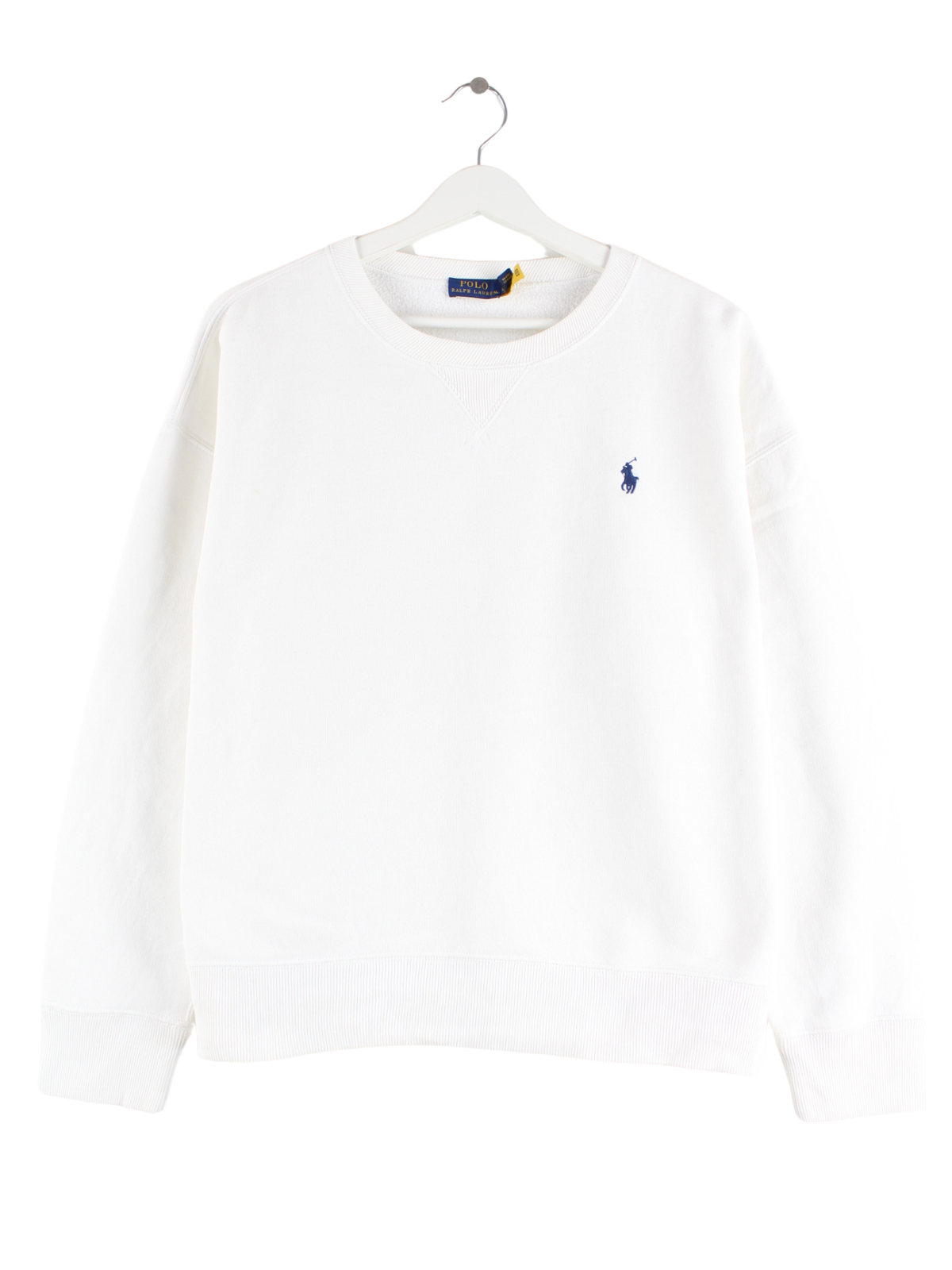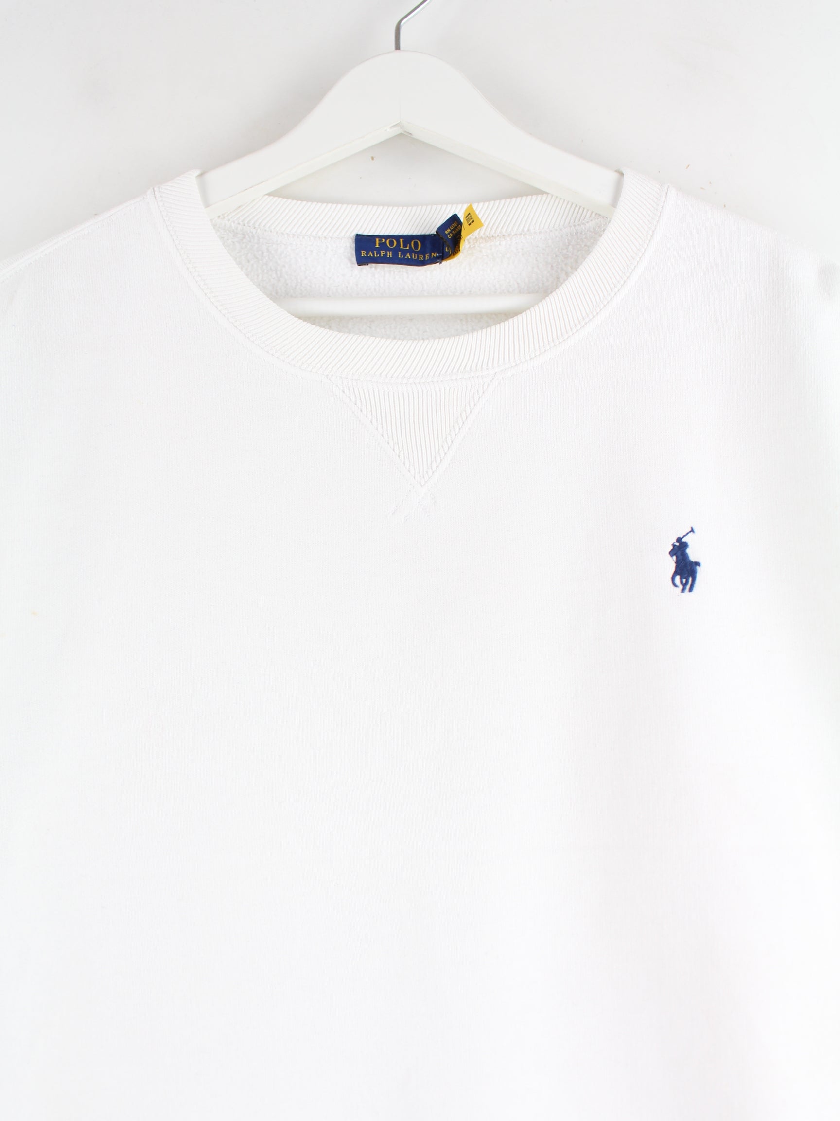 White sweater from the label Ralph Lauren in size L. It is made from a cotton blend. We would describe the condition as 'fine' (see pictures).