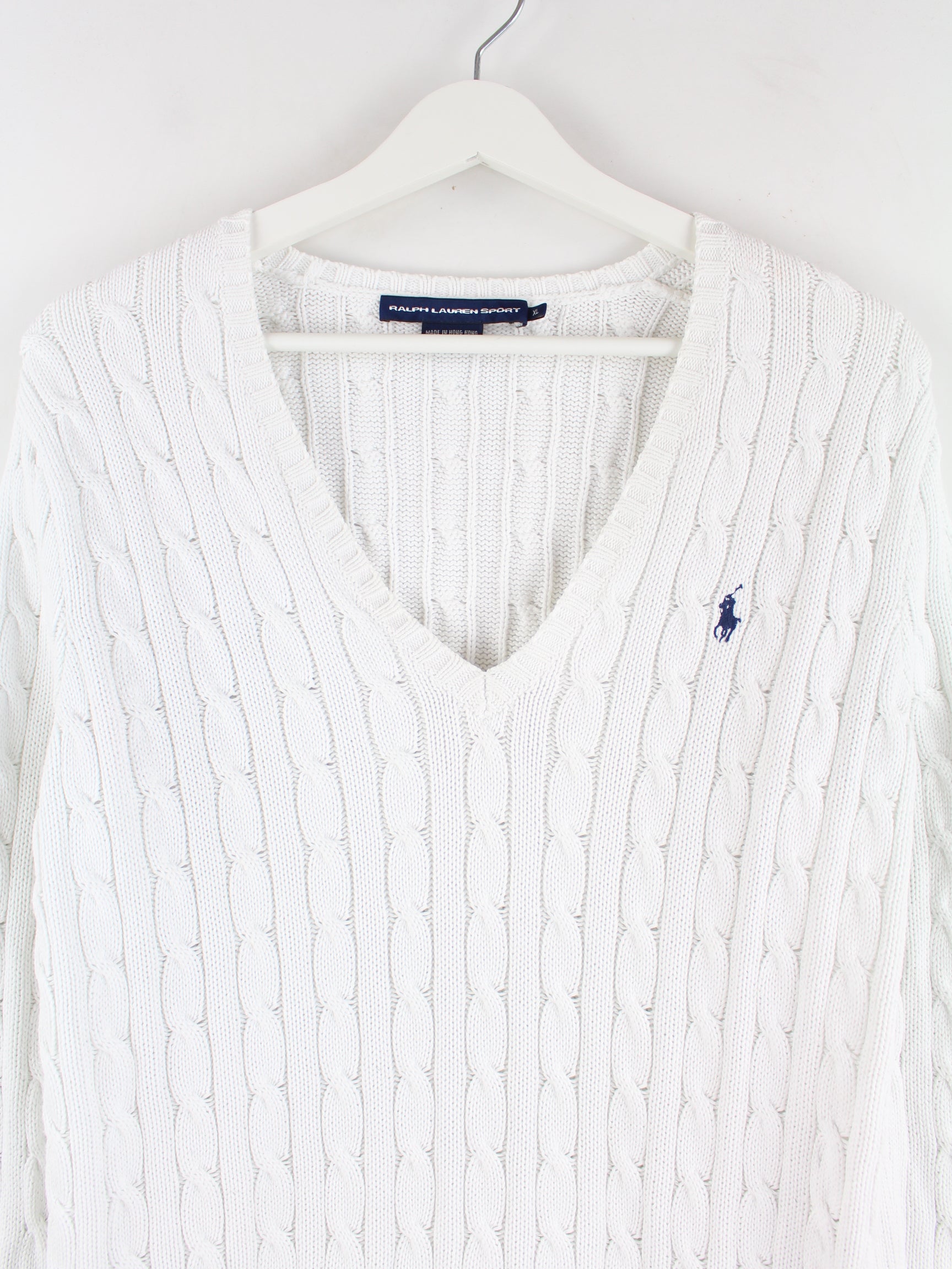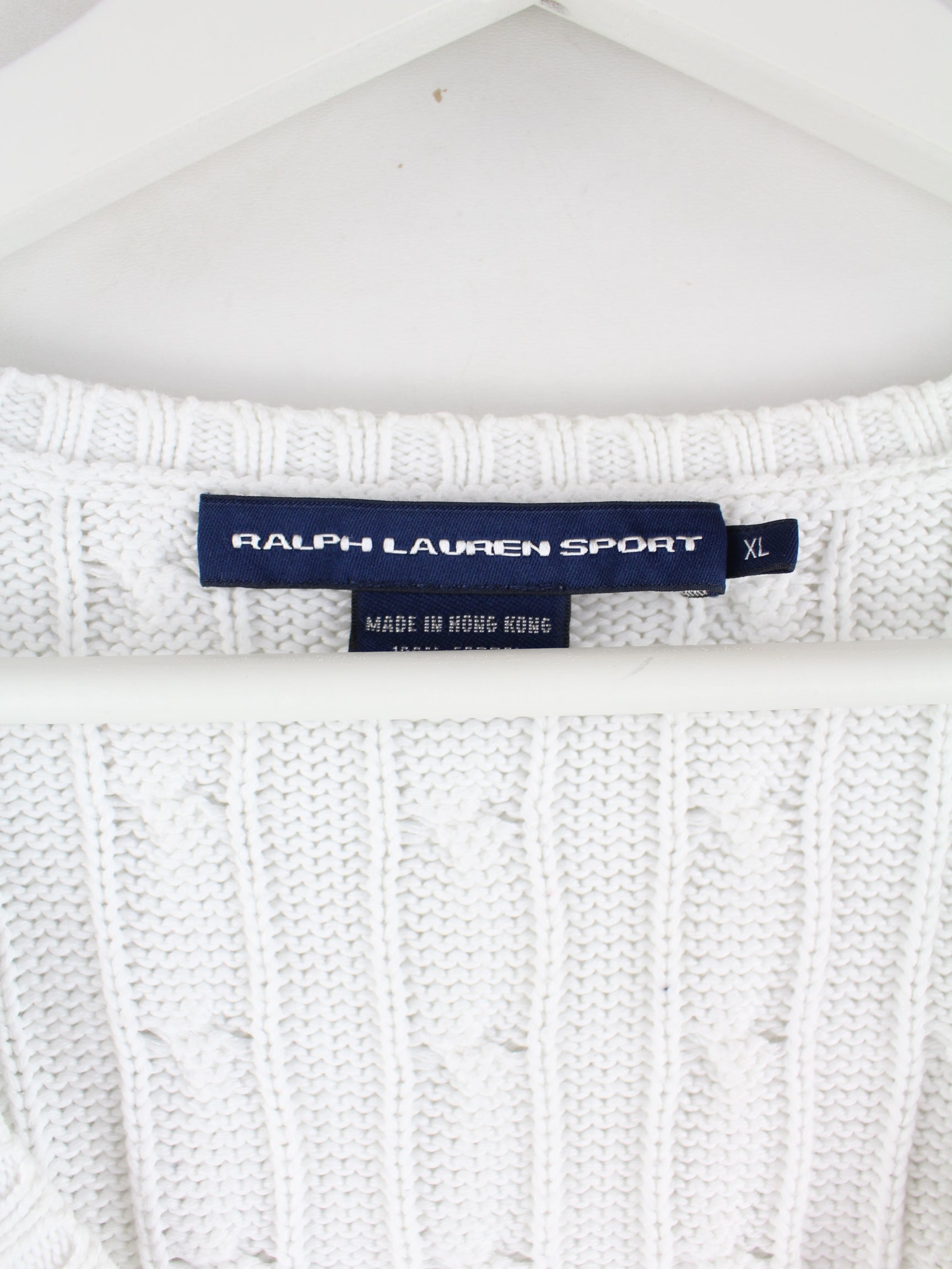 White sweater by Ralph Lauren in size XL. It is made of cotton and in very good condition in stock.