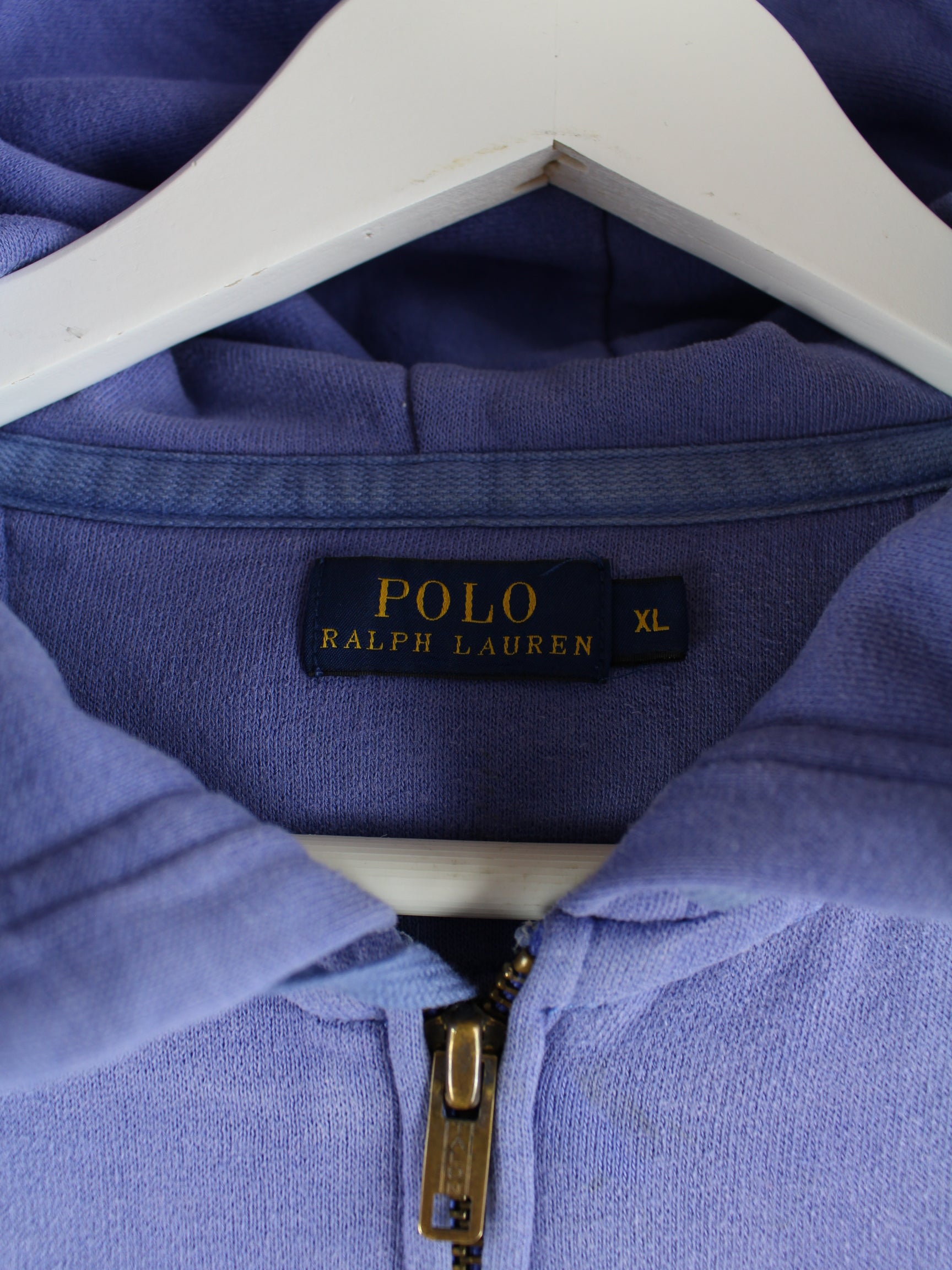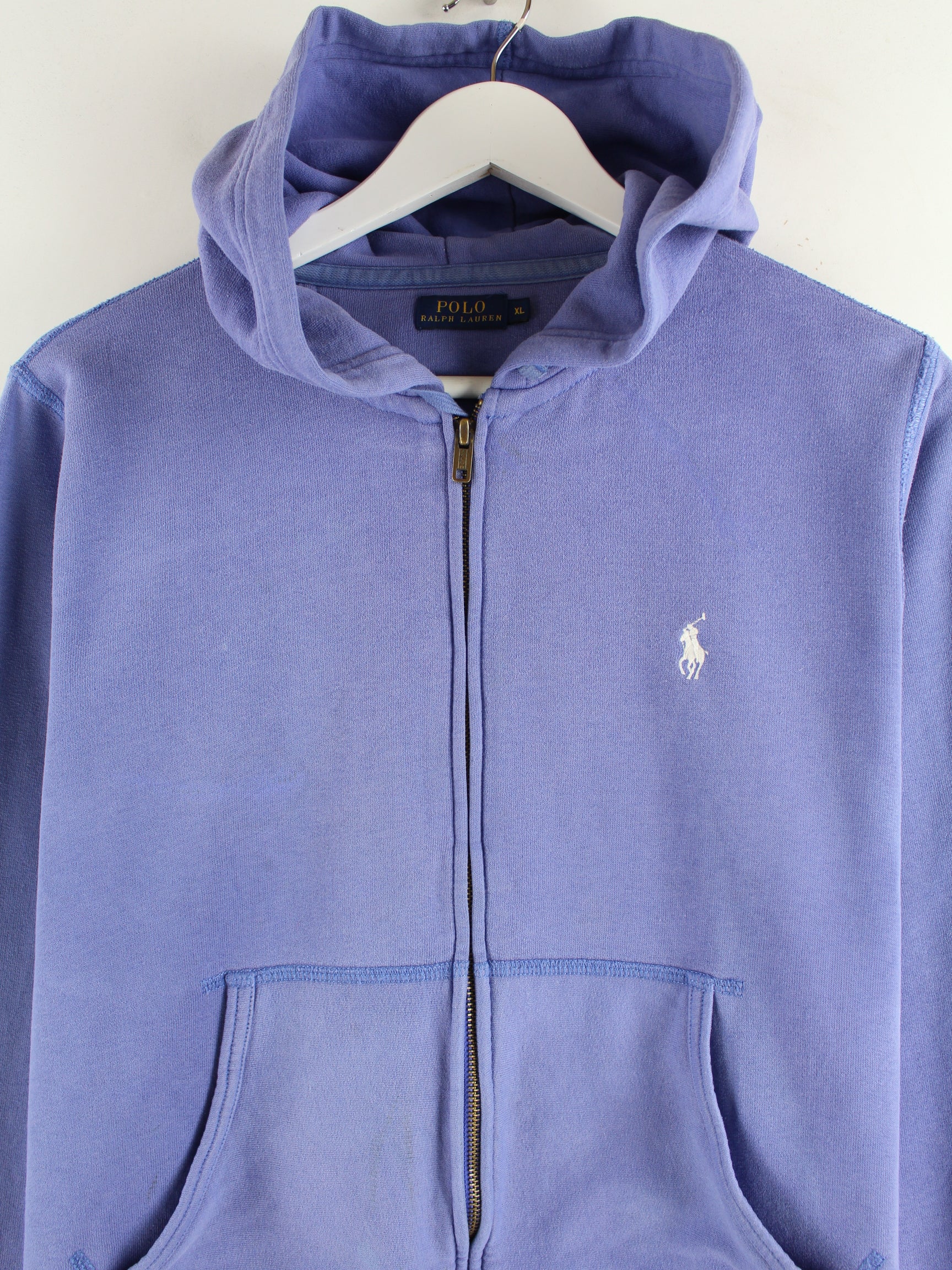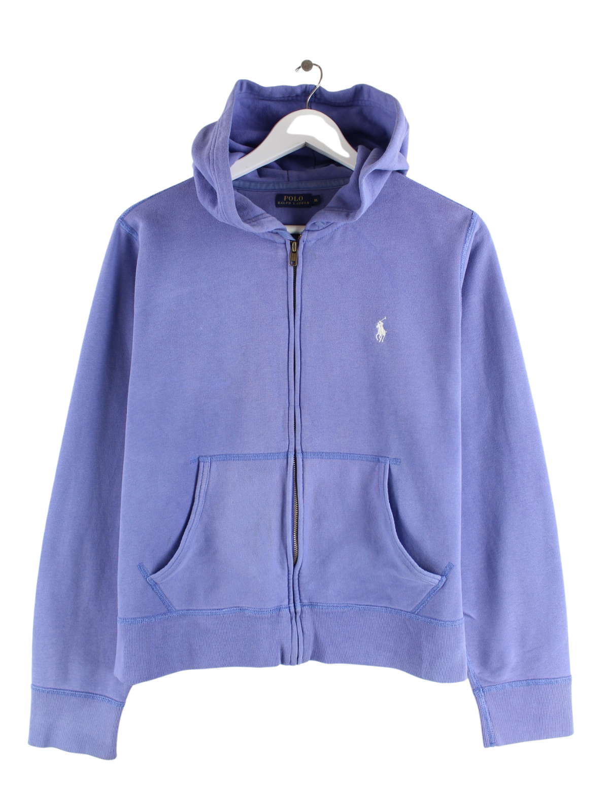 Lilafarbener Hoodie mit Reißverschluß der Marke Ralph Lauren in Größe S. Er ist aus einer Baumwollmischung angefertigt. Den Zustand würden wir als 'In Ordnung' bezeichnen (vergl. Bilder).