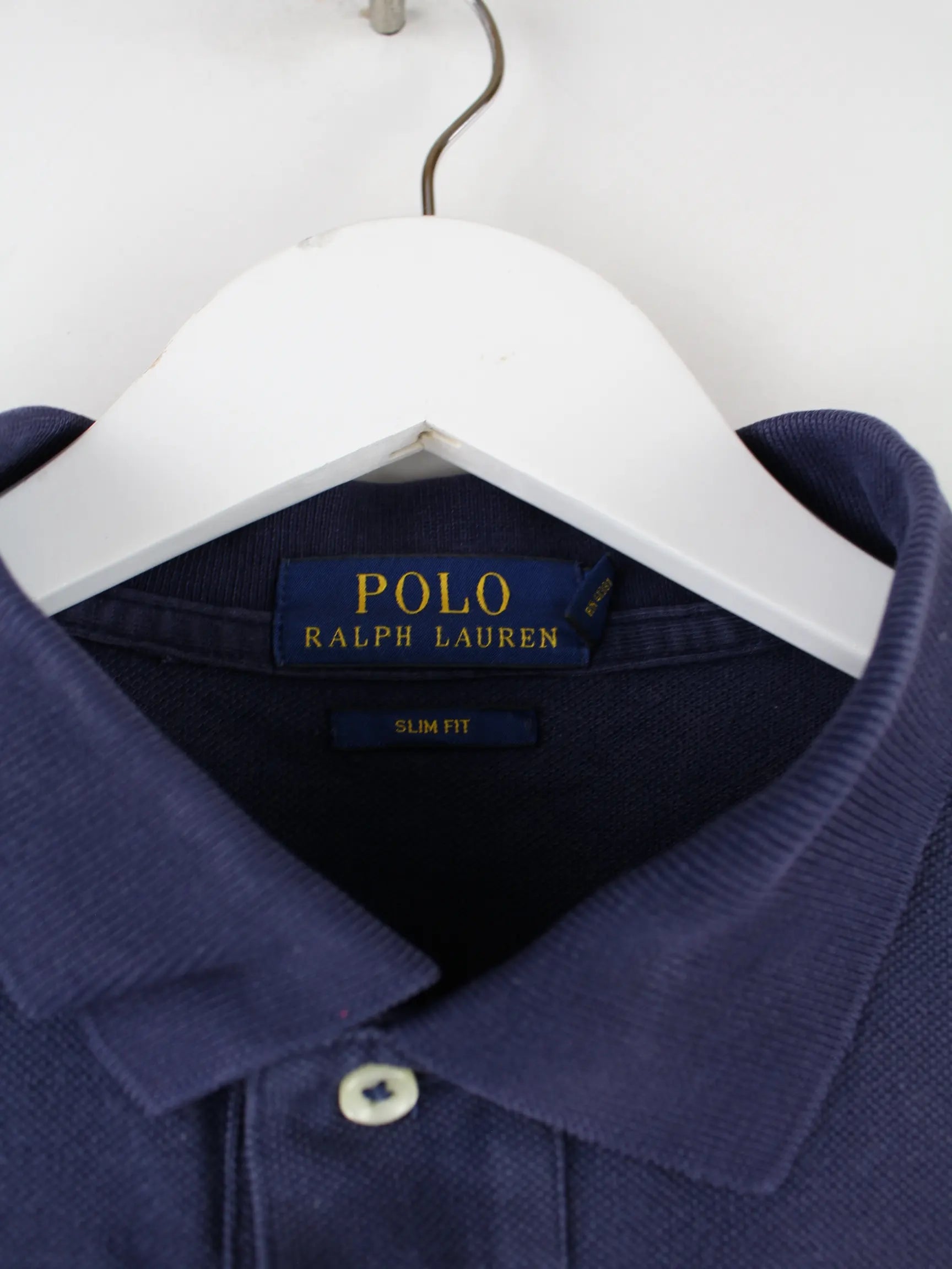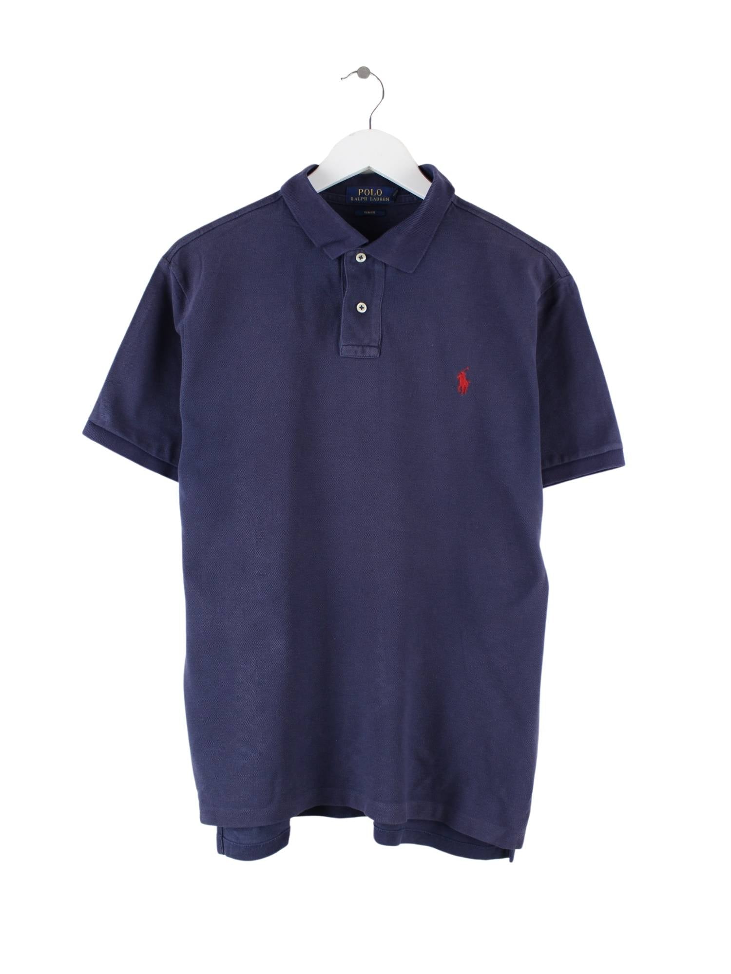 Blaues Poloshirt aus dem Hause Ralph Lauren in Größe L. Es ist aus Baumwolle angefertigt und in sehr gutem Zustand bei uns zu bekommen.