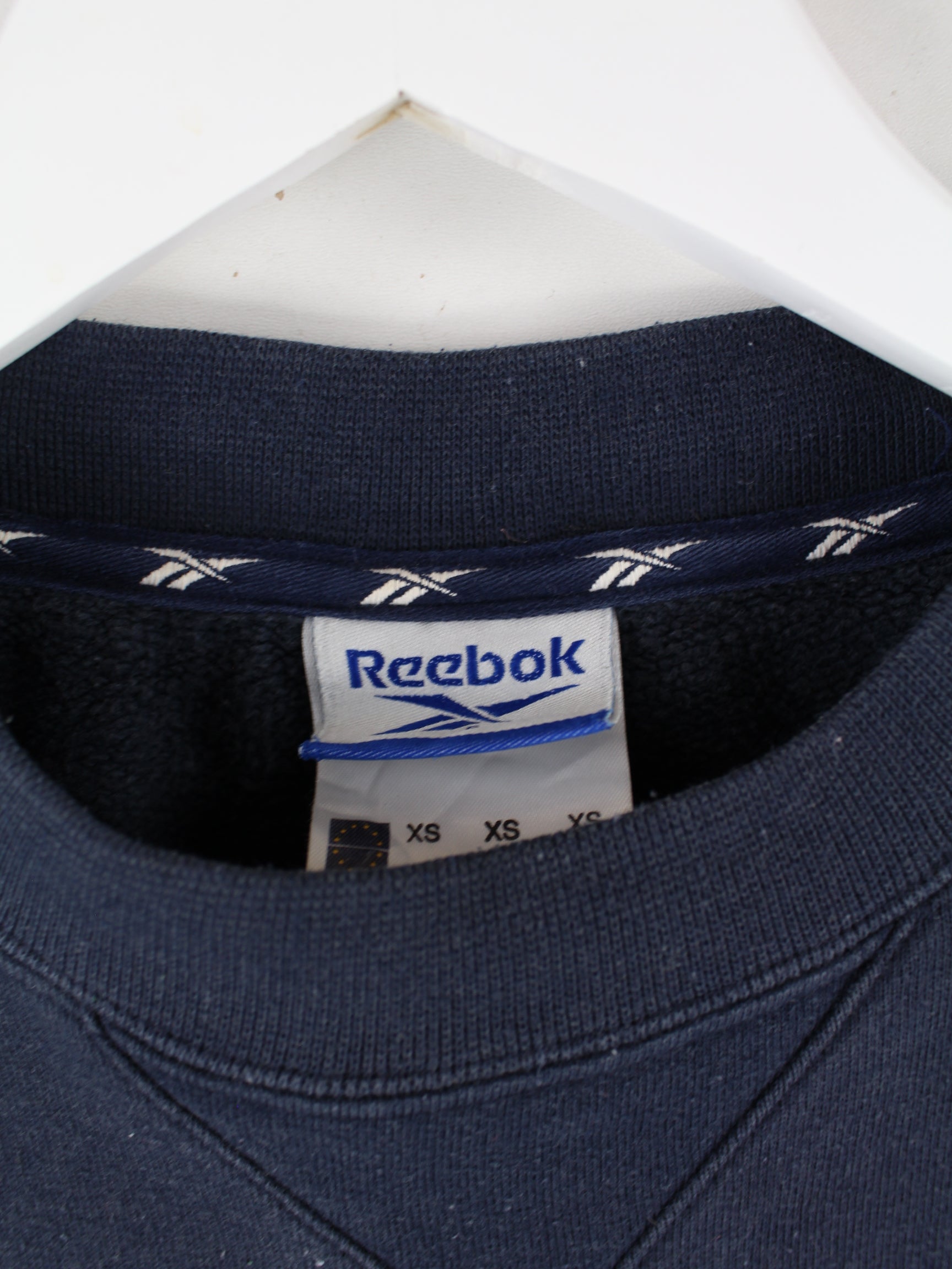 Sweater from the brand Reebok with embroidery in size S. It is made of a cotton blend and is available in blue.