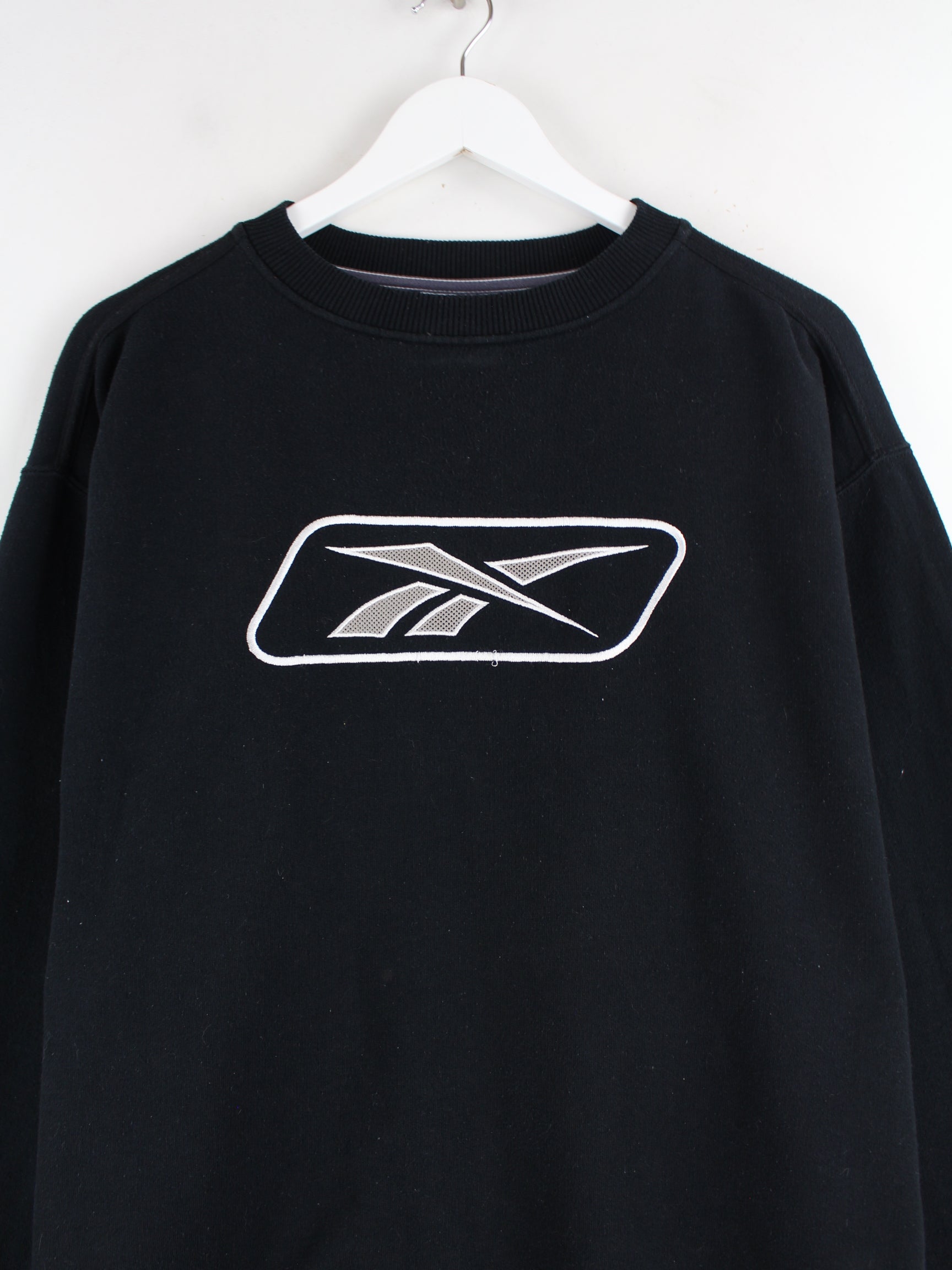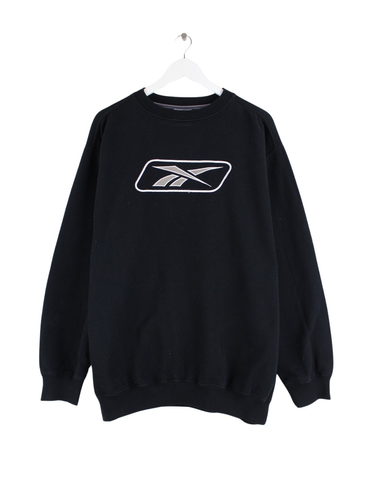 Black sweater with embroidered logo from the label Reebok in size L. It is made from a cotton blend. We would describe the condition as 'fine' (see pictures).