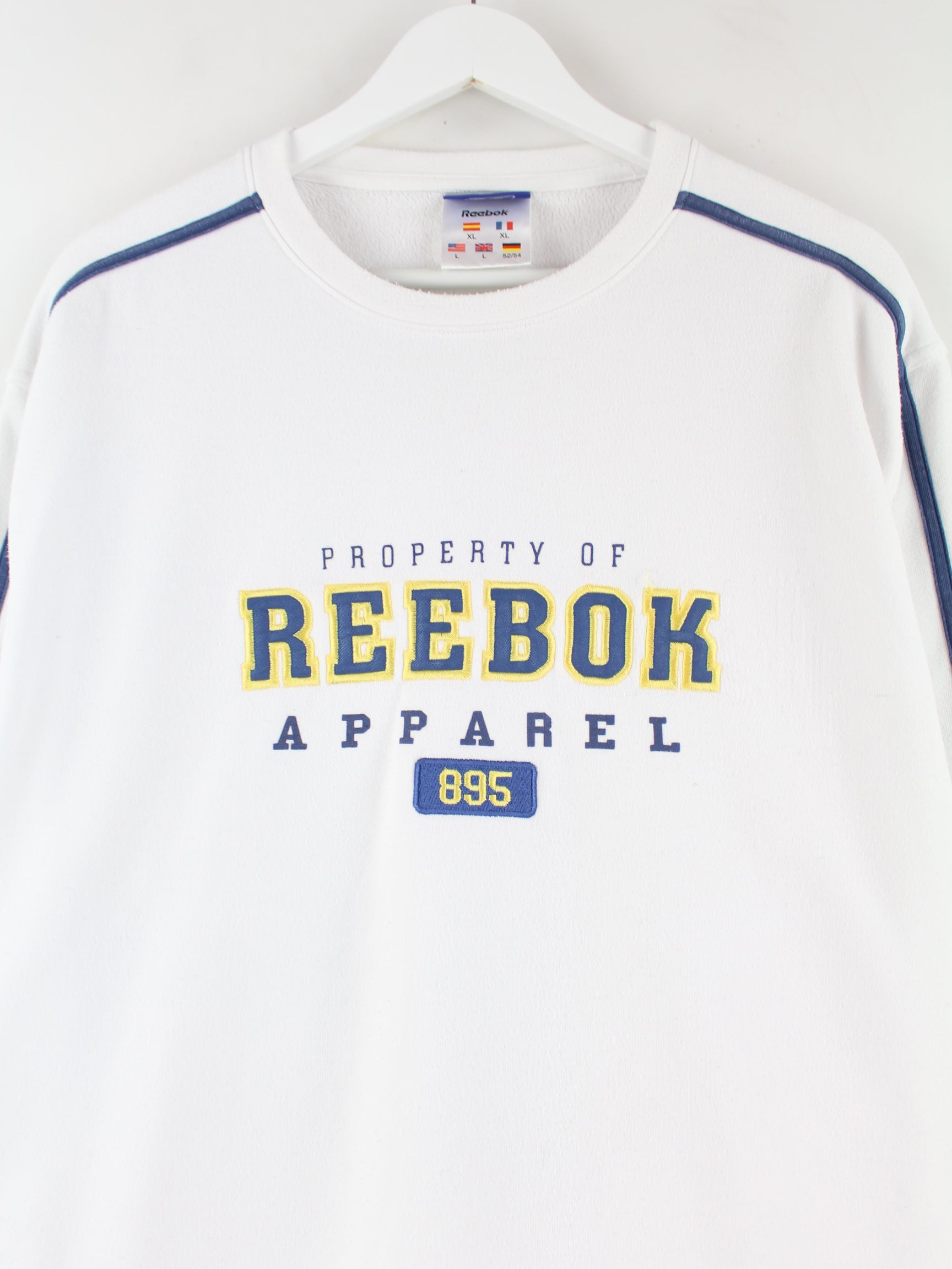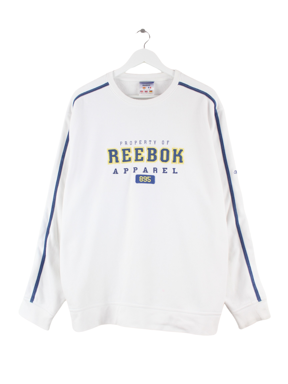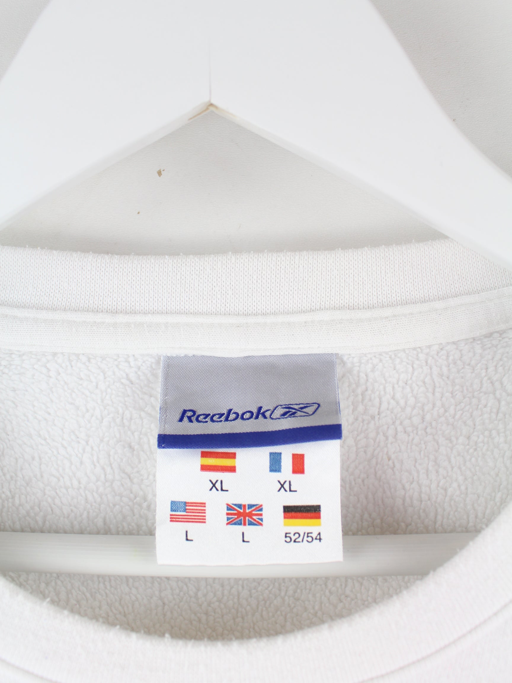 Sweater from the brand Reebok with embroidered logo in size L. It is made from a cotton blend and is available in white.