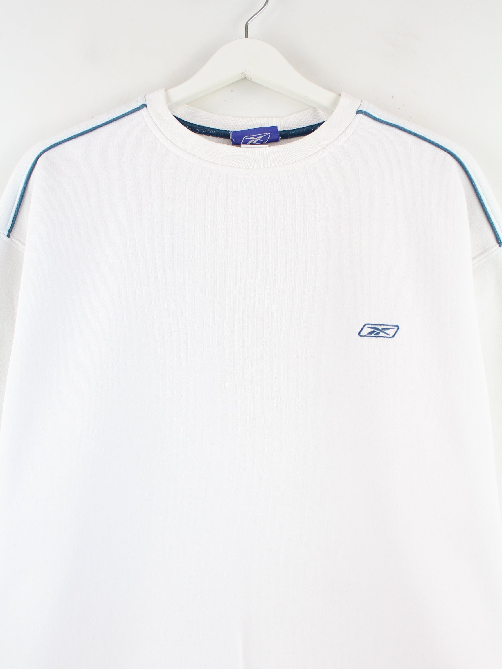 Reebok brand sweater with embroidery in size XL. It is made from a cotton blend and is available in white.